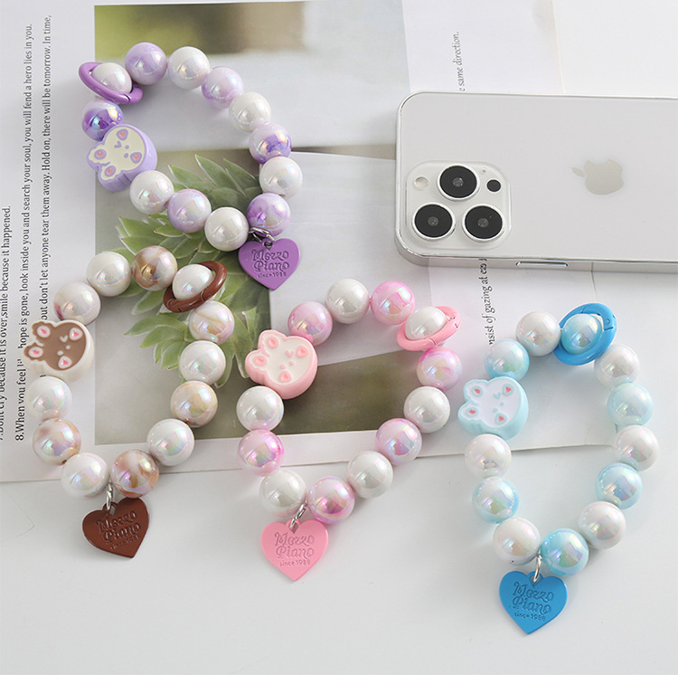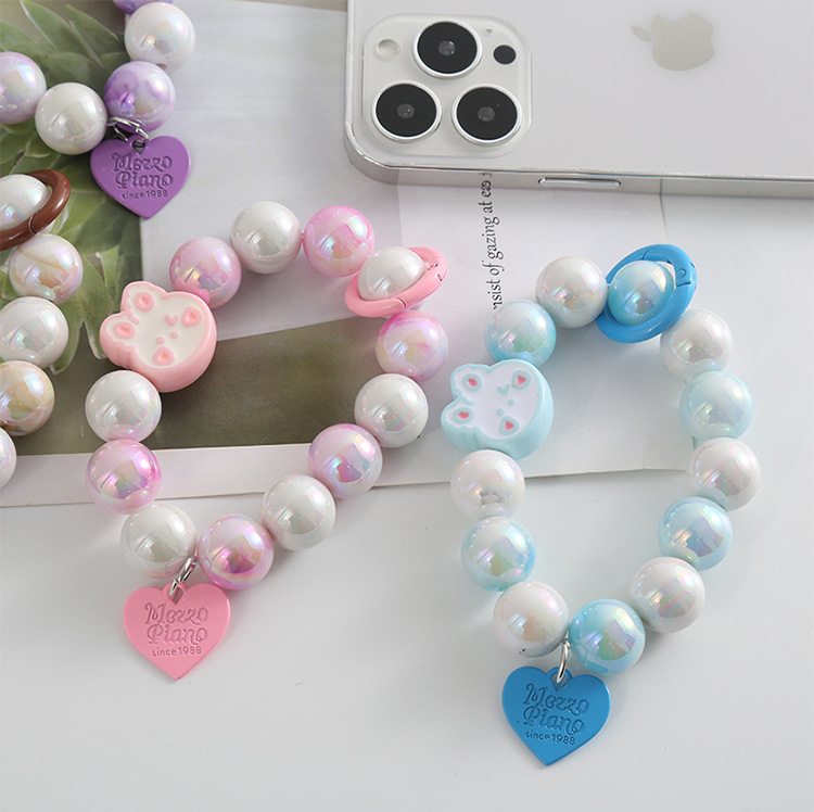 兔子手环挂件 diy手机壳链条手工串珠桃心挂件手机链装饰挂件