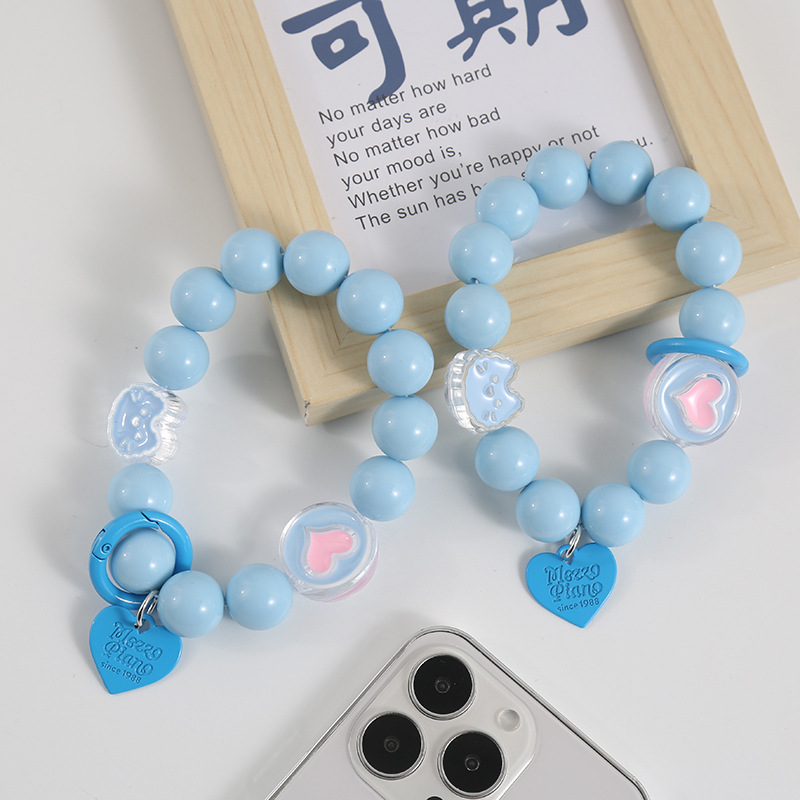 手环挂件 亚克力串珠手机壳提链挂饰彩色爱心挂绳diy手机壳链条