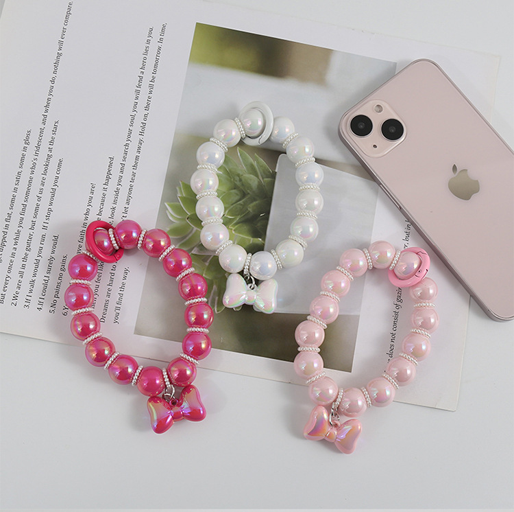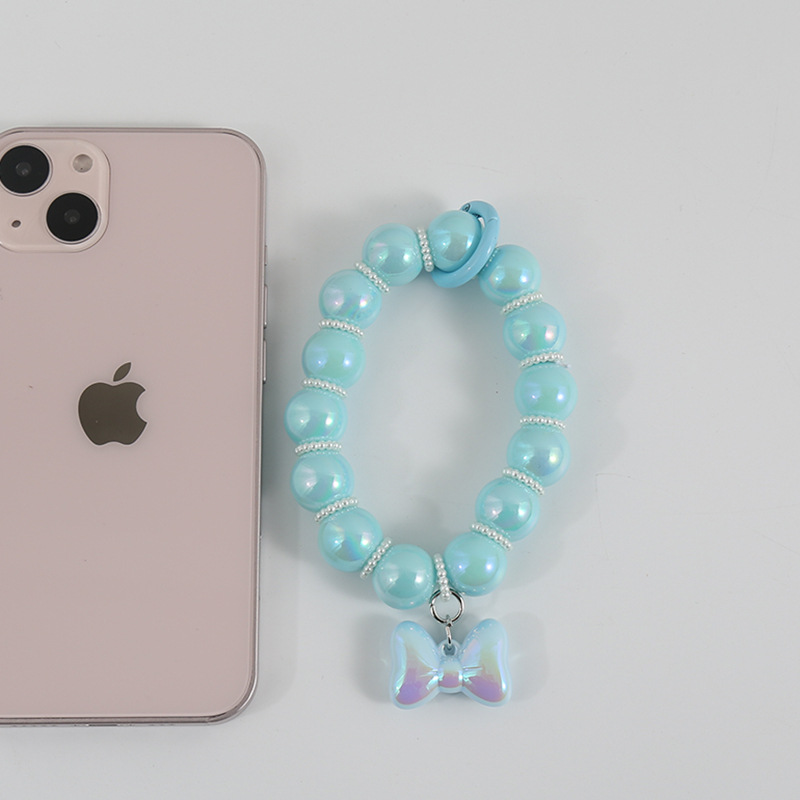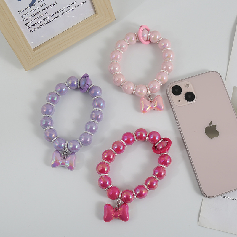 蝴蝶结手机链 日韩气质款珠圈手工diy大珠珠小清新百搭手机链条