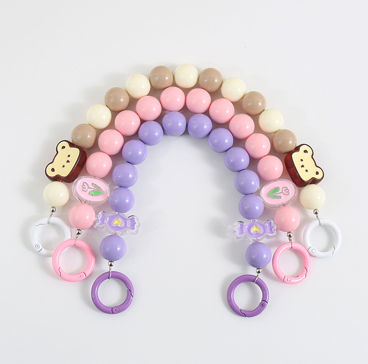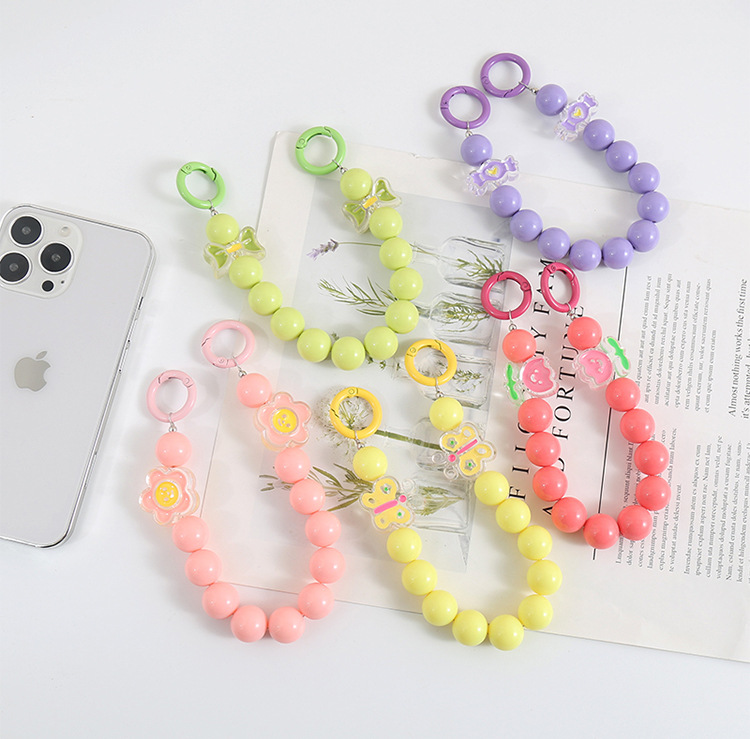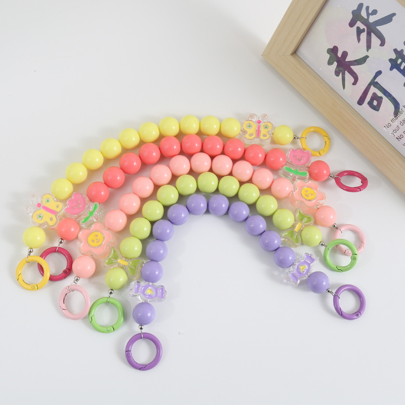 糖果色手环腕带 链珠亚克力串珠手机壳提链挂饰彩色爱心挂绳