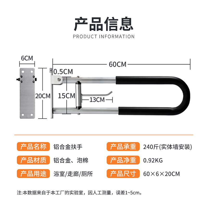 卫生间扶手老人防滑浴室马桶扶手残疾人厕所无障碍扶手栏杆可折叠