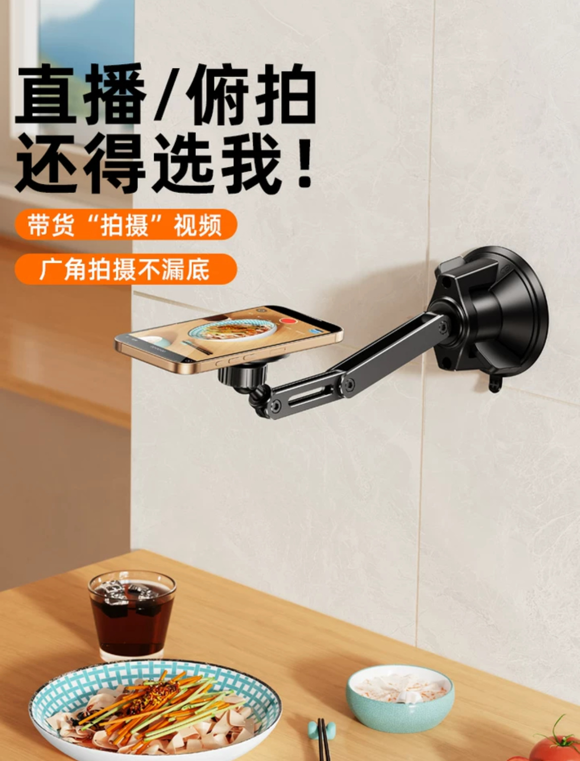 悬臂桌面手机支架金属伸缩悬臂万向调节角度手机平板挂墙手机支架