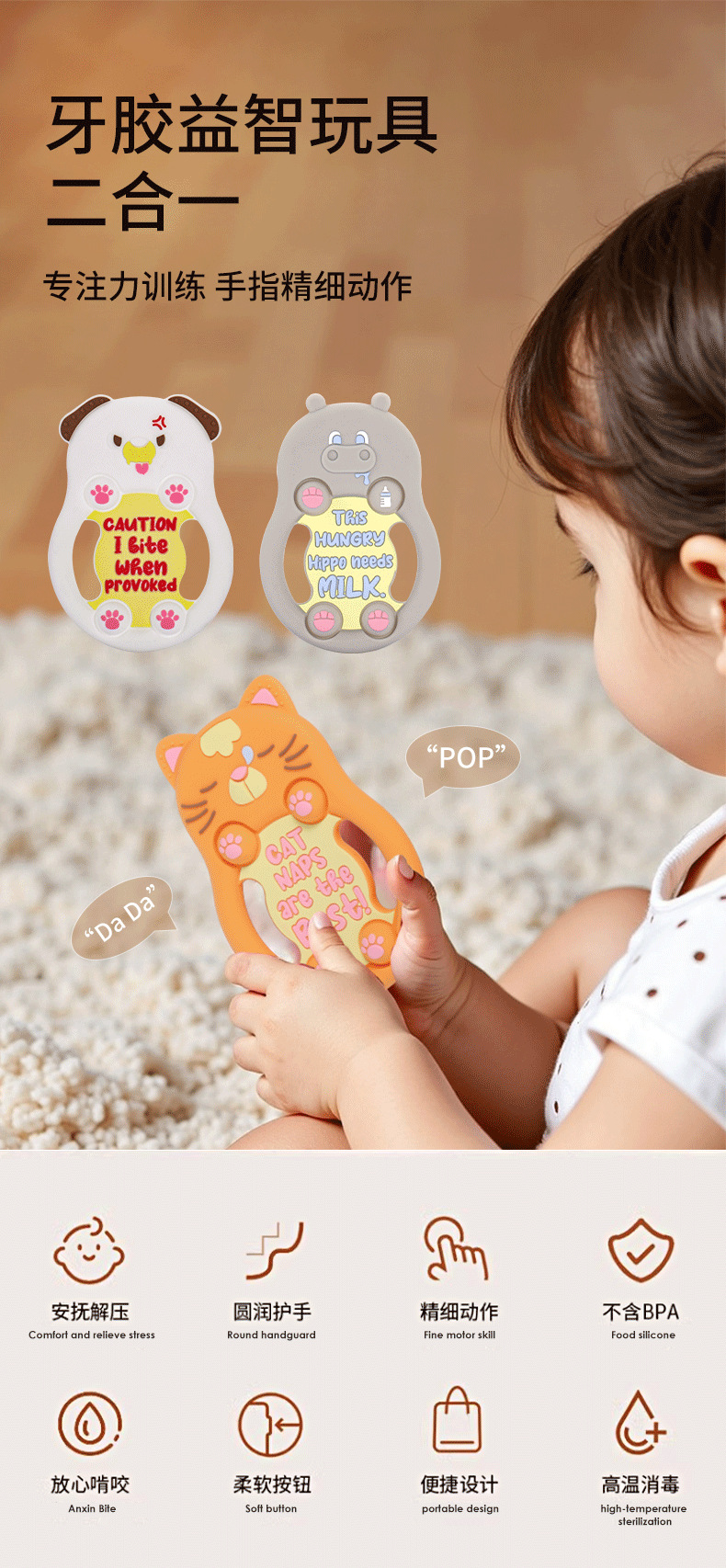 亚马逊爆款硅胶婴儿牙胶宝宝咀嚼器玩具儿童出牙磨牙棒玩具咬咬胶
