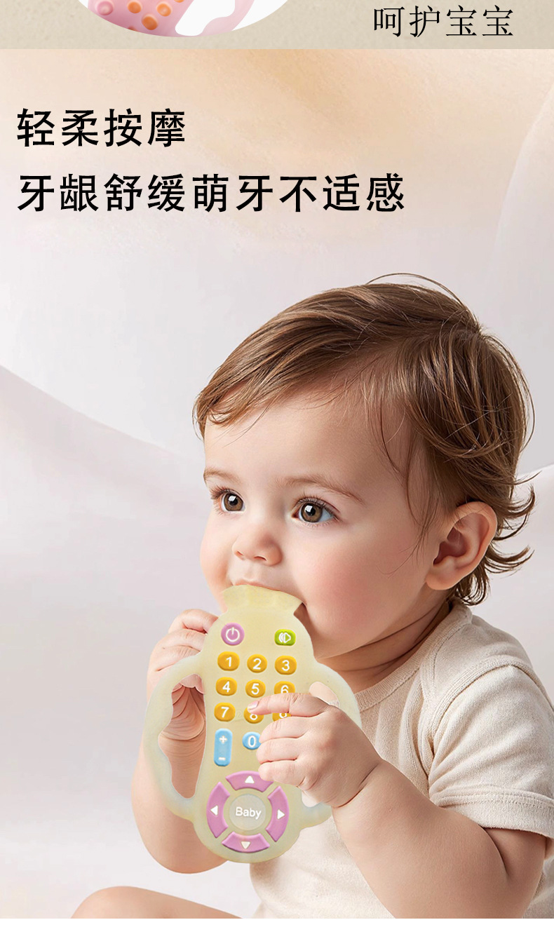 遥控器牙胶婴儿磨牙棒小月龄宝宝出牙期可啃咬硅胶安抚玩具