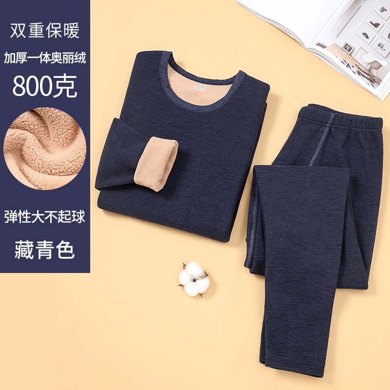 加大加肥男士保暖衣加绒加厚中老年批发套装中领奥粒绒保暖内衣