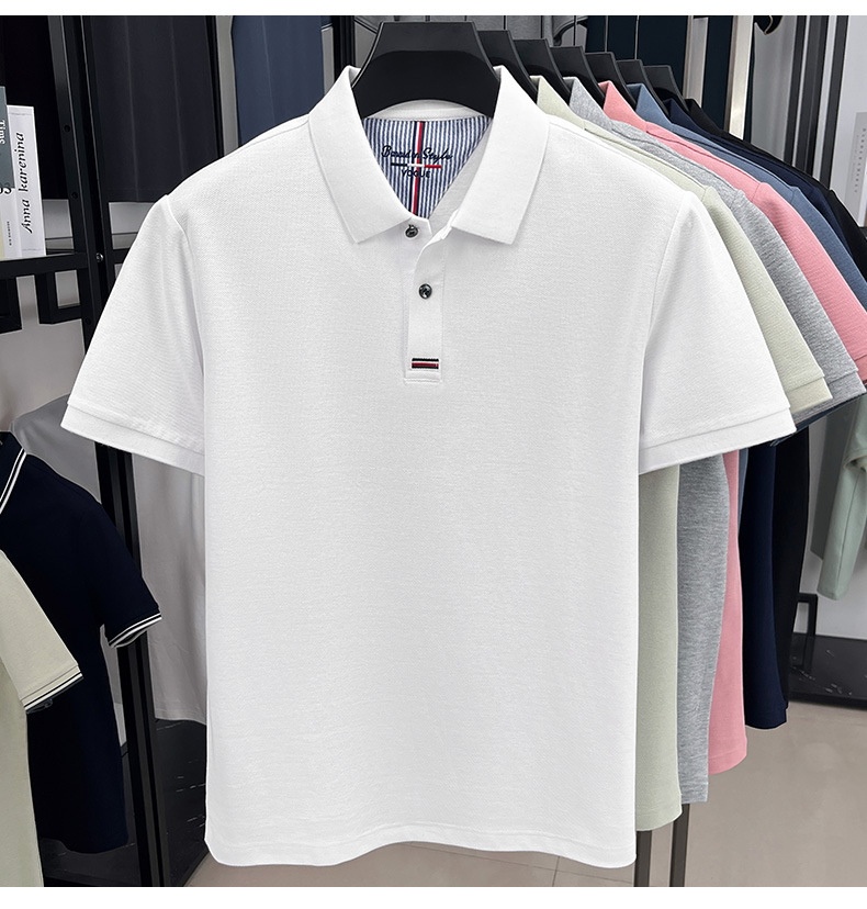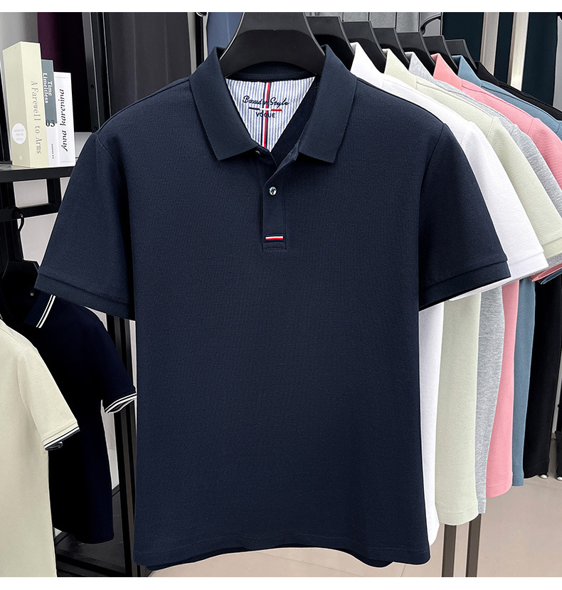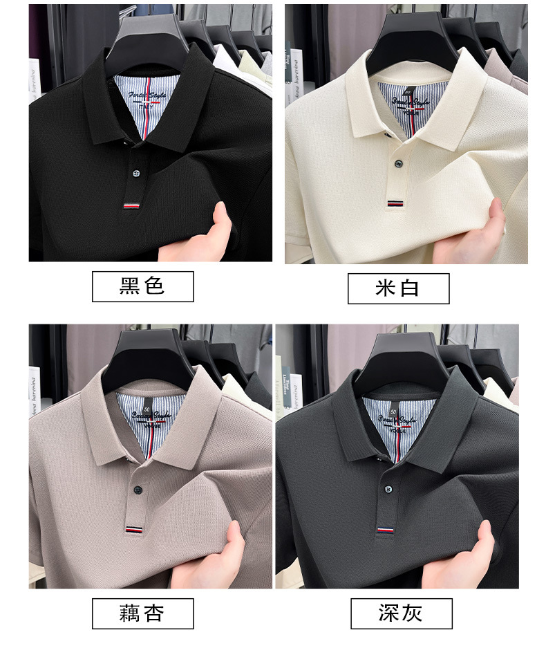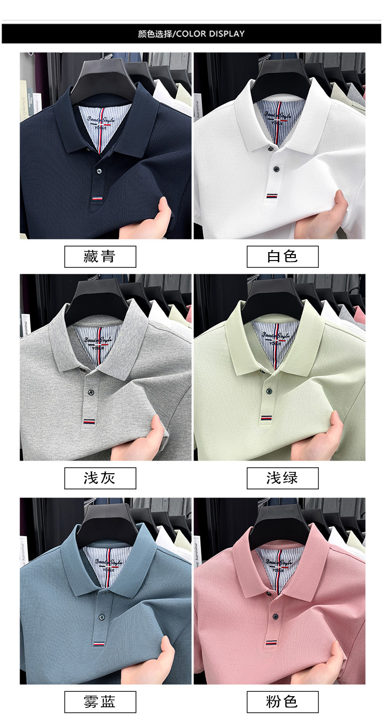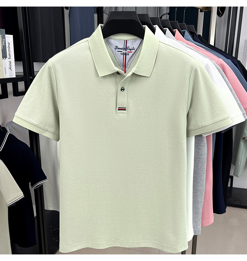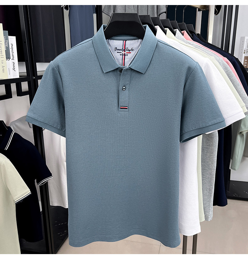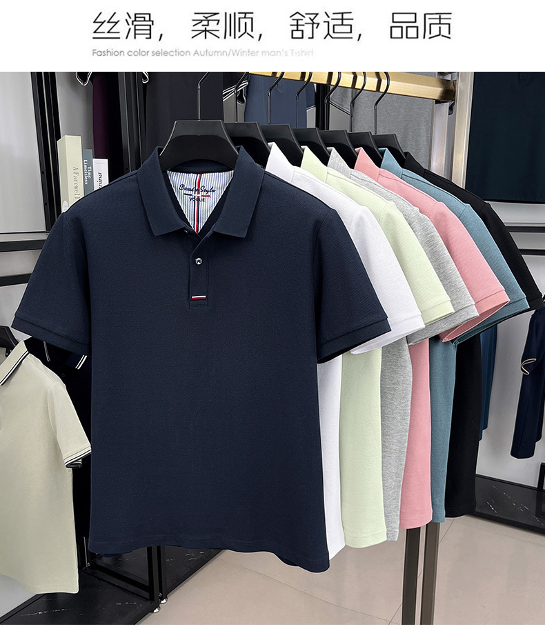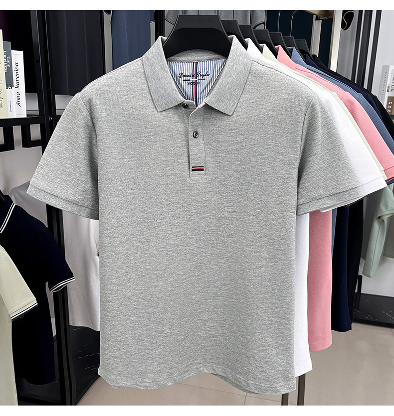 夏季100%丝光棉纯棉短袖POLO衫男中年商务休闲纯色百搭翻领t恤男