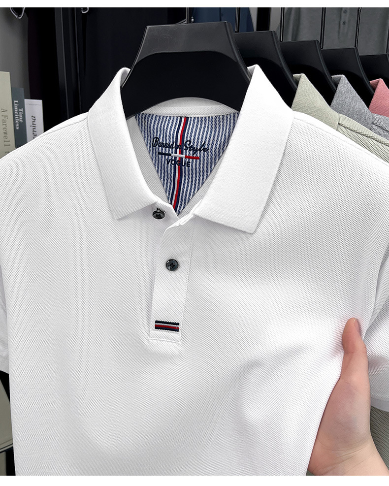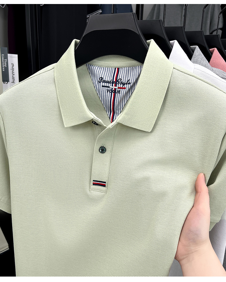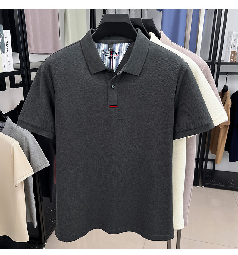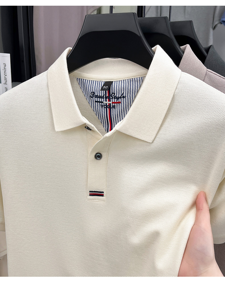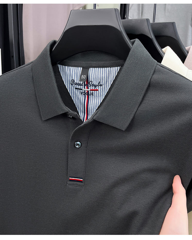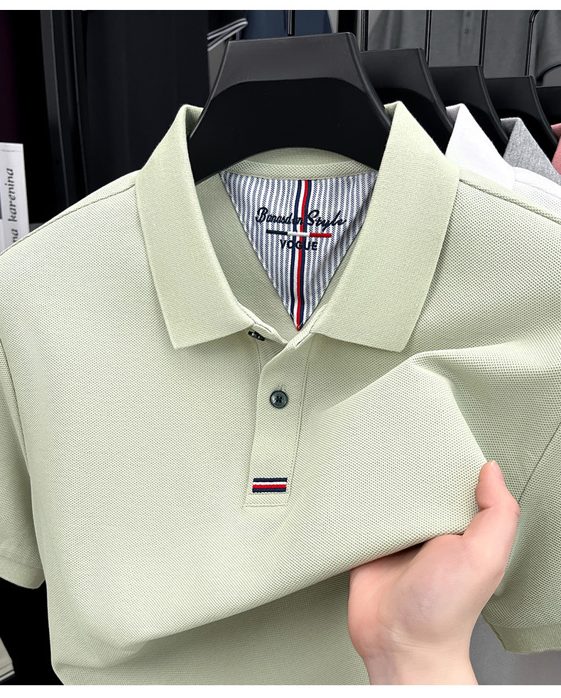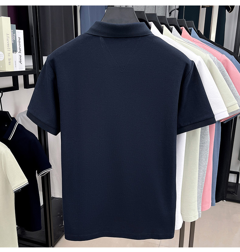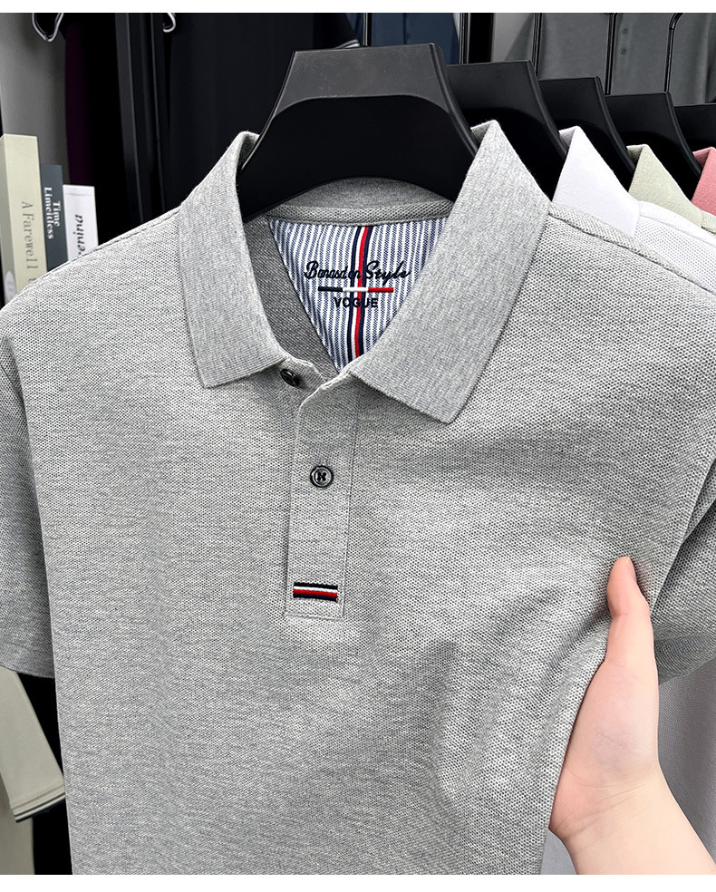 夏季100%丝光棉纯棉短袖POLO衫男中年商务休闲纯色百搭翻领t恤男