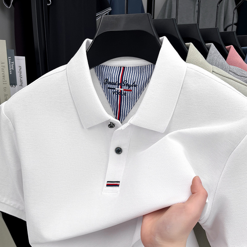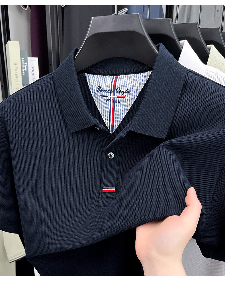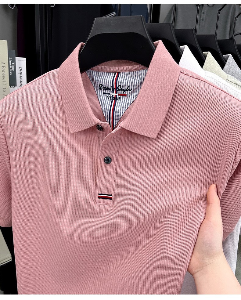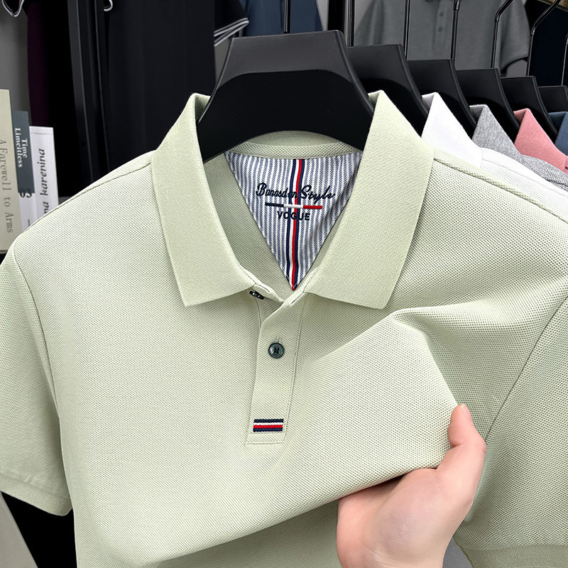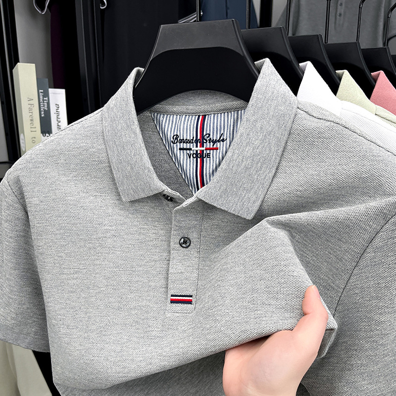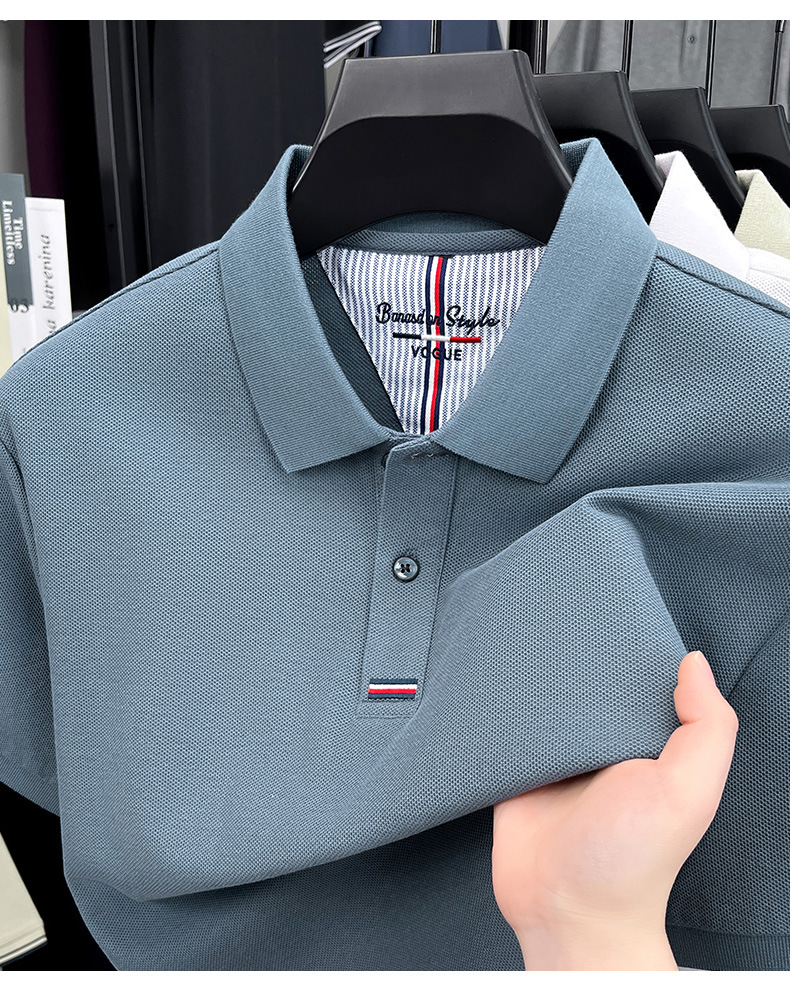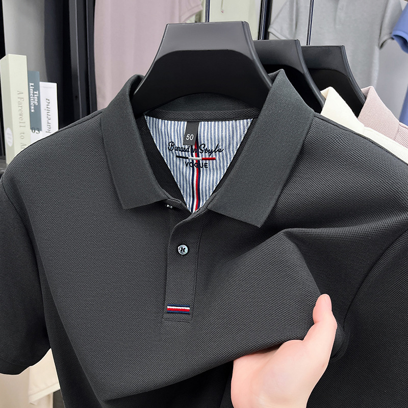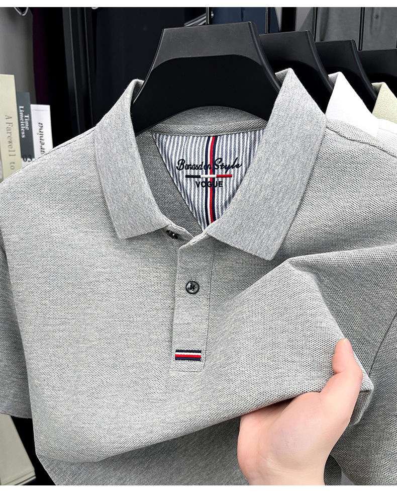 夏季100%丝光棉纯棉短袖POLO衫男中年商务休闲纯色百搭翻领t恤男