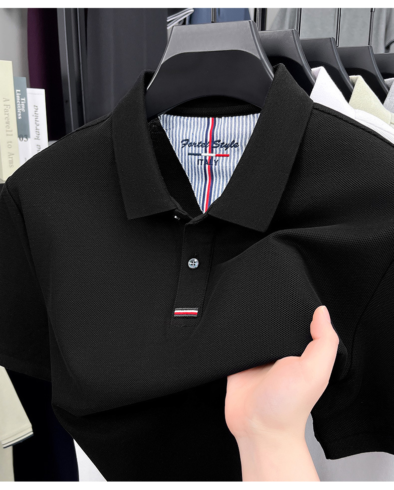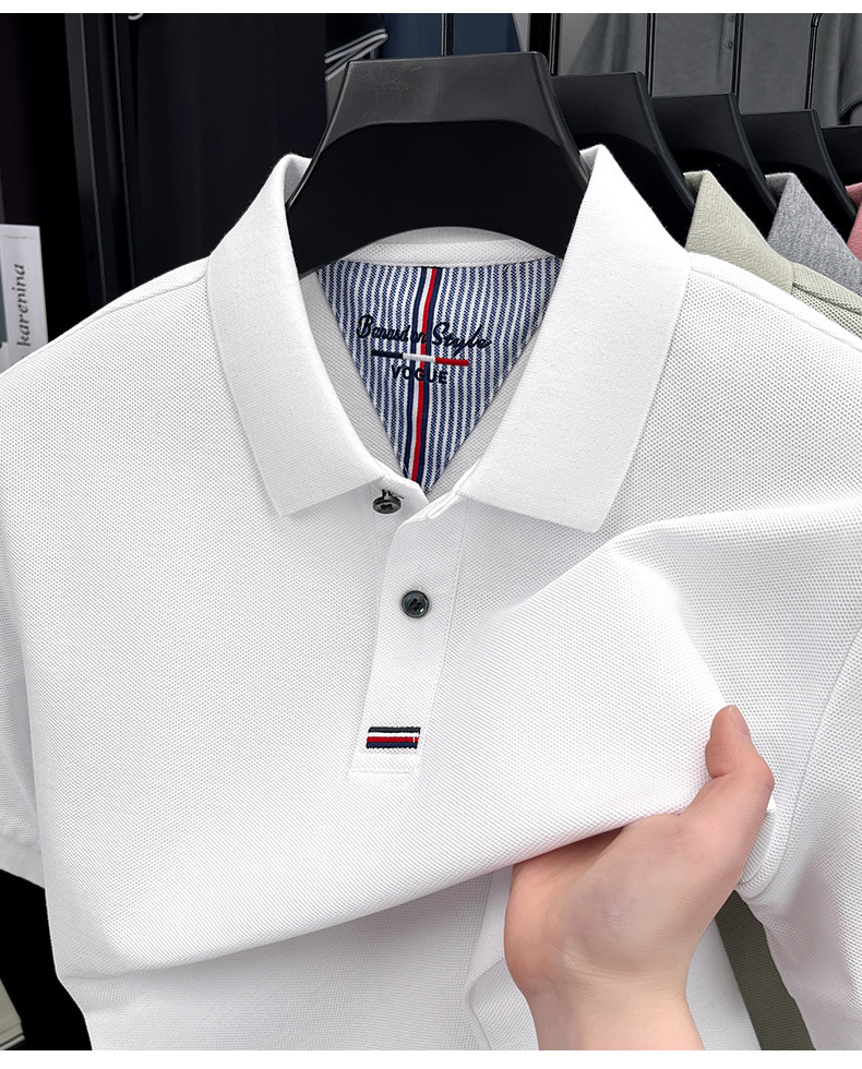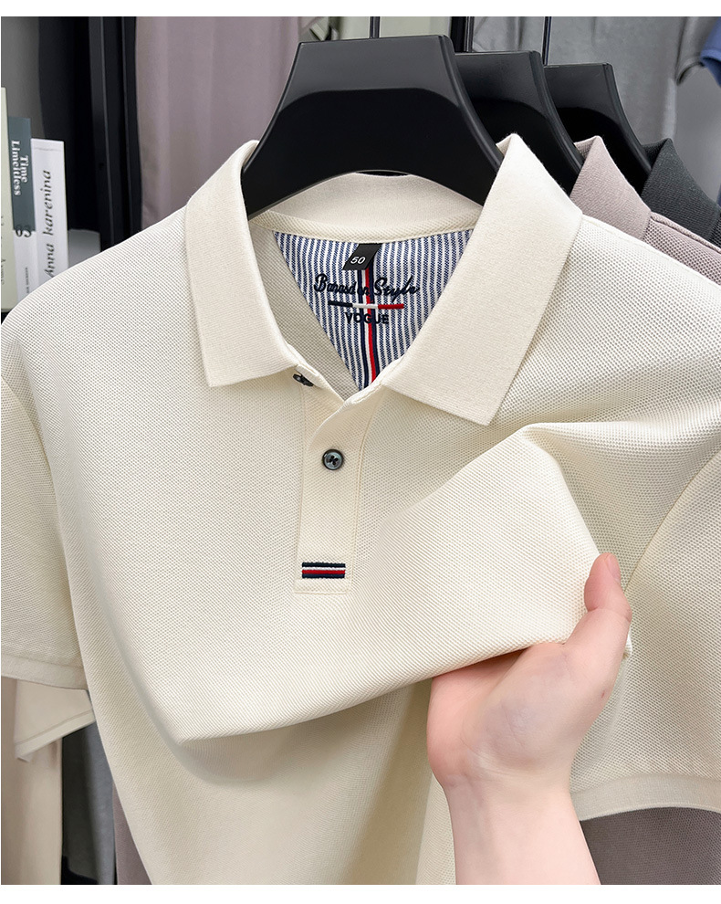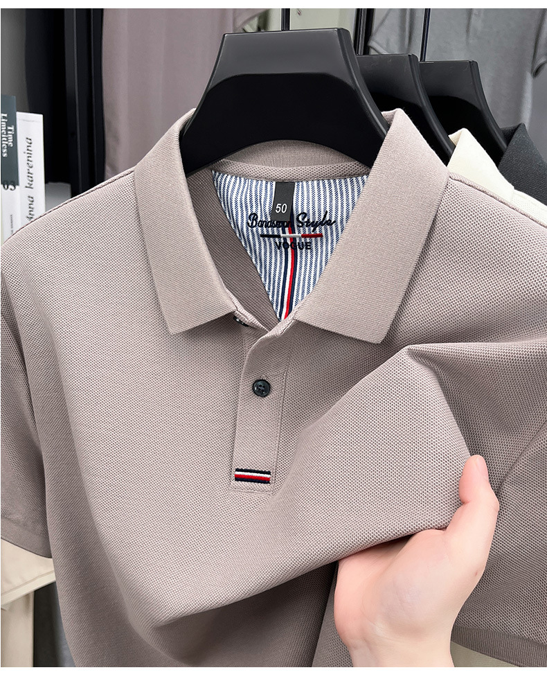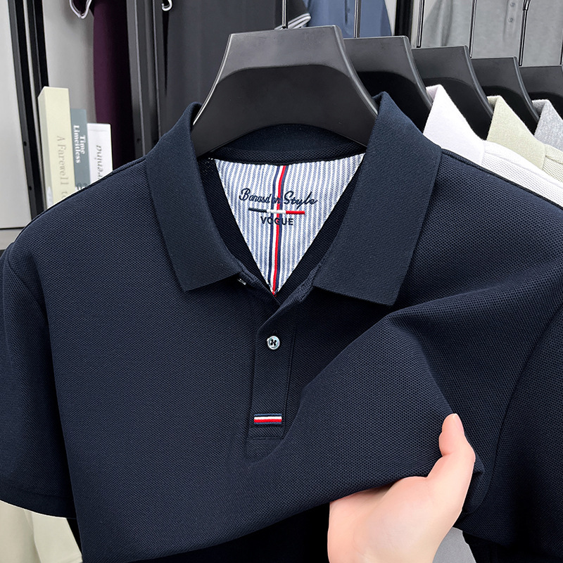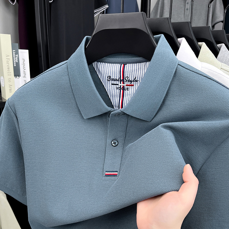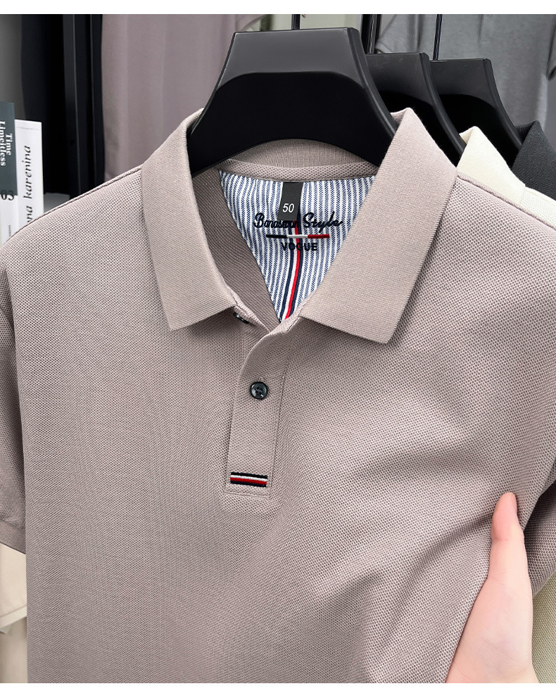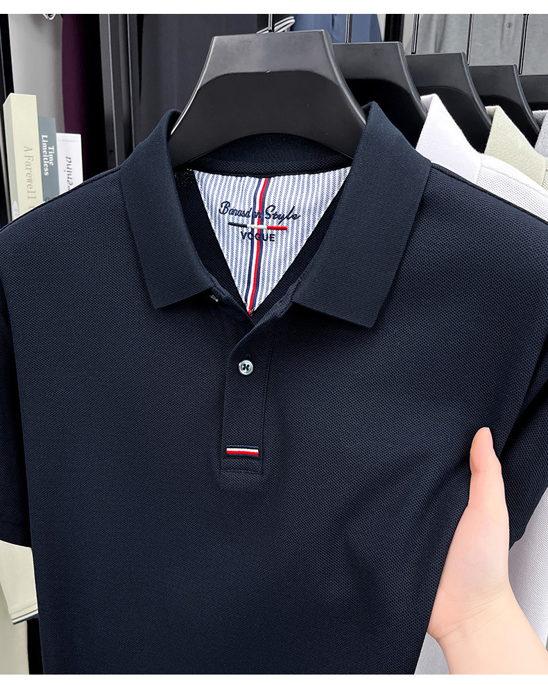 夏季100%丝光棉纯棉短袖POLO衫男中年商务休闲纯色百搭翻领t恤男