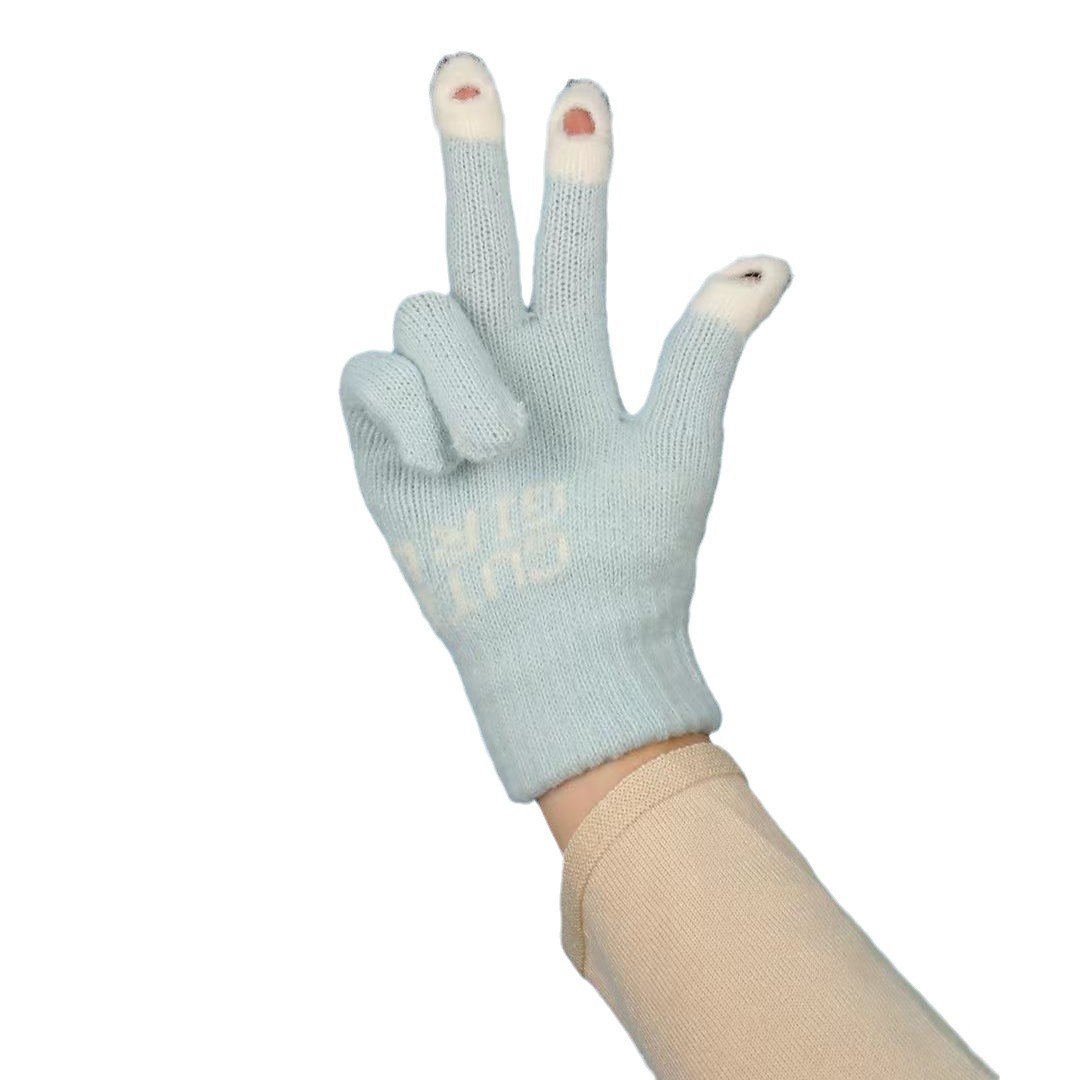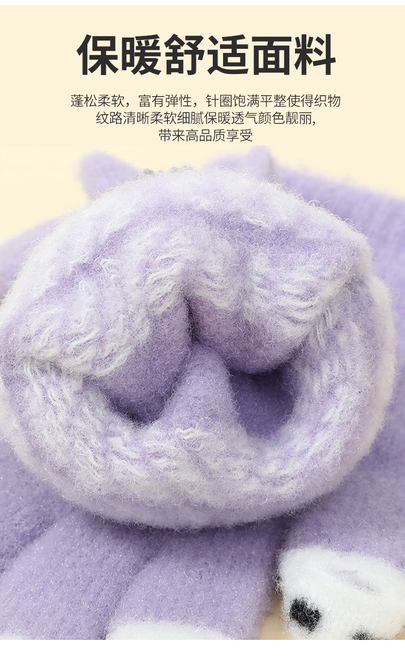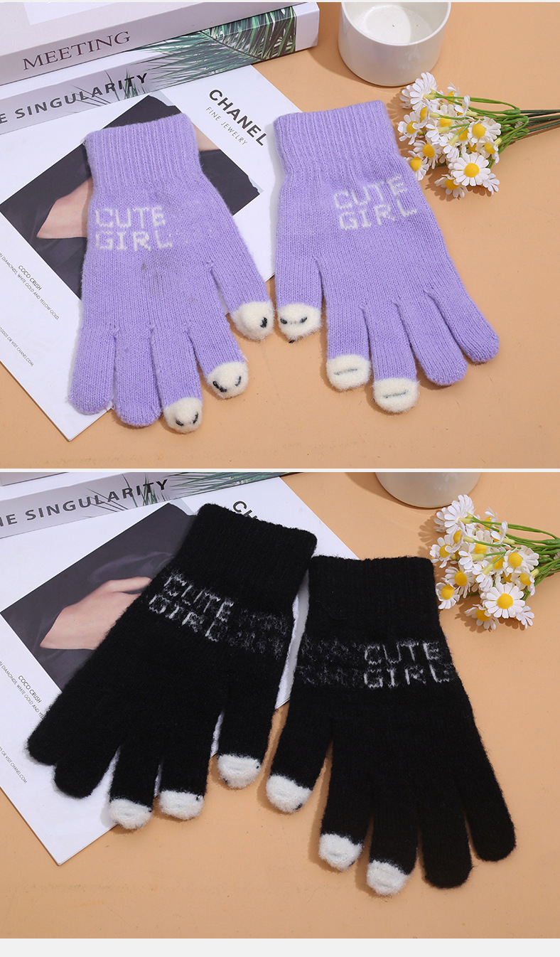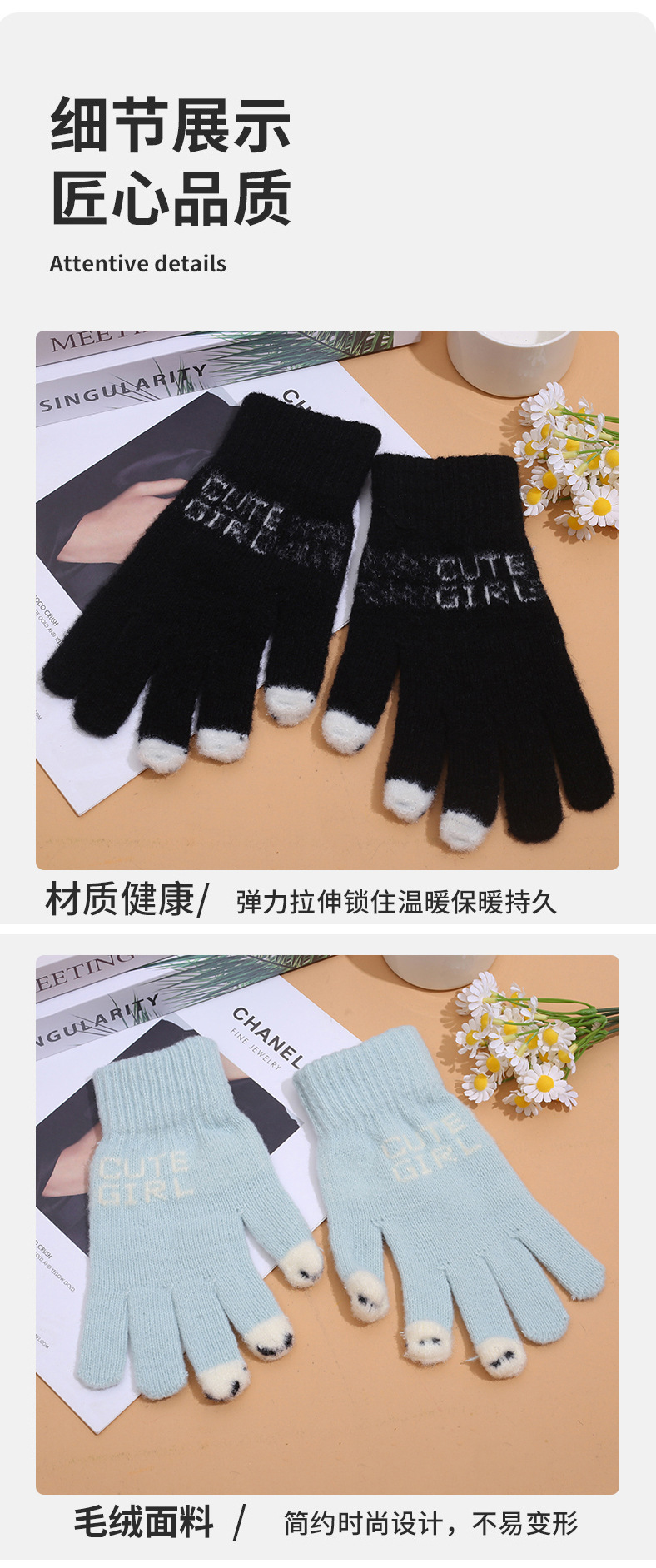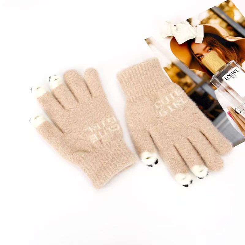 2023新款冬季露指保暖写字豆豆鱼手套凤凰绒可爱卡通抗起球