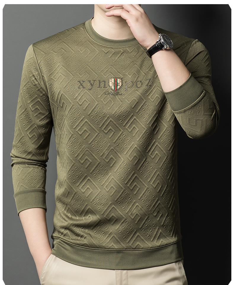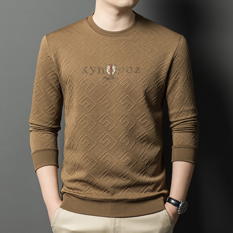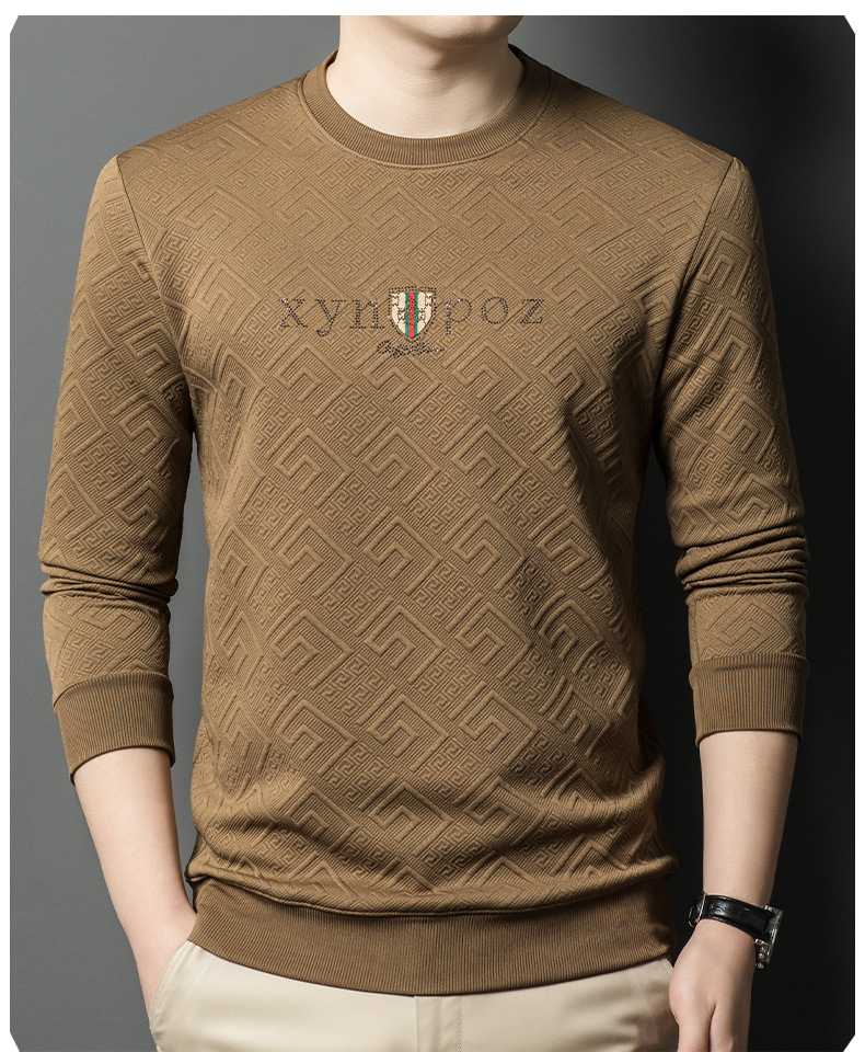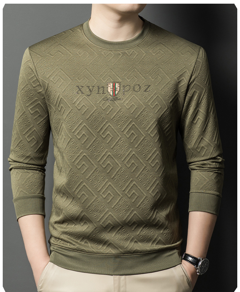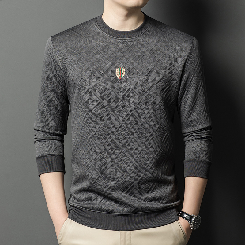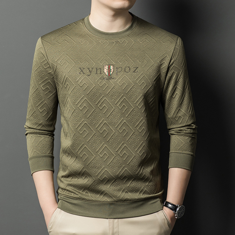 直播跨境中年男士长袖t恤春秋季新款圆领卫衣时尚百搭打底衫外贸