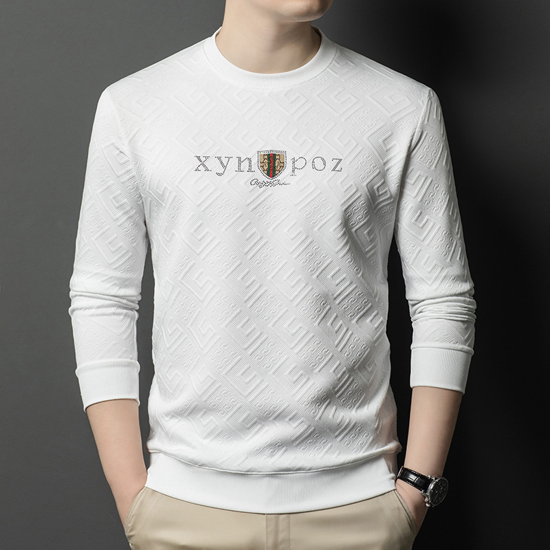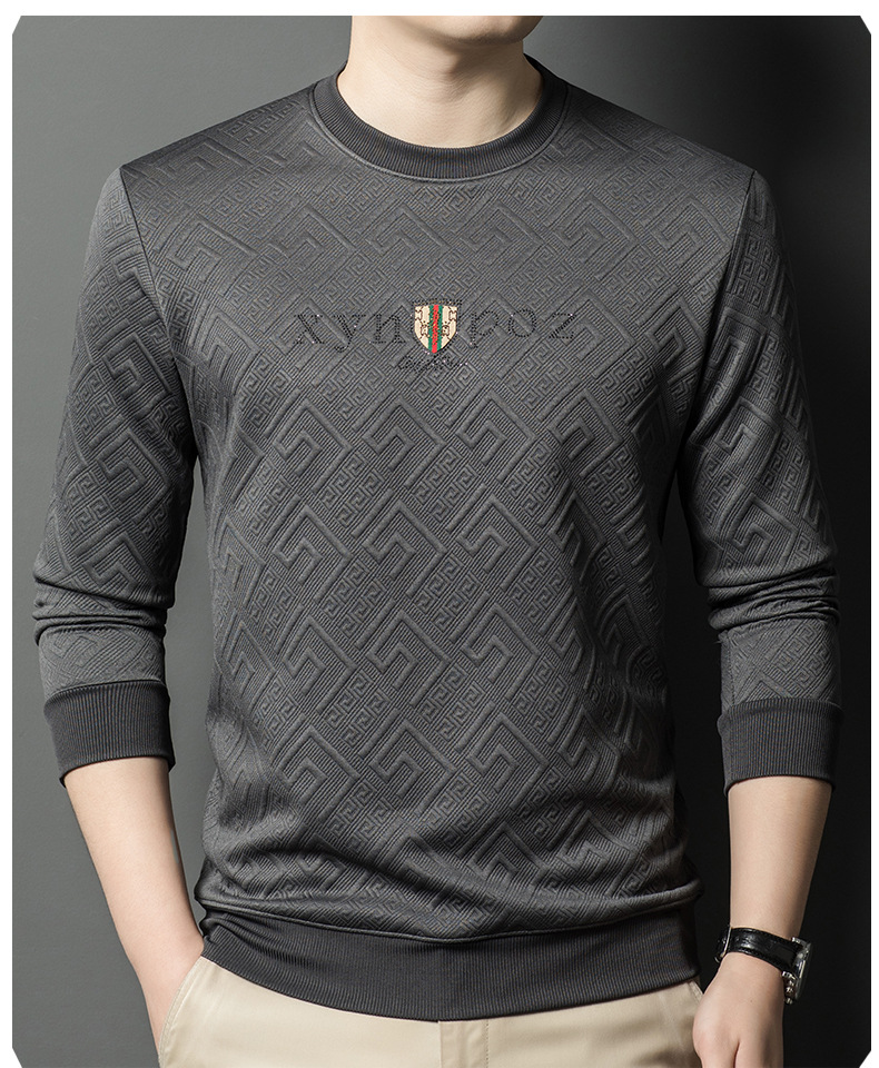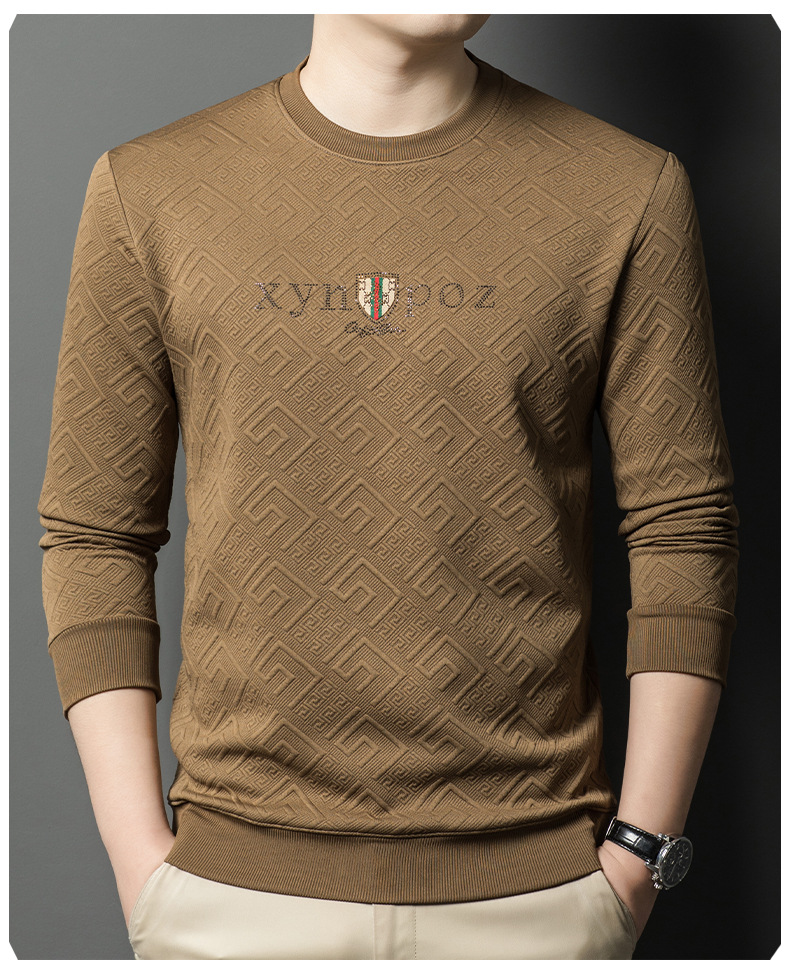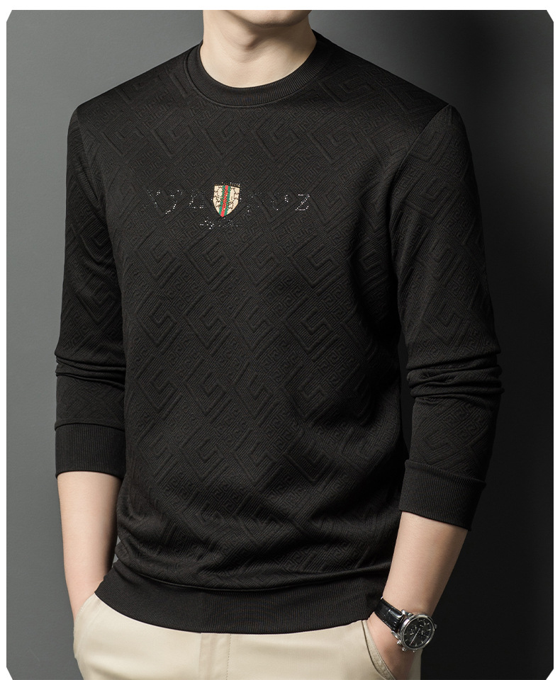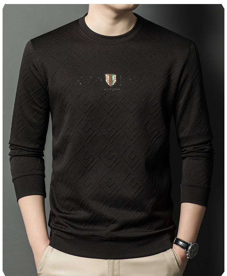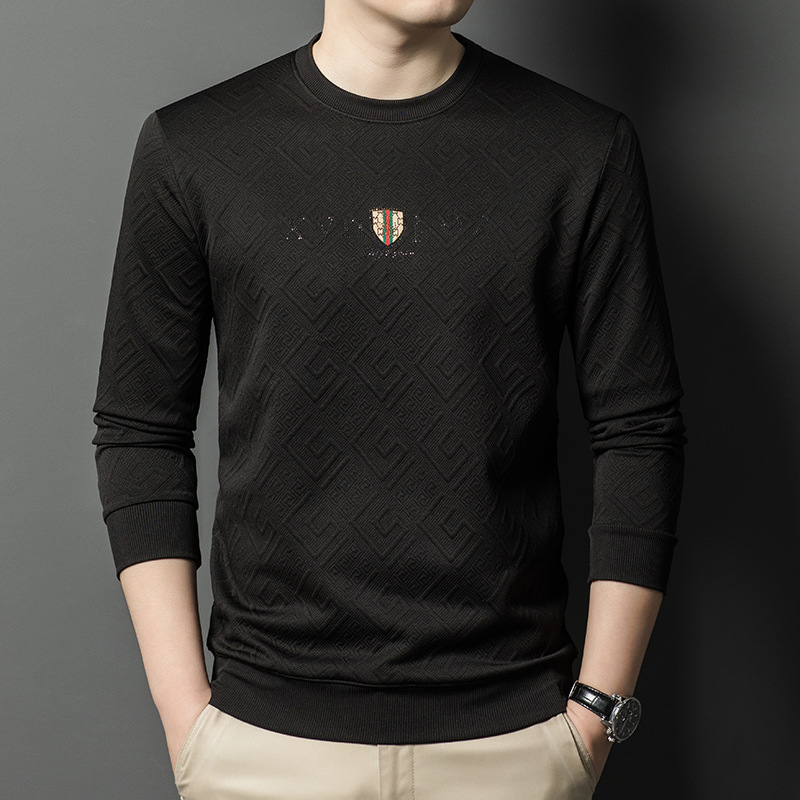 直播跨境中年男士长袖t恤春秋季新款圆领卫衣时尚百搭打底衫外贸