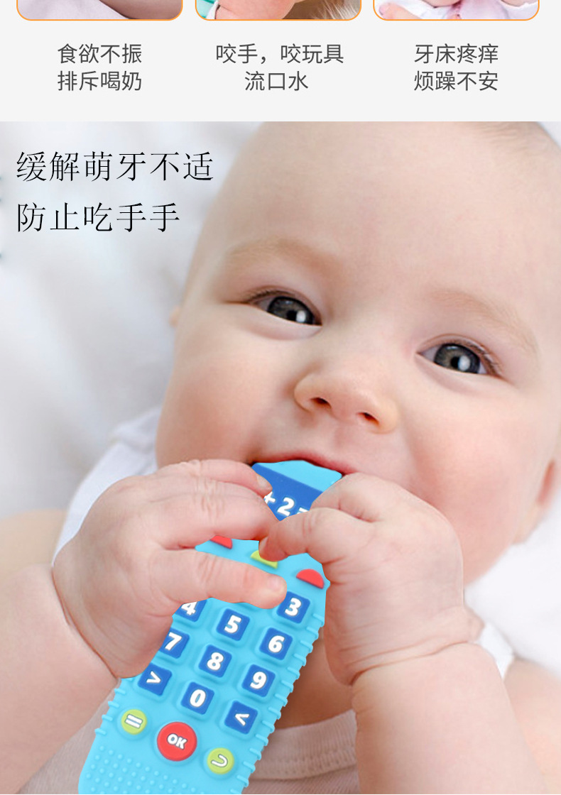 新款硅胶遥控器宝宝出牙固齿器磨牙食品级滴胶遥控器牙胶