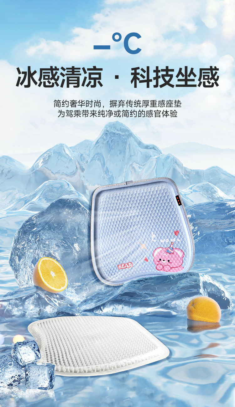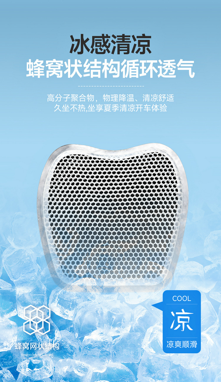 国内热销汽车坐垫通用卡通单片凝胶坐垫方垫汽车座垫夏季透气凉垫