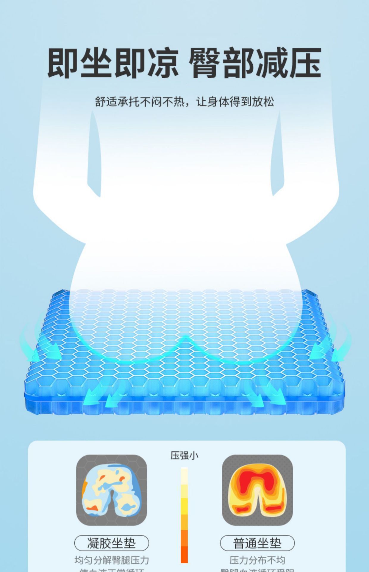 夏季凝胶蜂窝坐垫加大汽车蜂巢座垫椅垫通风透气厚屁垫果冻冰凉垫