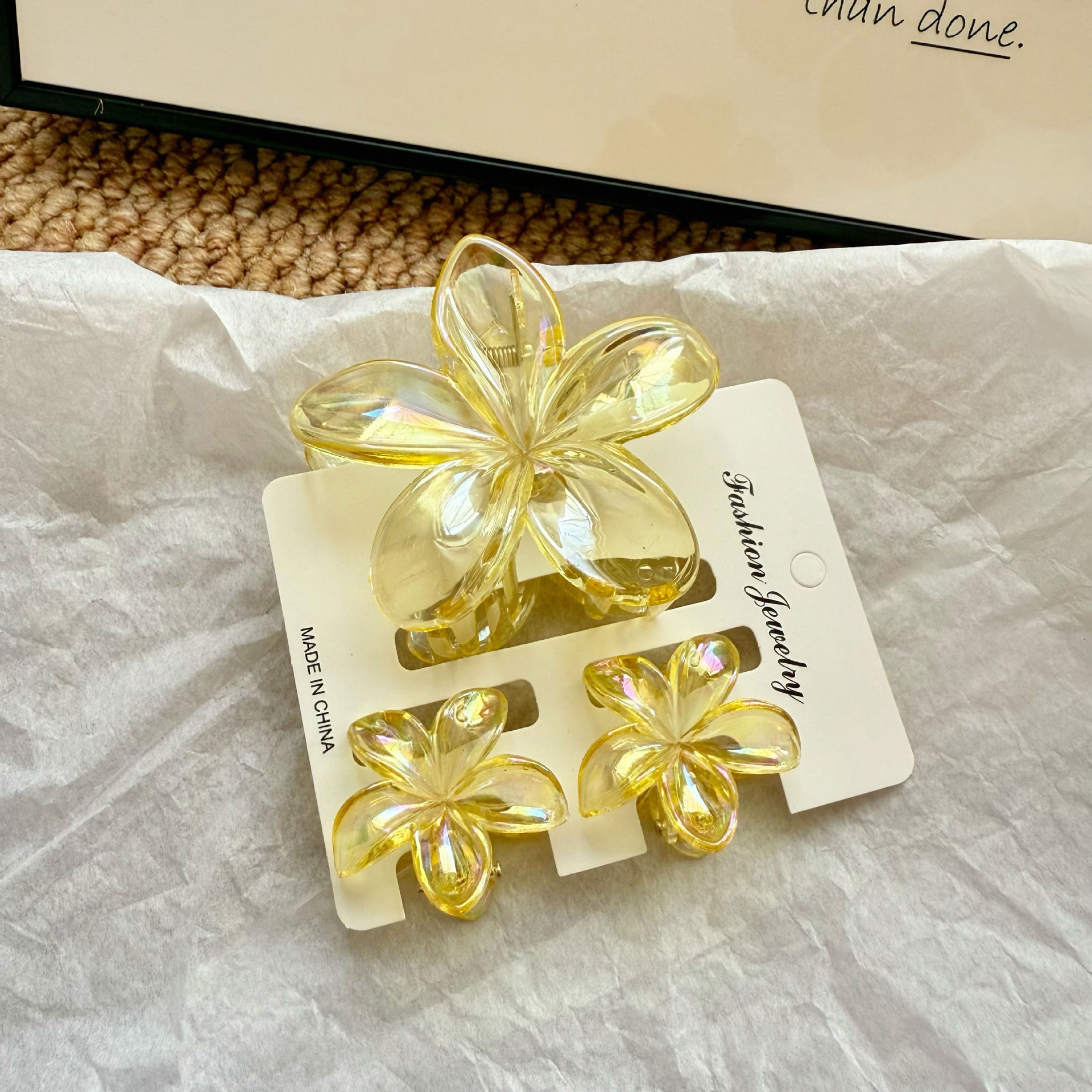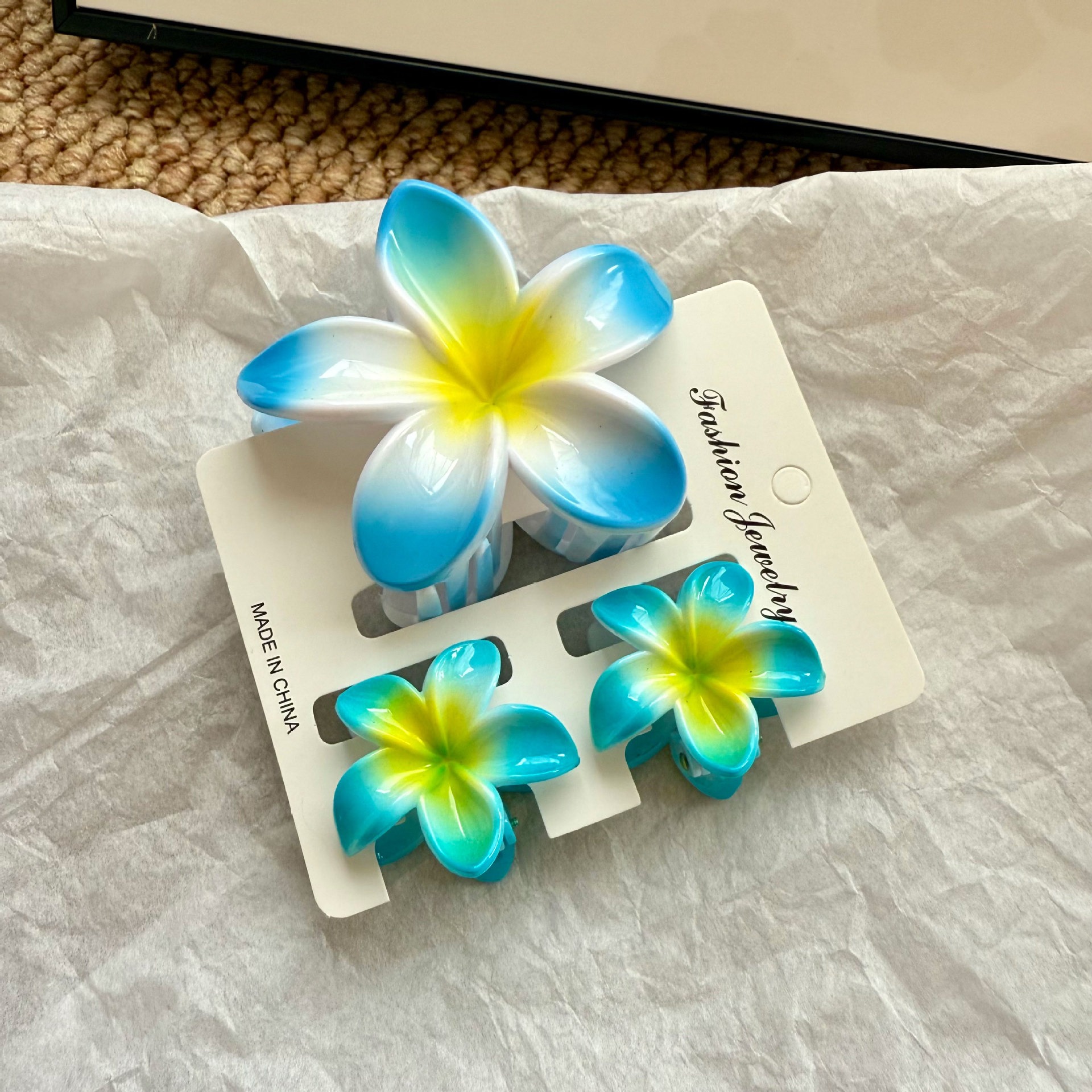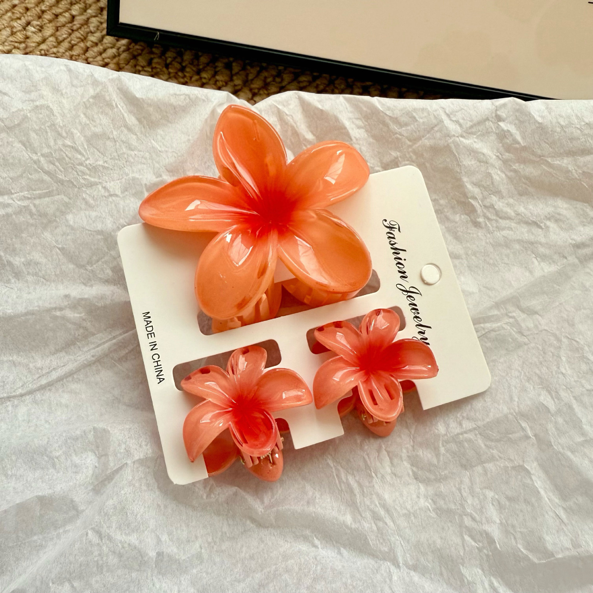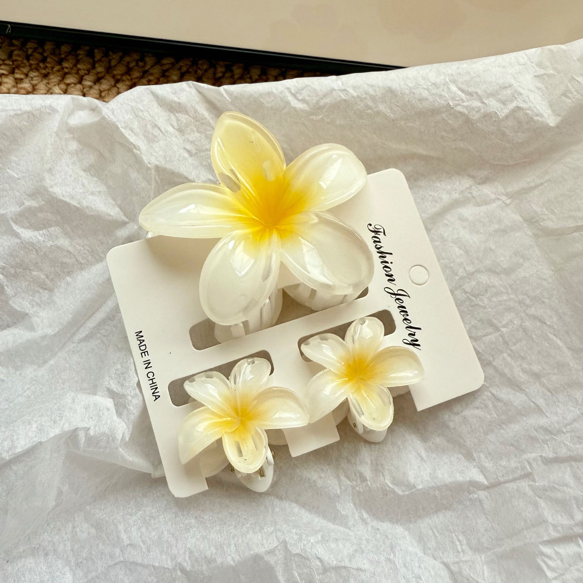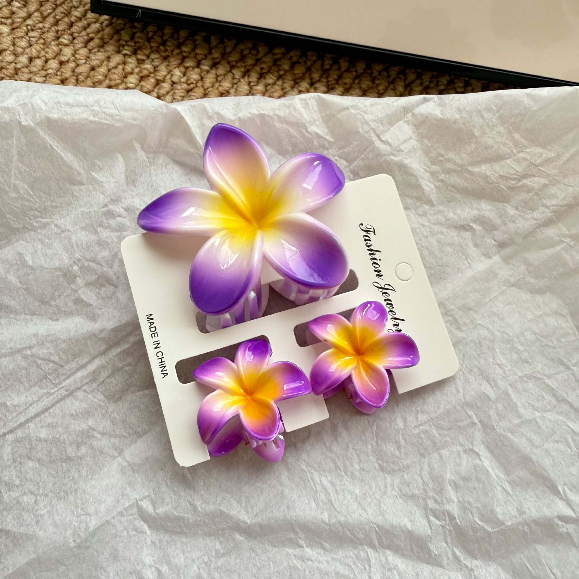 欧美鸡蛋花抓夹套装度假风紫荆花发夹3件套组合头饰套装