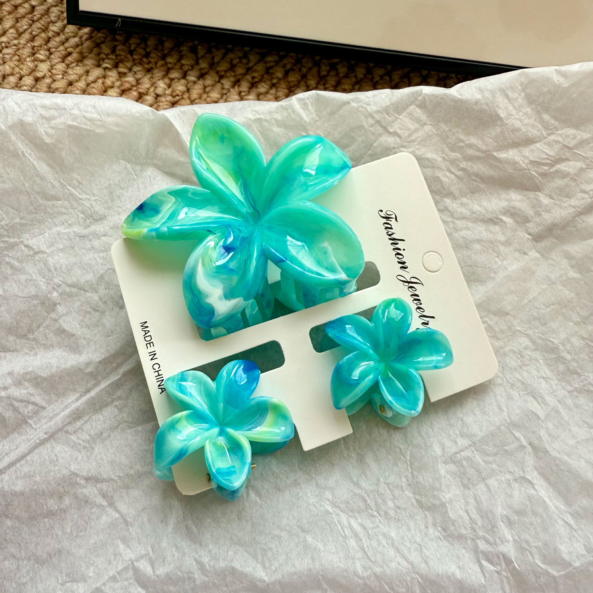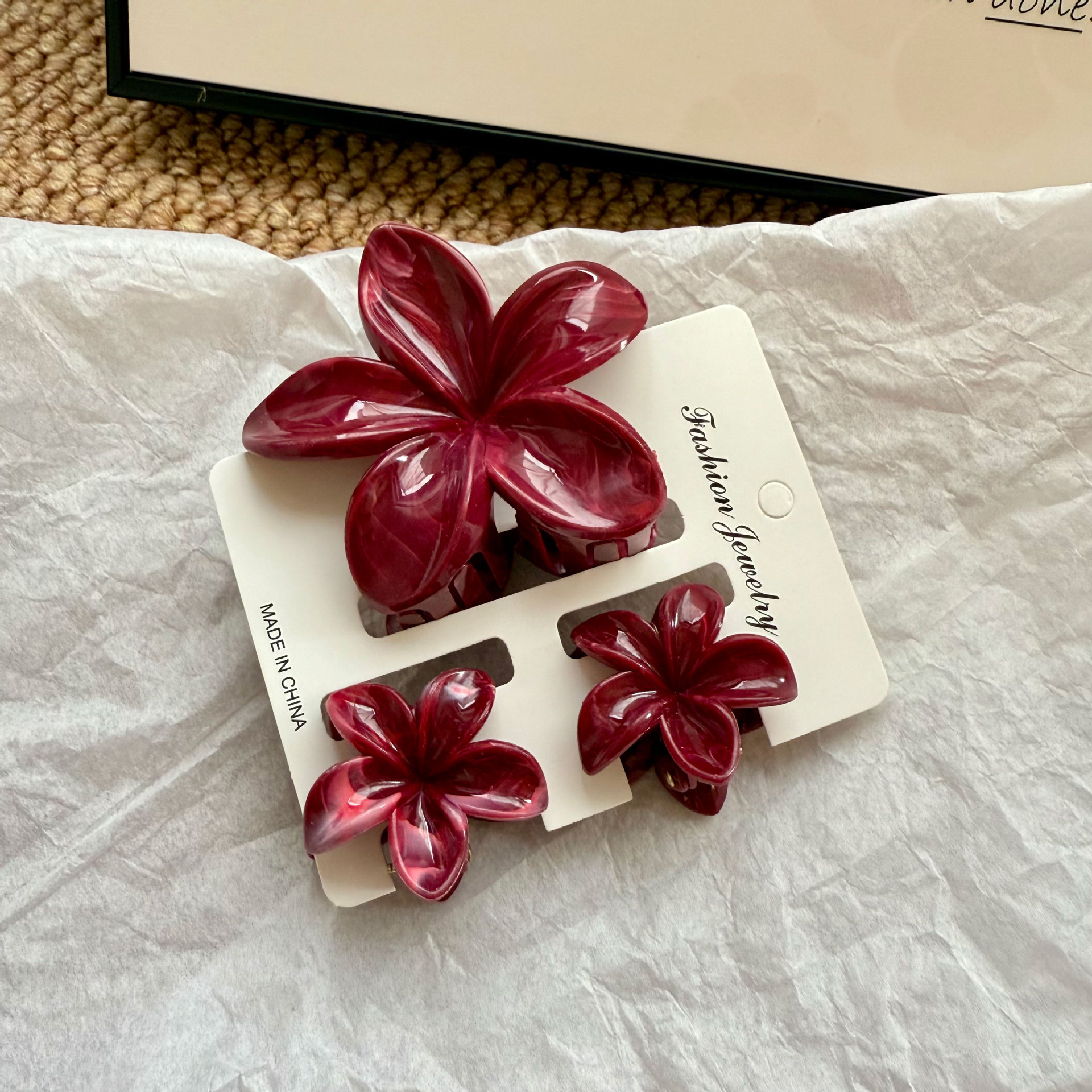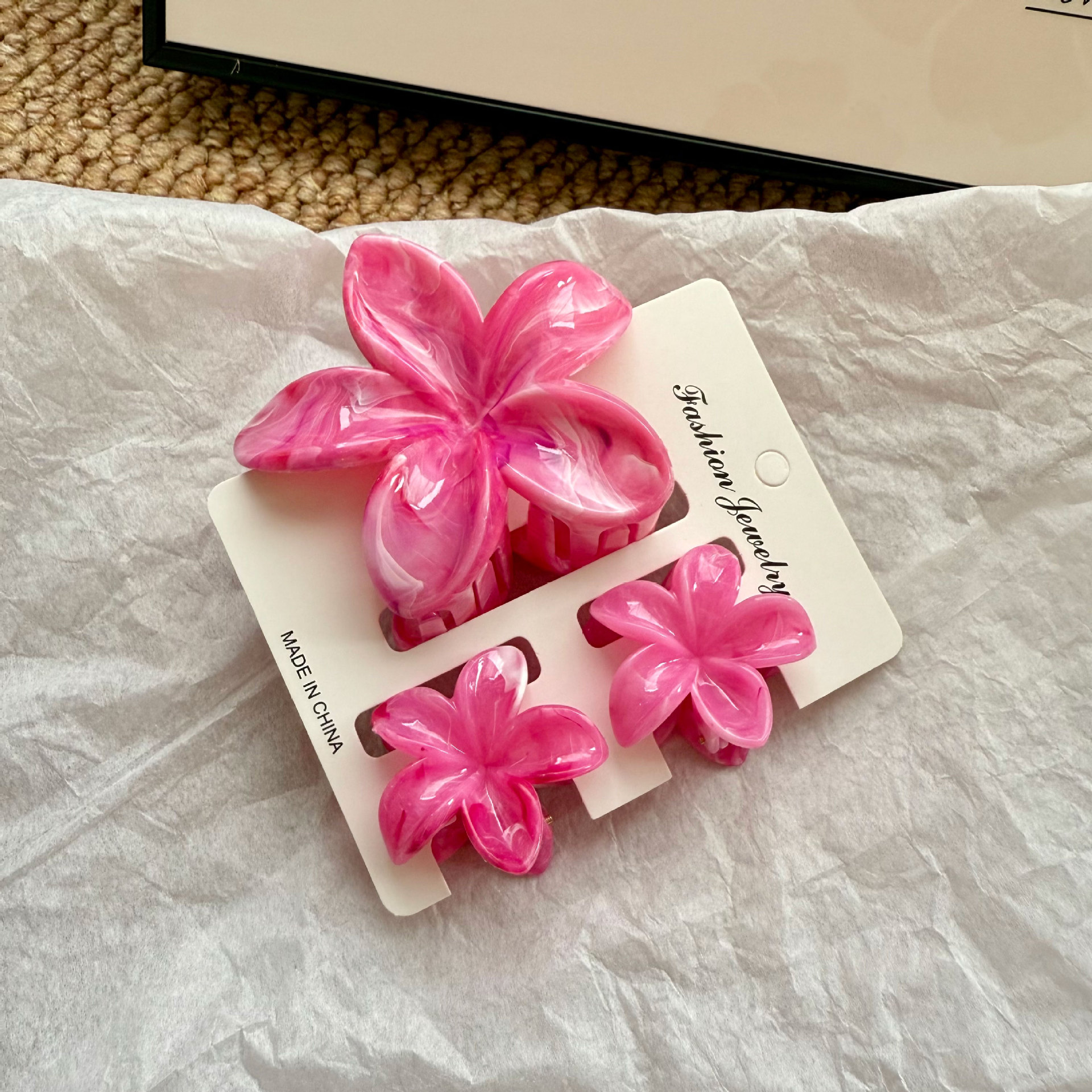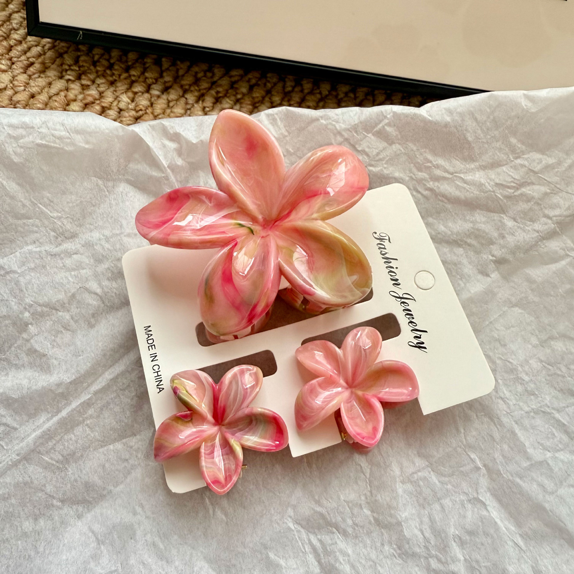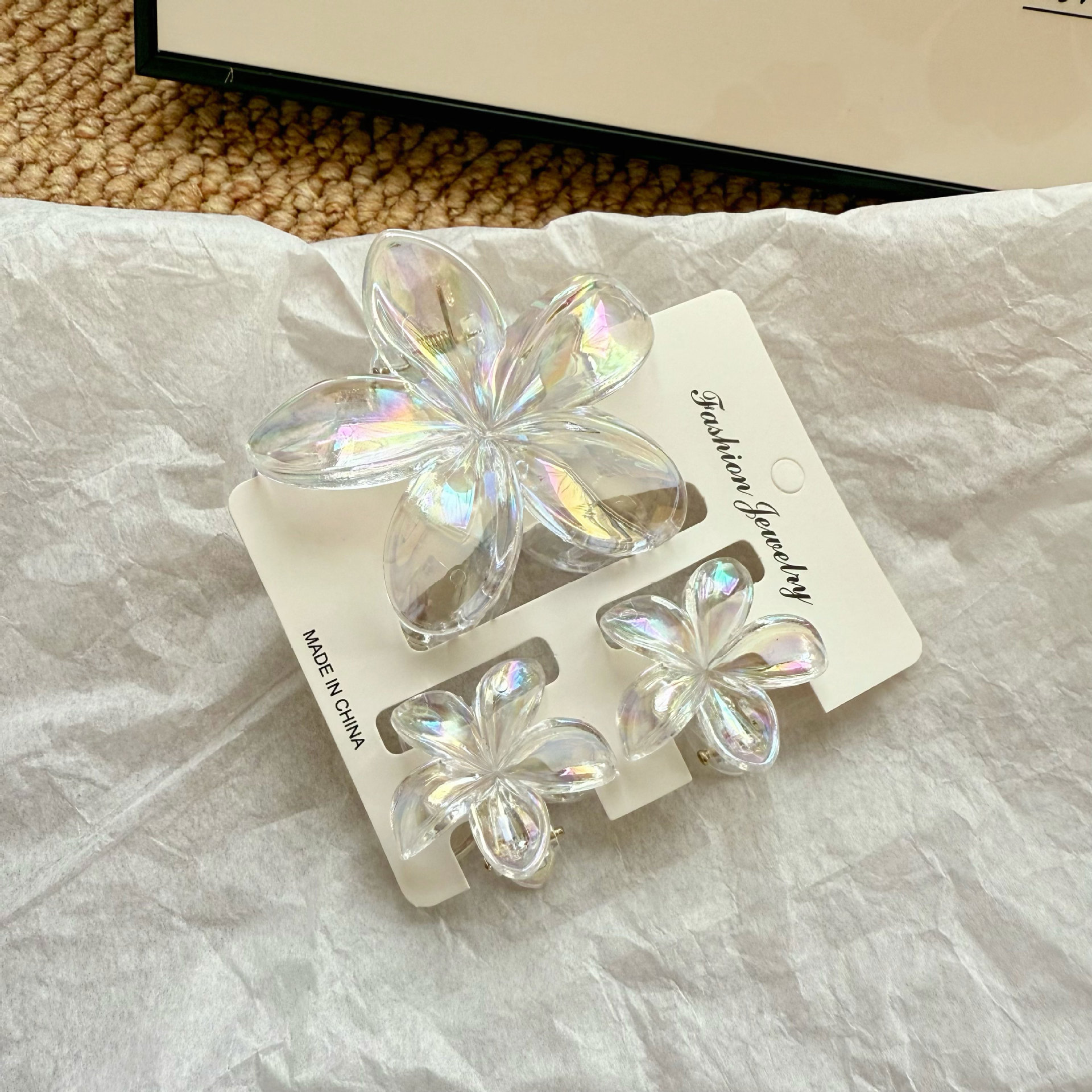 欧美鸡蛋花抓夹套装度假风紫荆花发夹3件套组合头饰套装