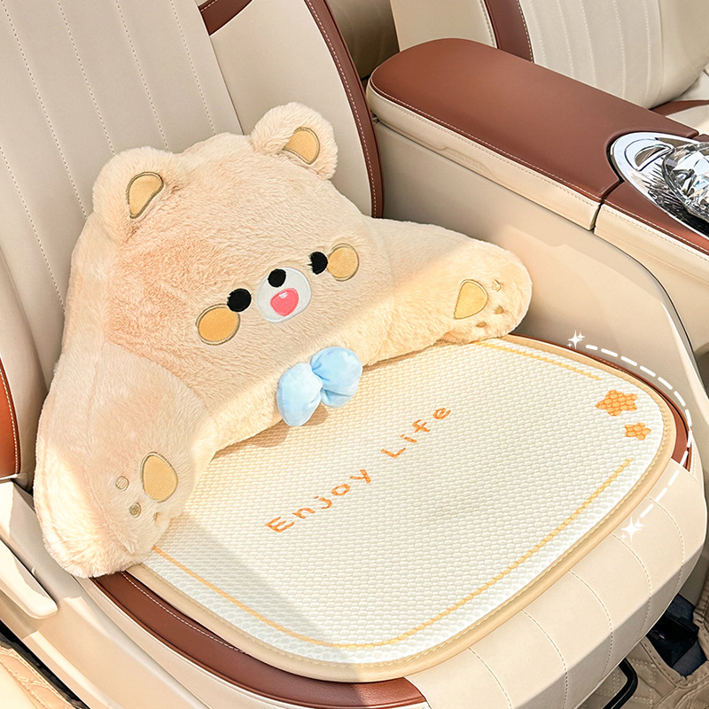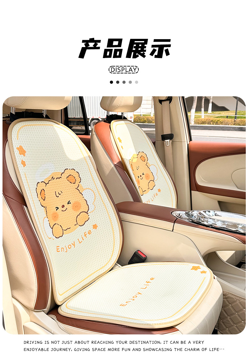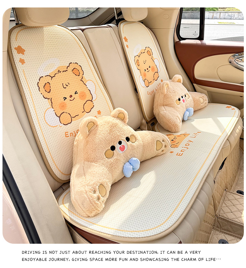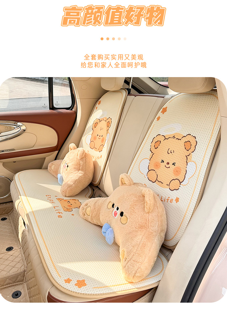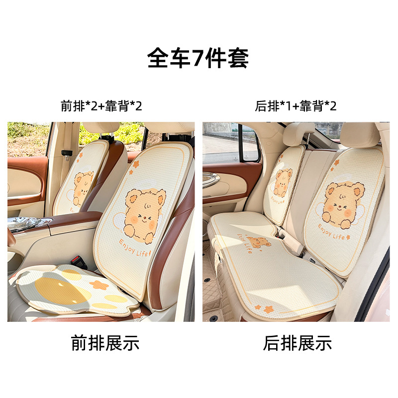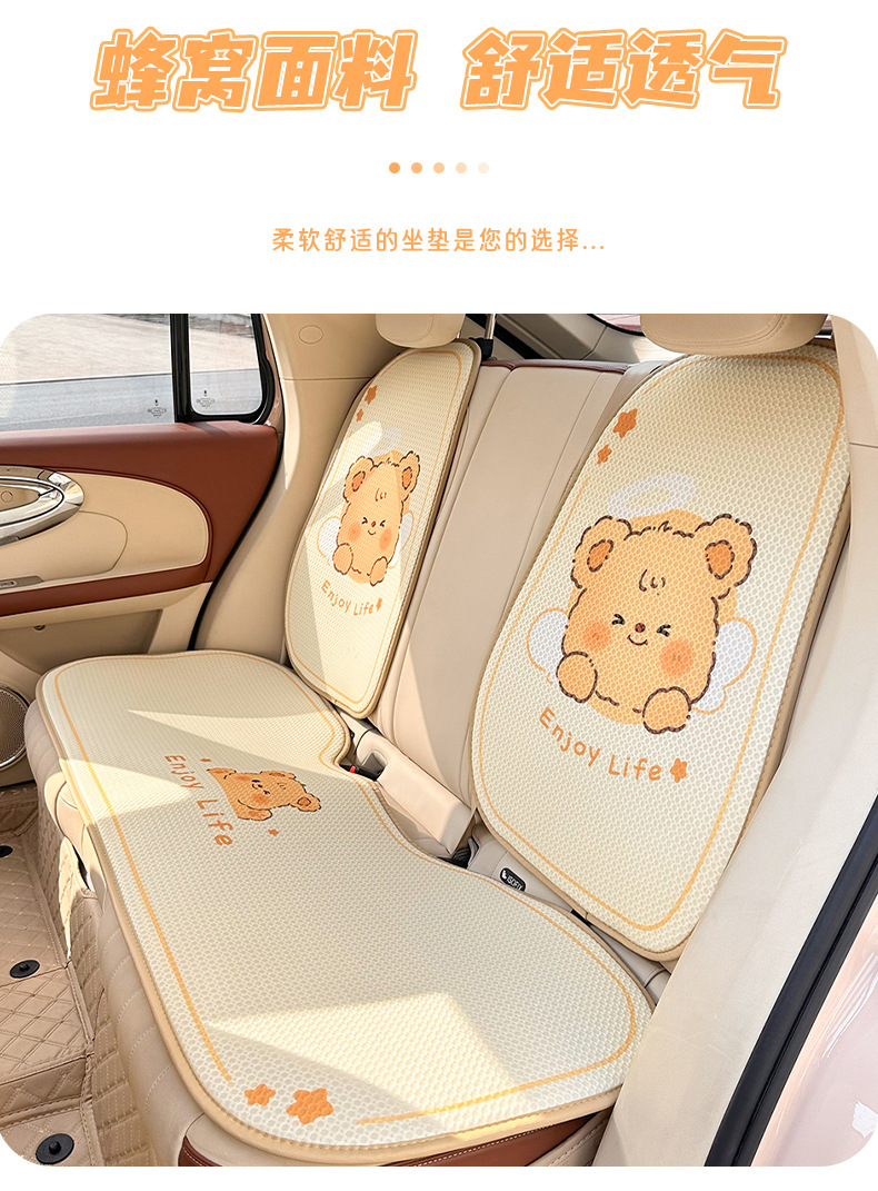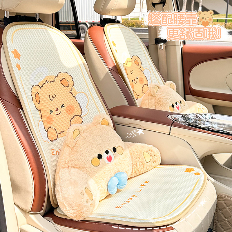 卡通汽车坐垫可爱小熊后排单片车载座垫夏季冰丝清凉舒适车载坐垫