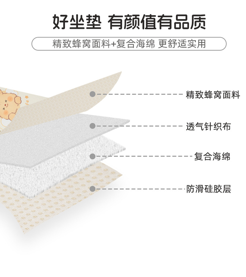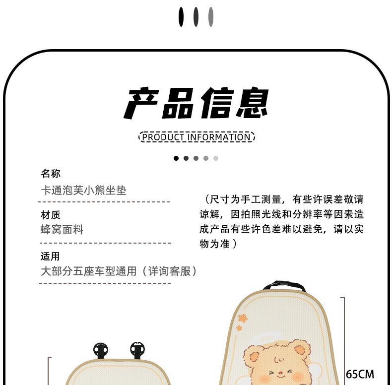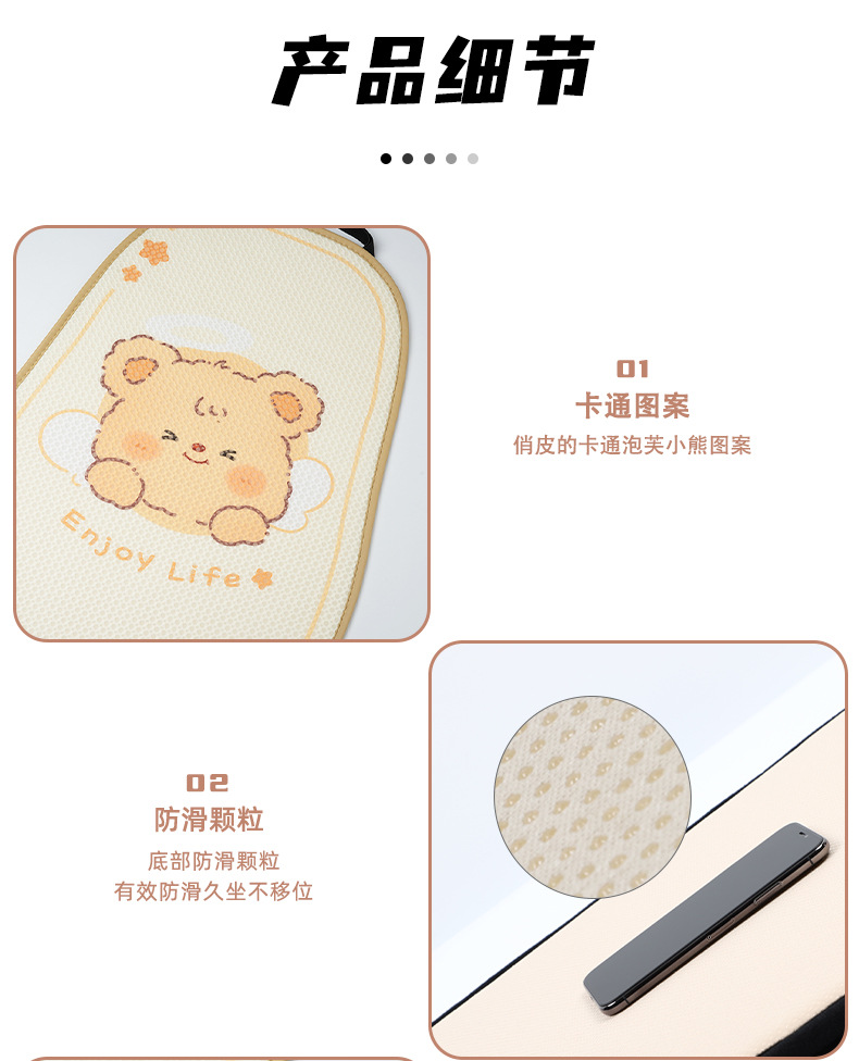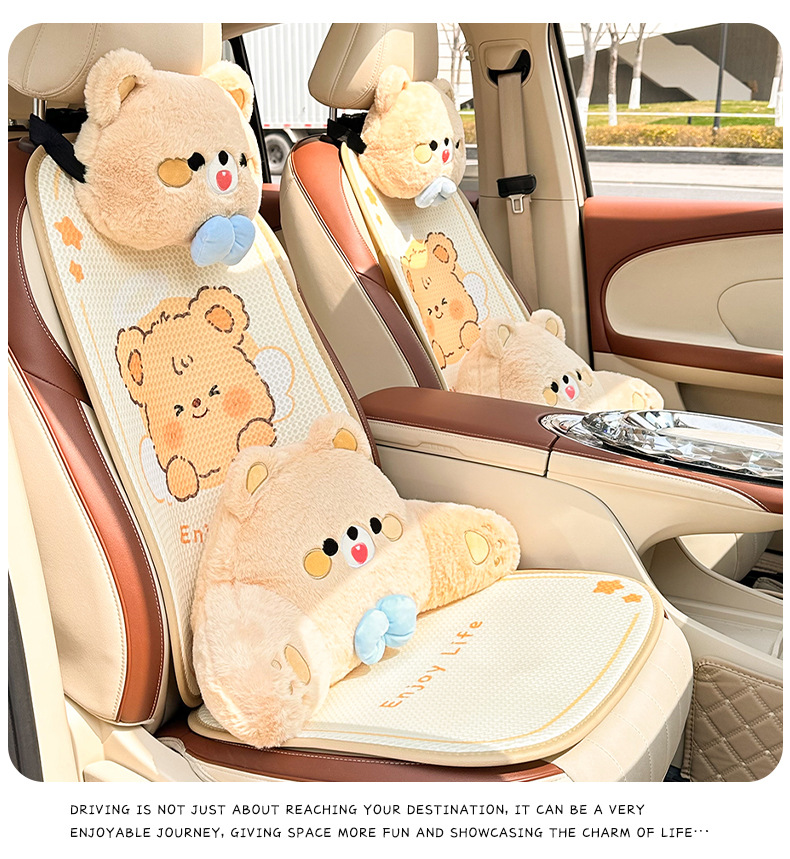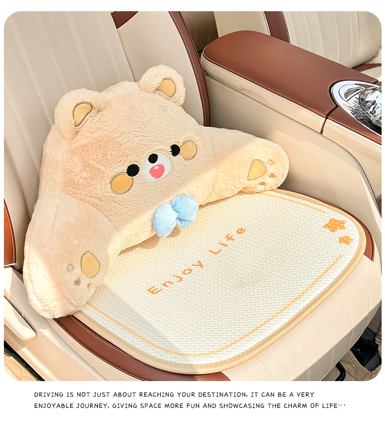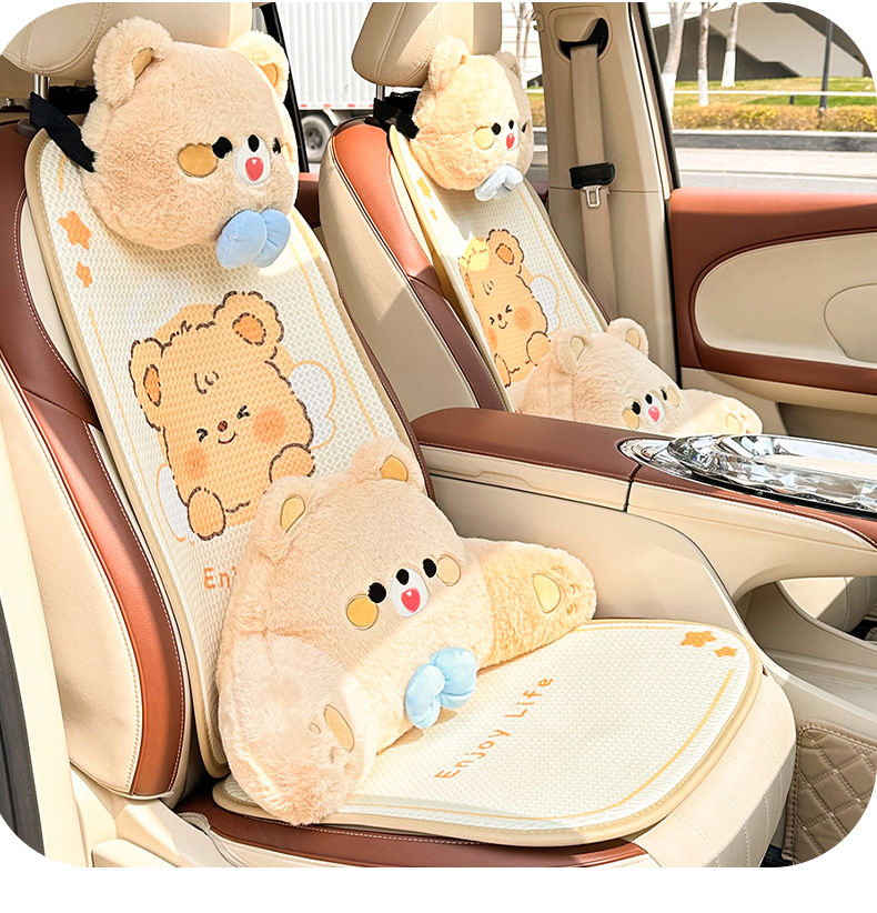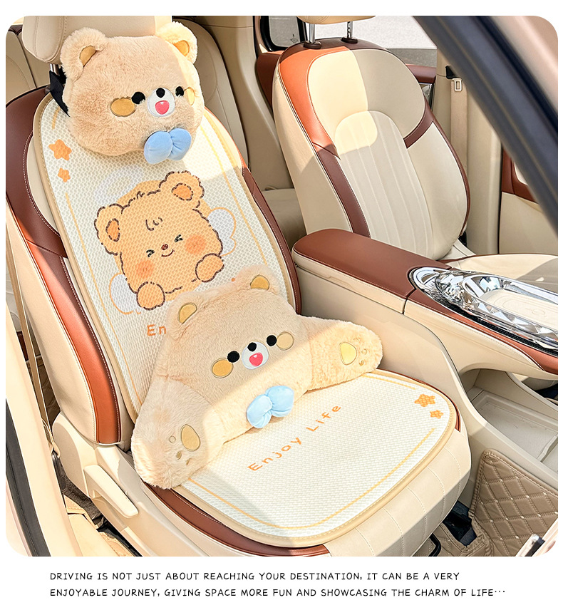 卡通汽车坐垫可爱小熊后排单片车载座垫夏季冰丝清凉舒适车载坐垫