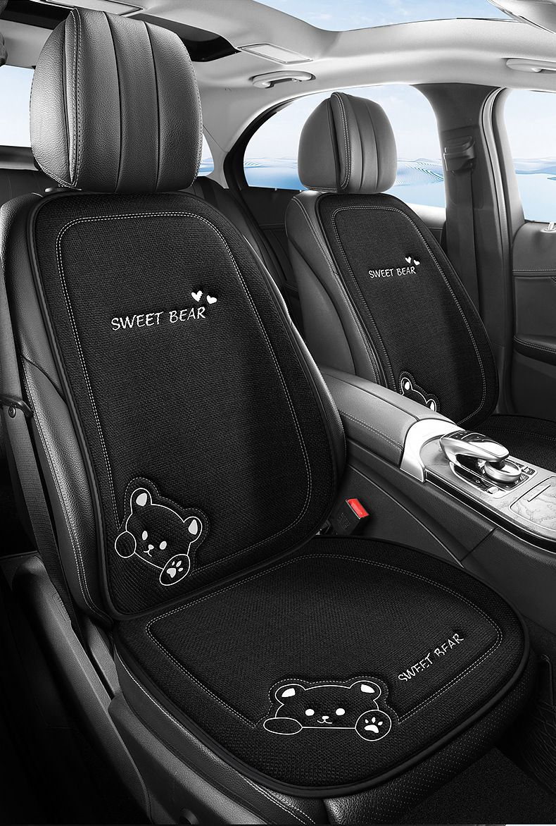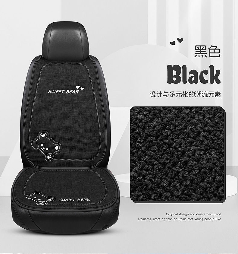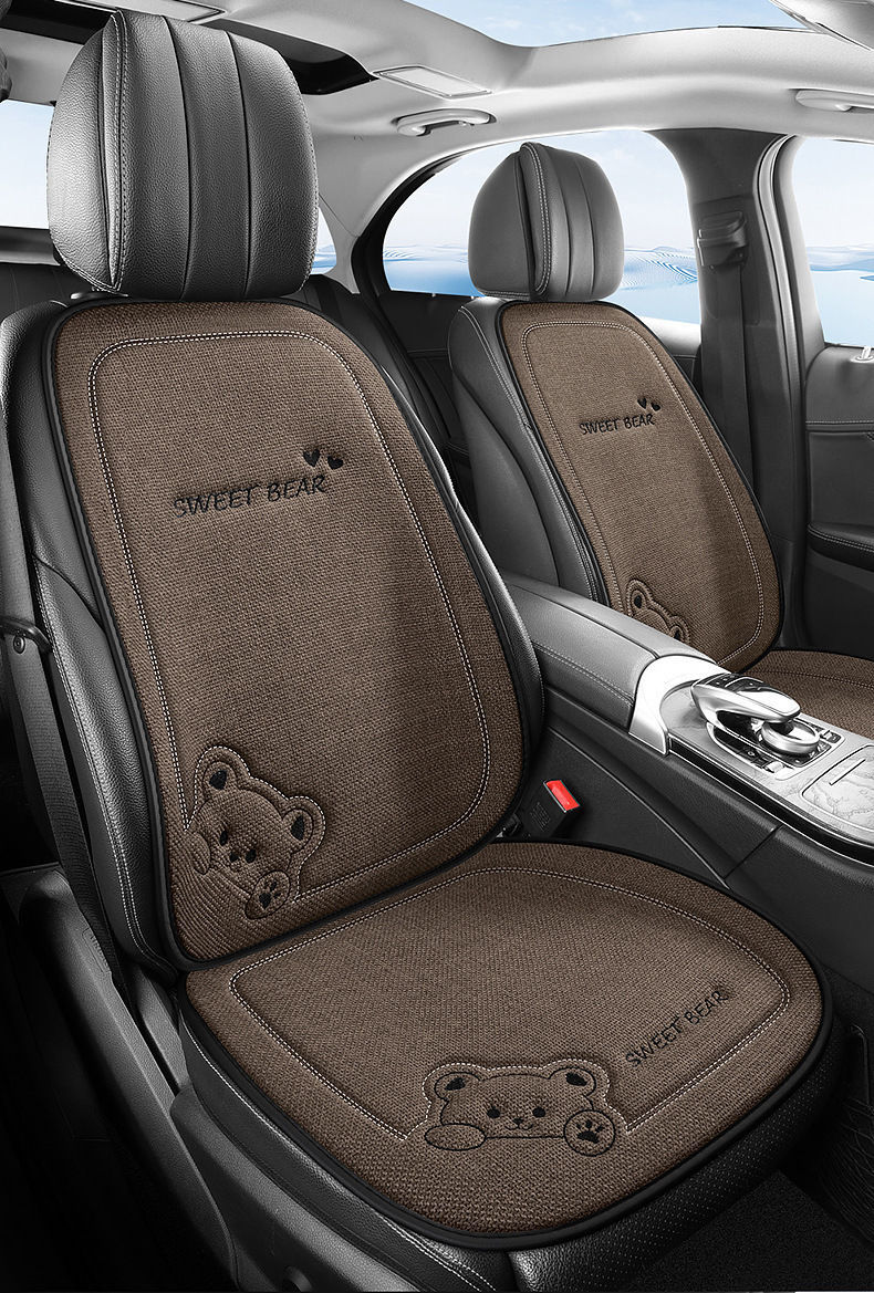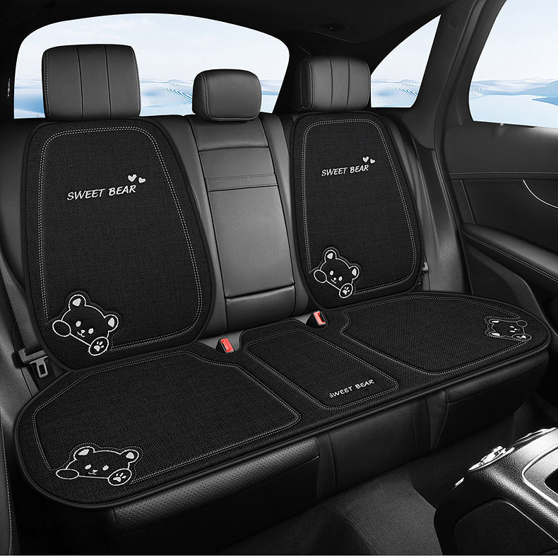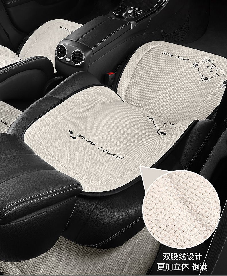 汽车坐垫四季通用车内驾驶座垫亚麻卡通后排座椅垫单片座椅套女士