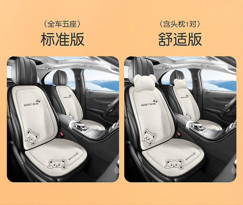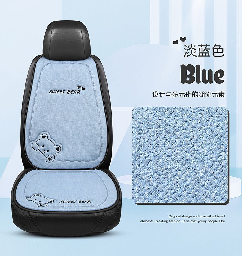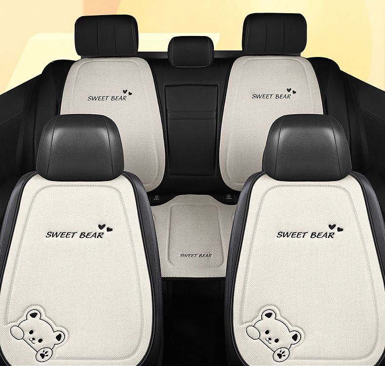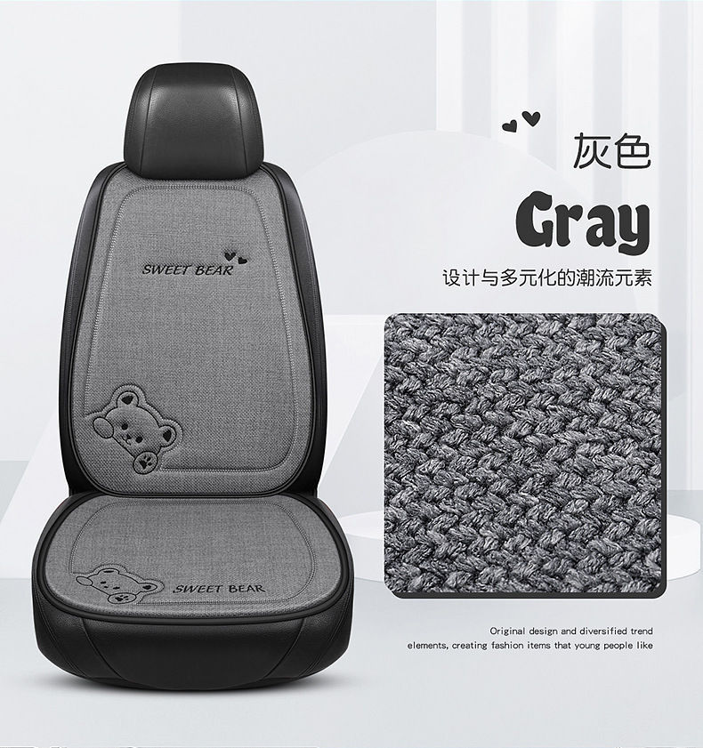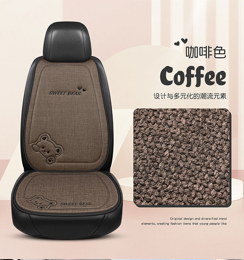 汽车坐垫四季通用车内驾驶座垫亚麻卡通后排座椅垫单片座椅套女士