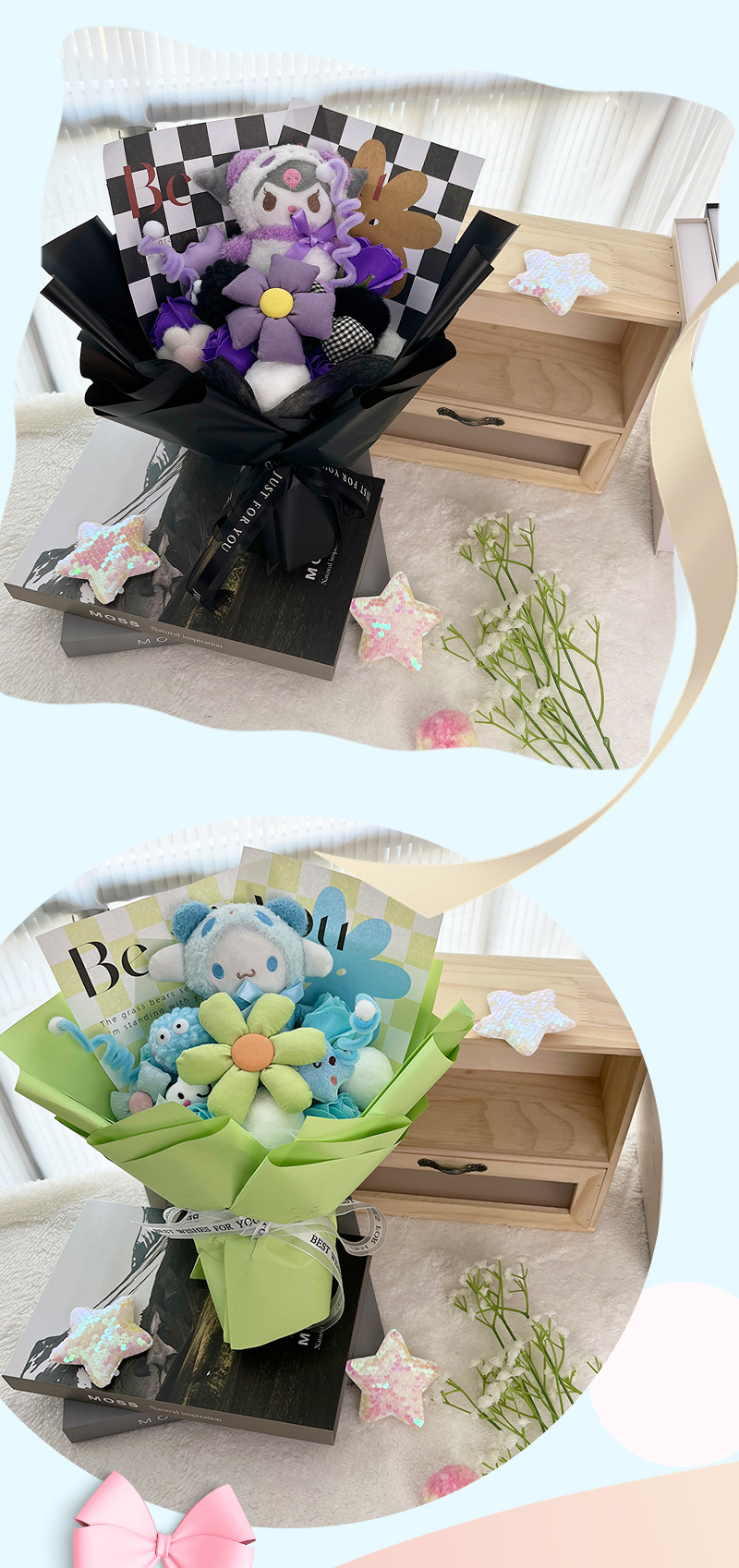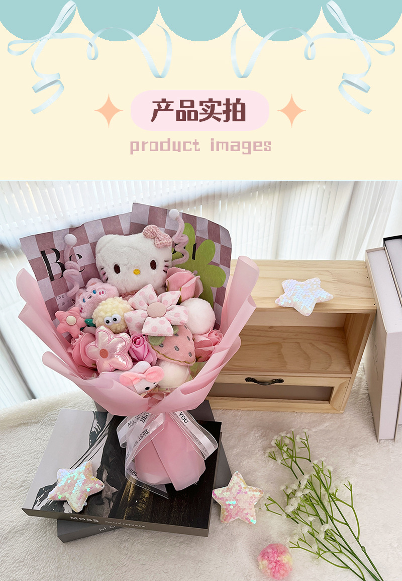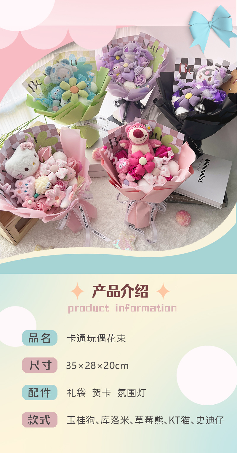 七夕情人节礼物玩偶花束成品送女生棋盘格公仔花束儿童节生日礼物