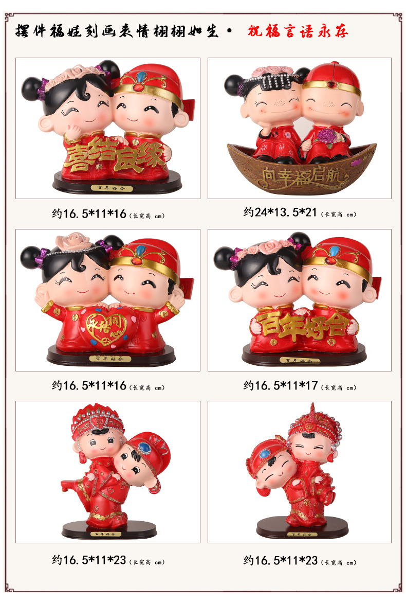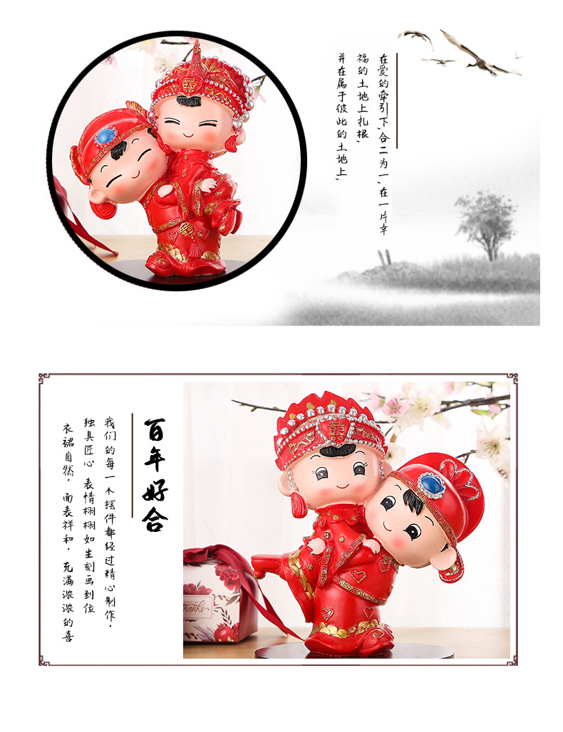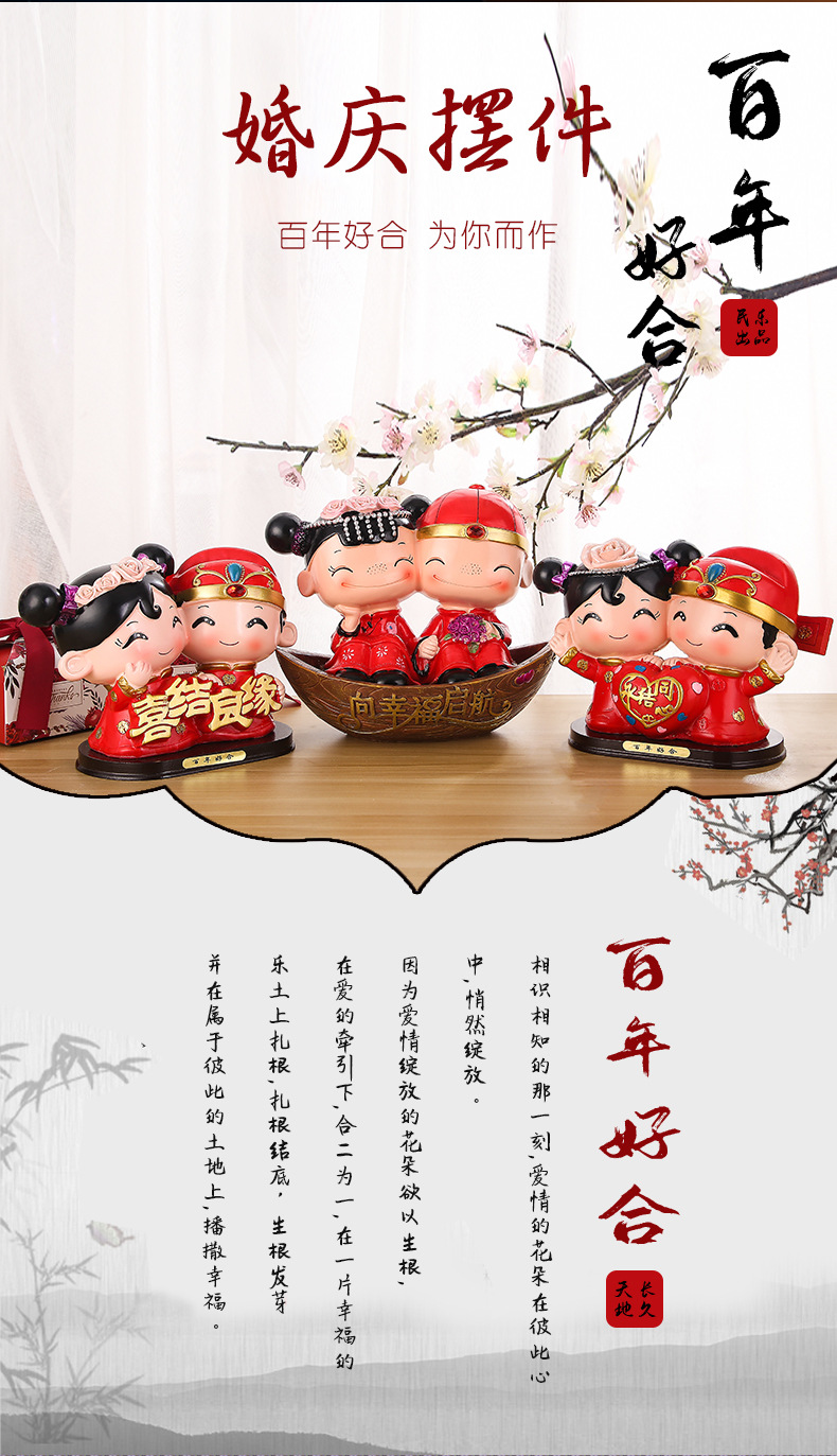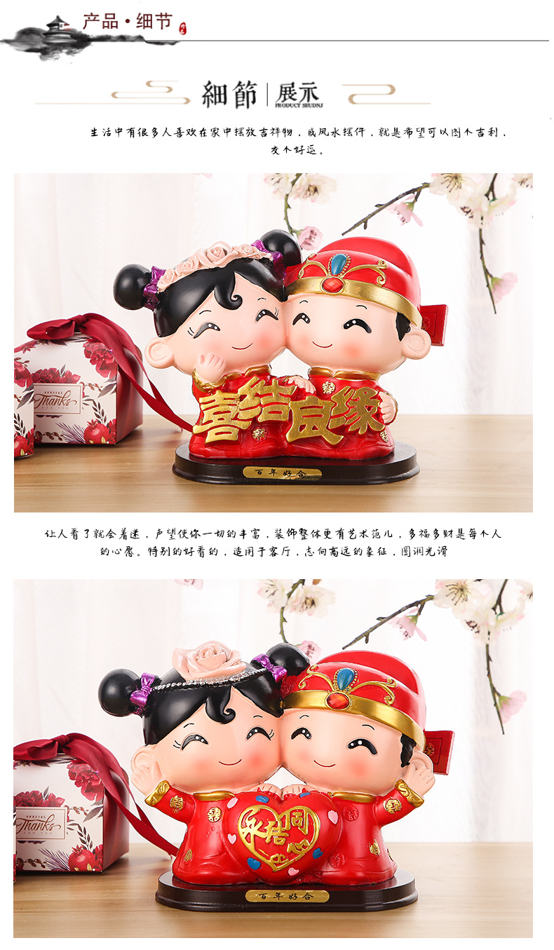 婚庆娃娃新婚结婚礼物百年好合礼品婚房家居装饰摆设树脂中式摆件