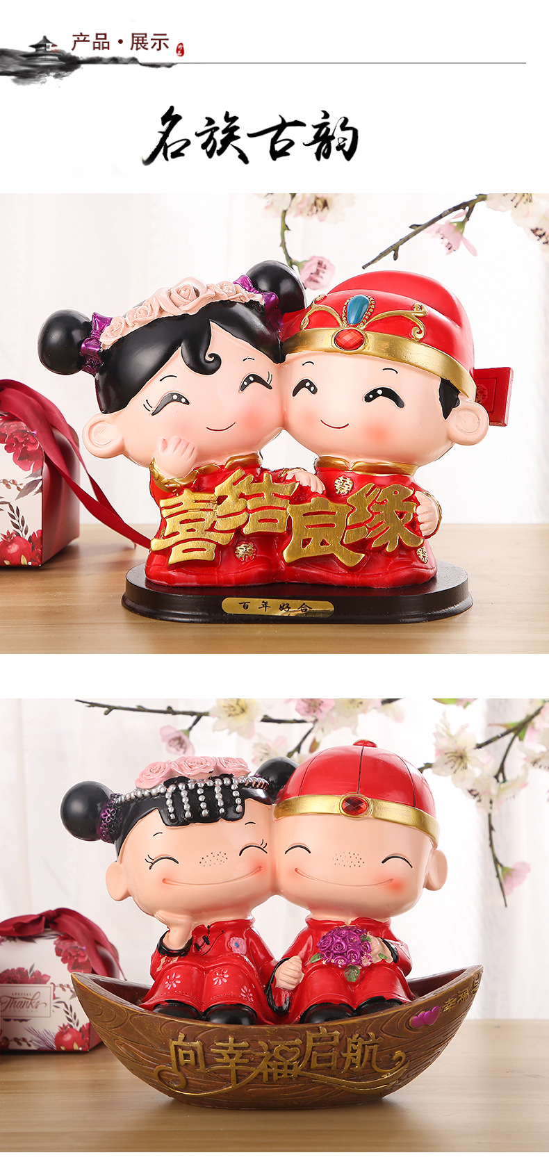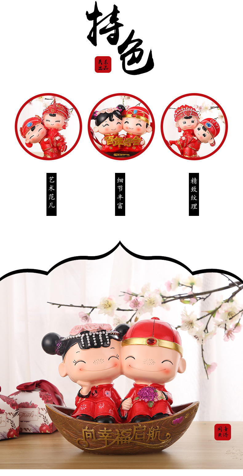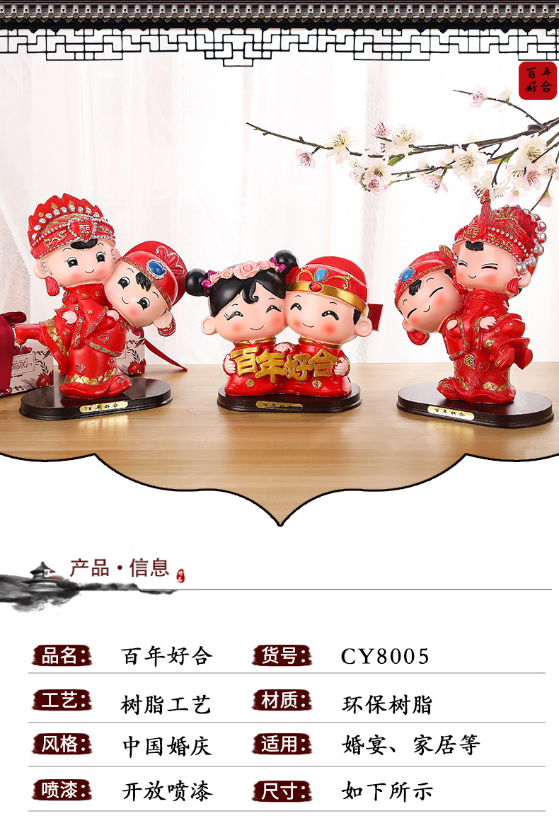 婚庆娃娃新婚结婚礼物百年好合礼品婚房家居装饰摆设树脂中式摆件