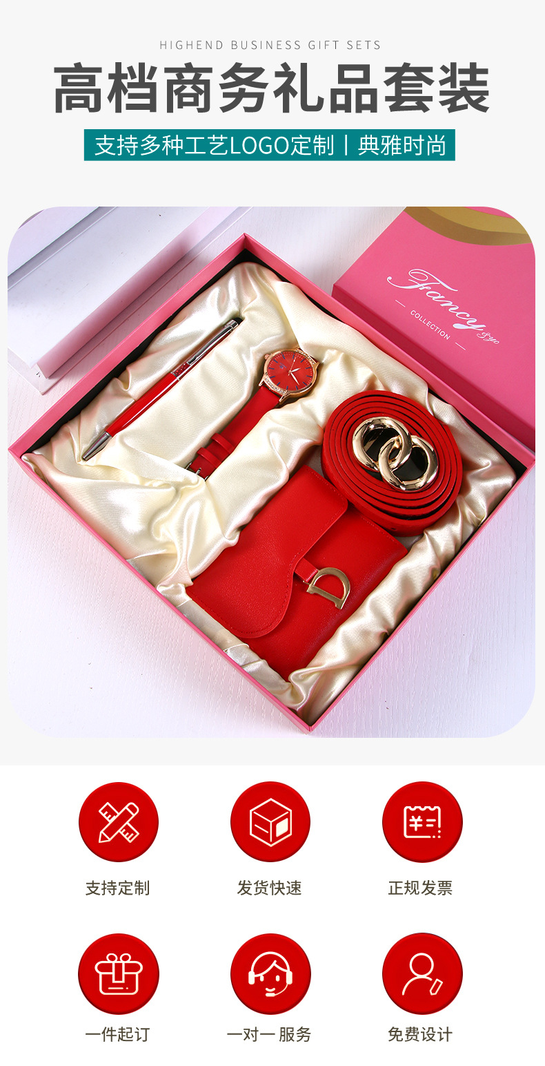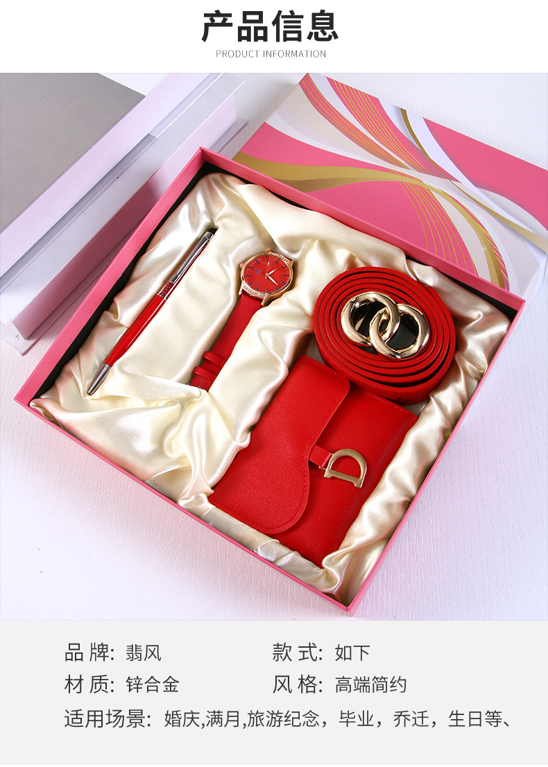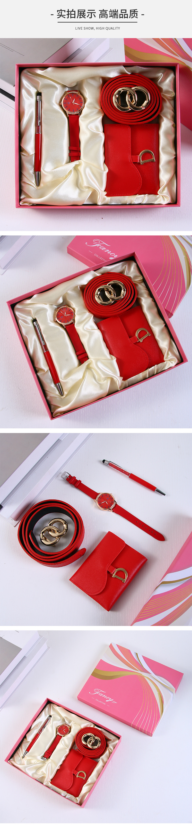 教师节七夕情人节四件套礼物钱包手表商务休闲套装时尚红色系礼盒