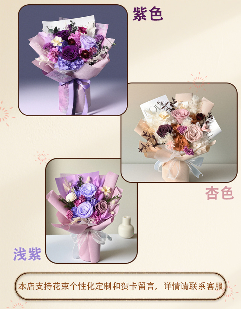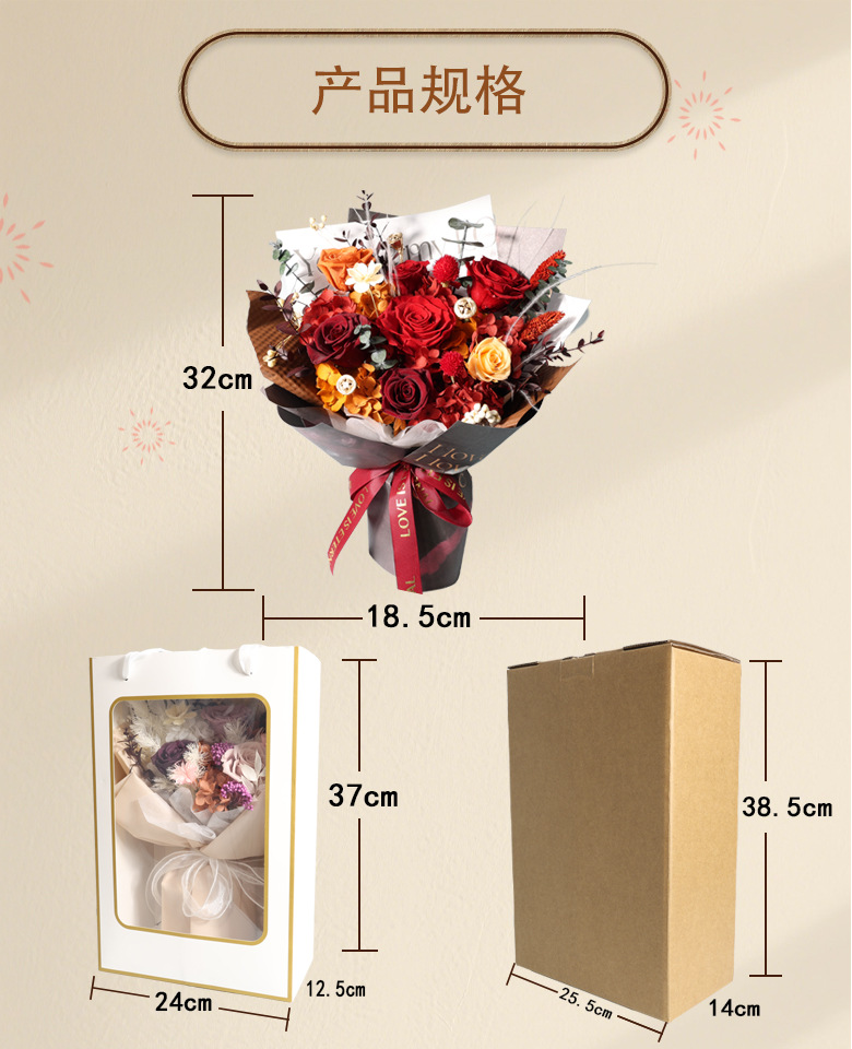 永生花花束礼盒七夕情人节女朋友生日礼物玫瑰花成品批发永生花束