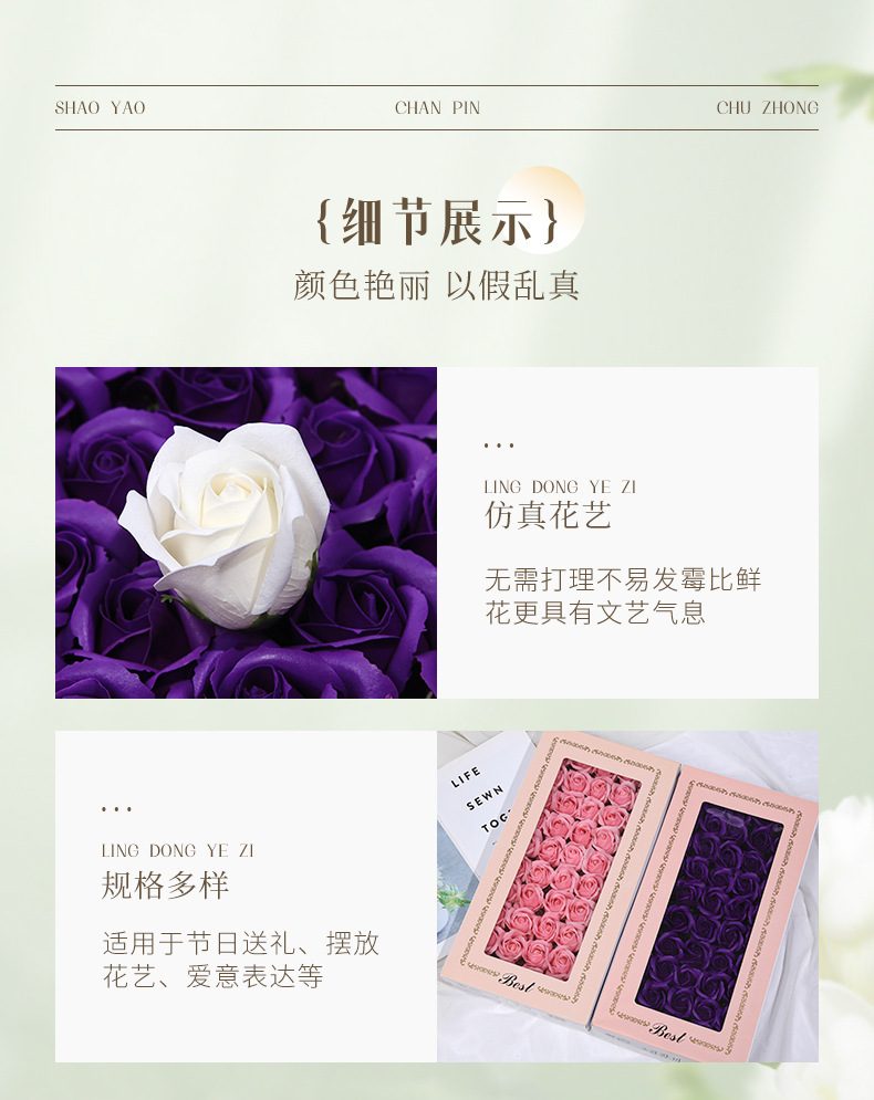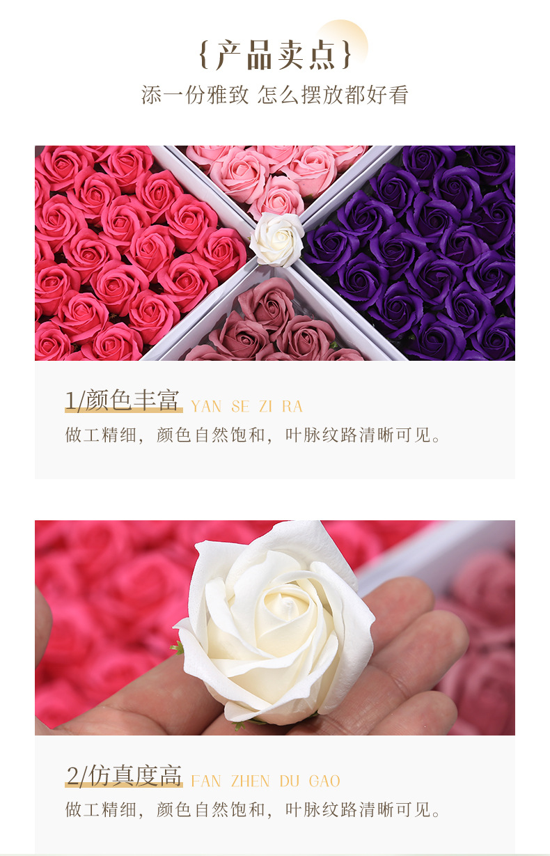 有底座三层香皂花头厂家批发七夕情人节礼物盒装玫瑰仿真花肥皂花