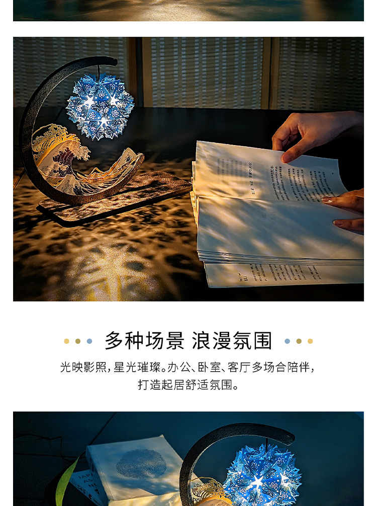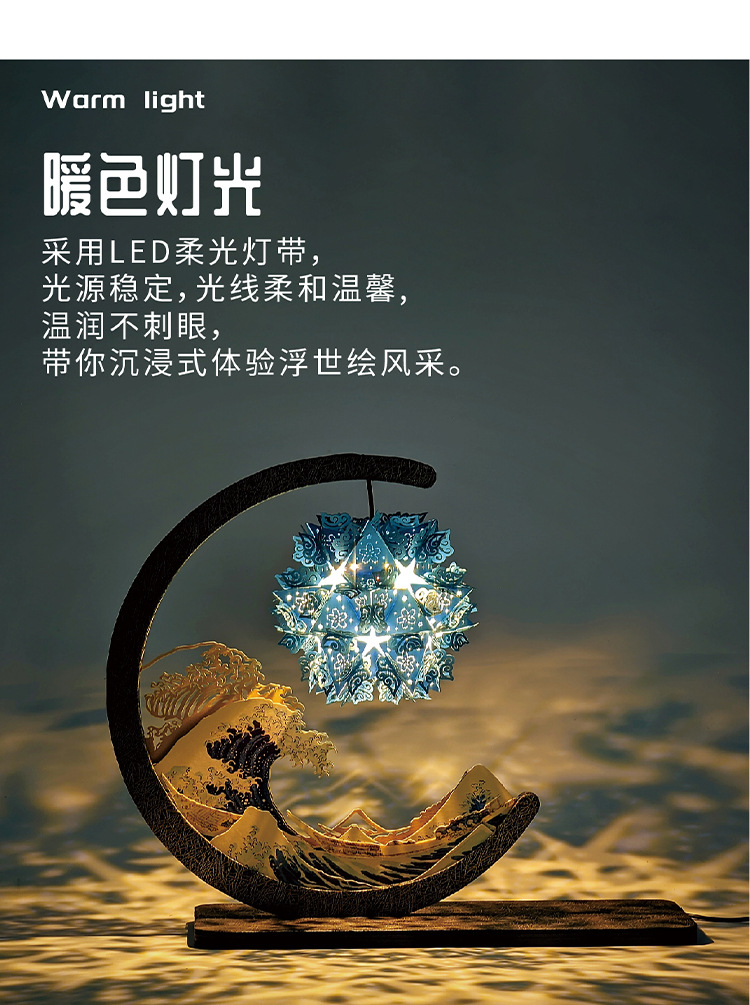 浮世绘冲浪里DIY手工情人节七夕女神浪漫礼物创意礼品光影纸雕灯