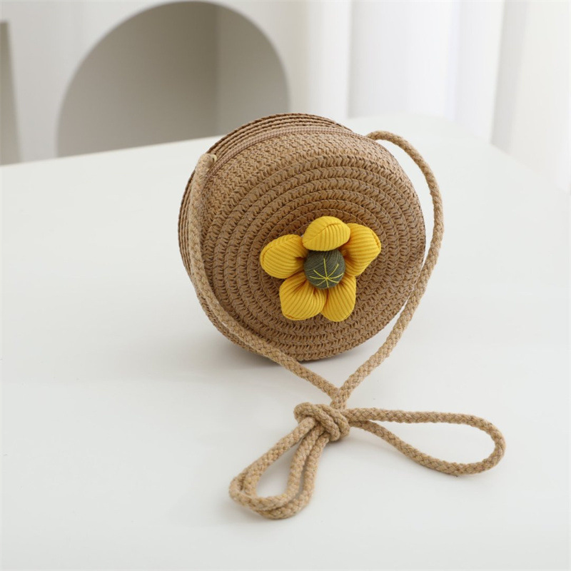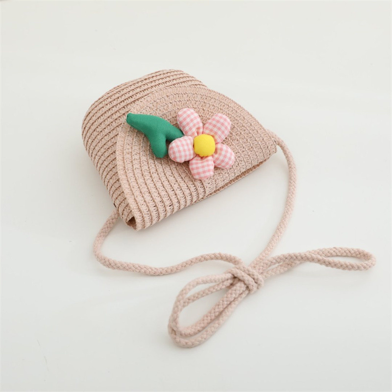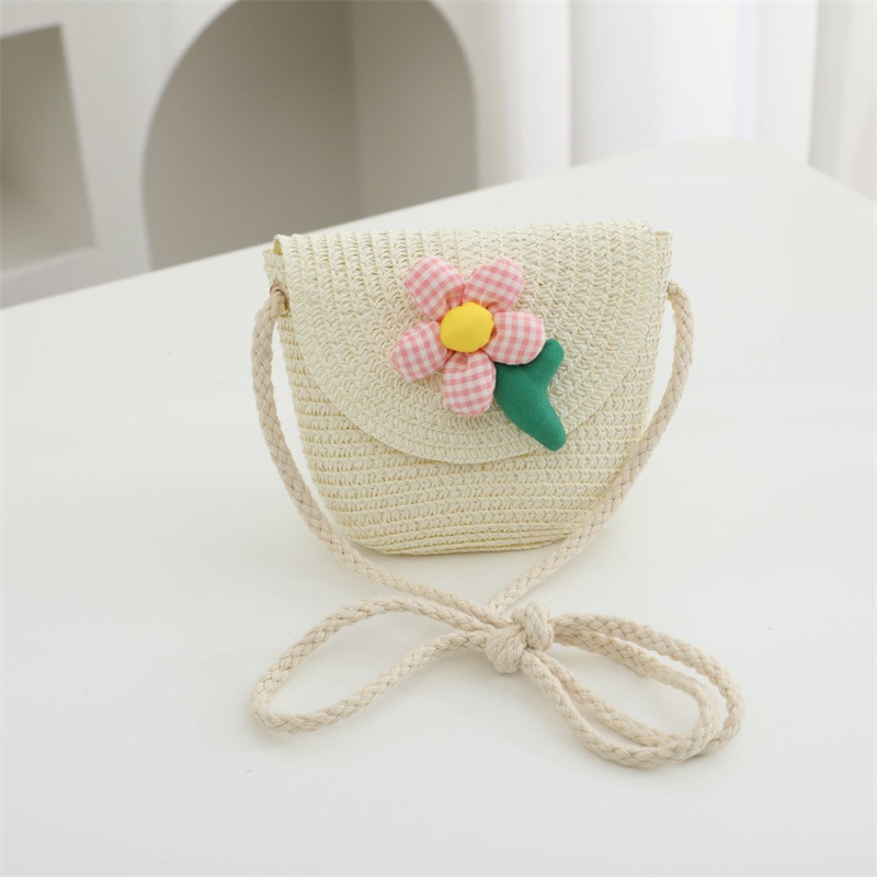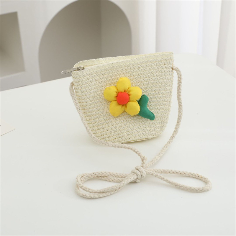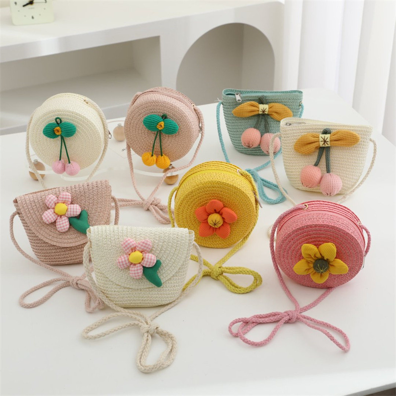 新款包包可爱ins斜挎包夏天儿童斜跨包零钱包花朵迷你草编包单肩