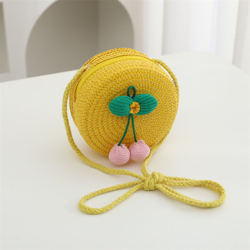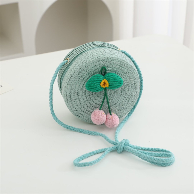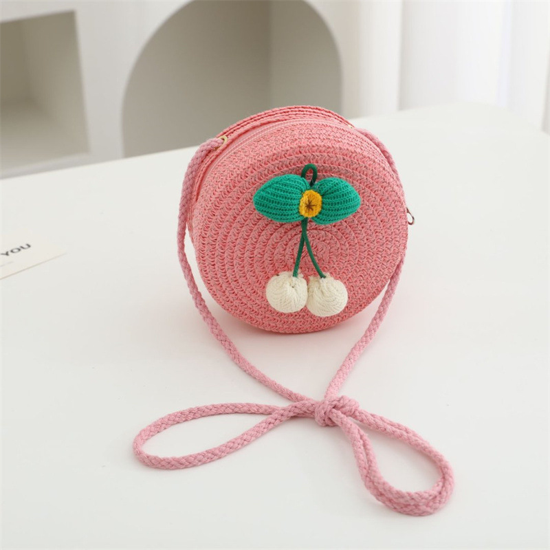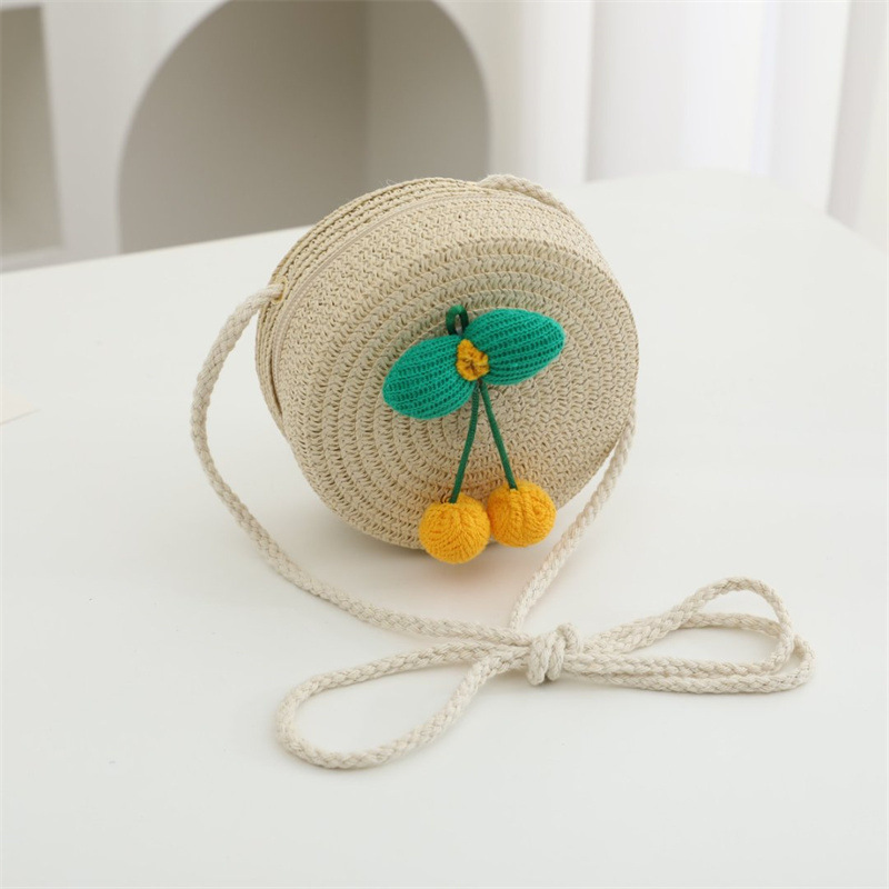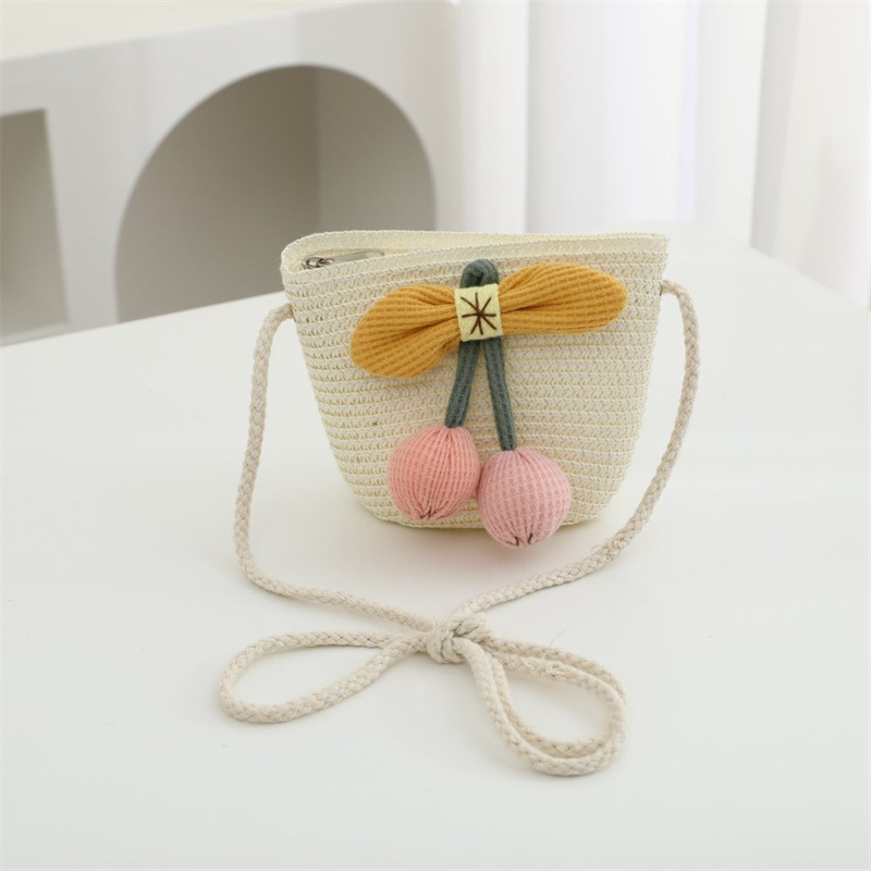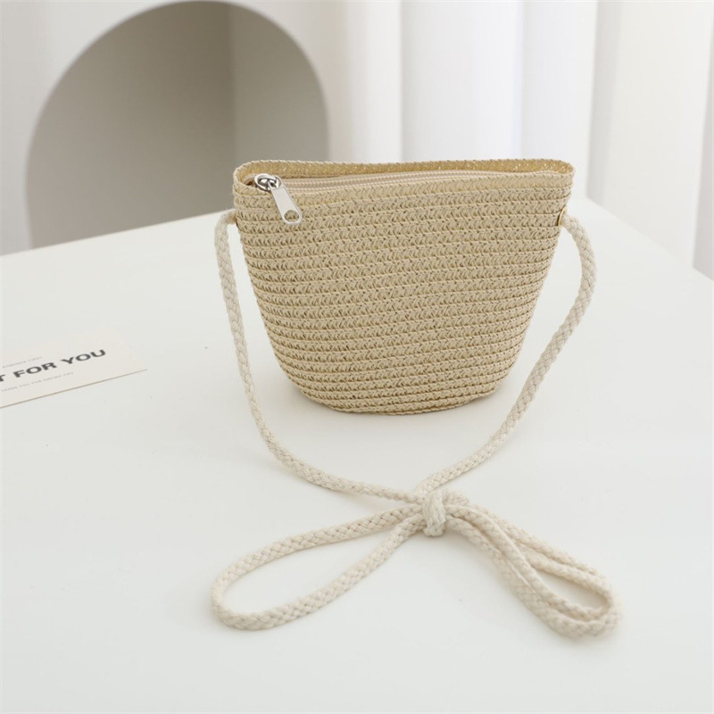 新款包包可爱ins斜挎包夏天儿童斜跨包零钱包花朵迷你草编包单肩