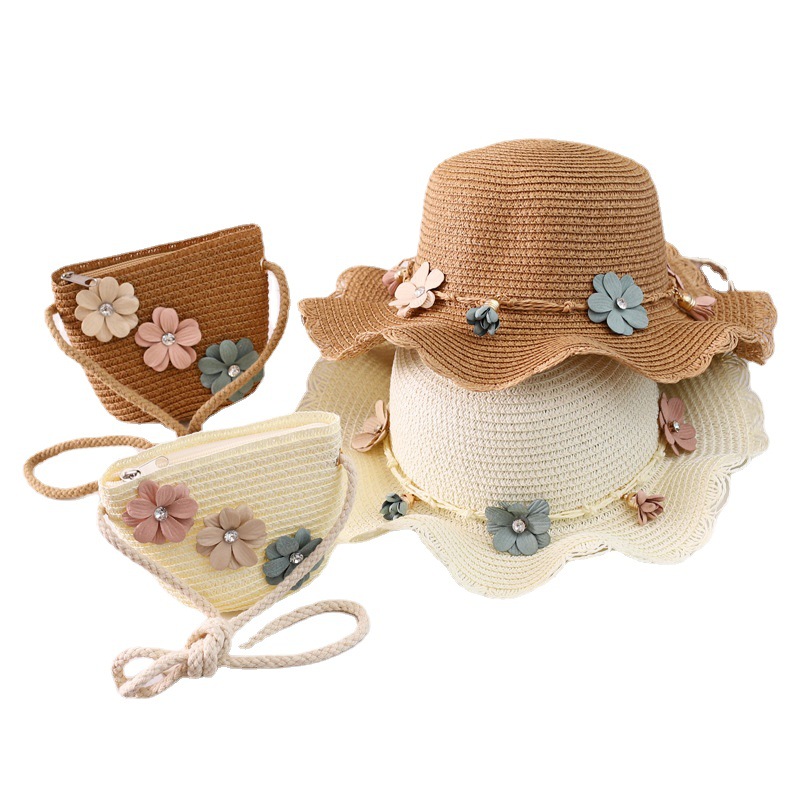 2020新款夏儿童草帽女童时尚小挎包套装亲子款渔夫盆帽大檐遮阳