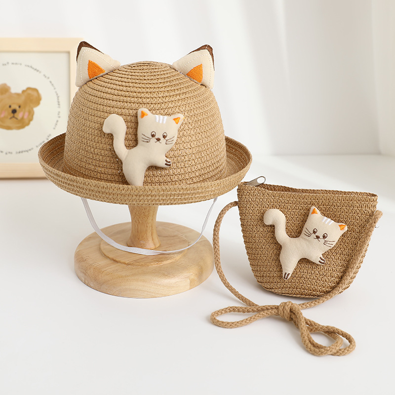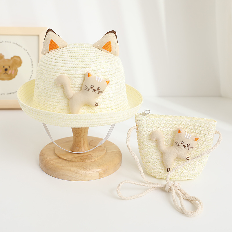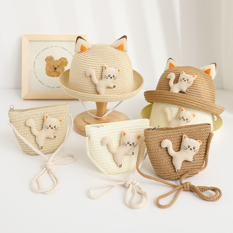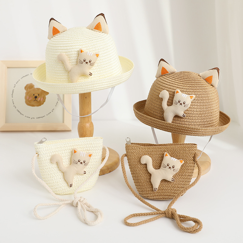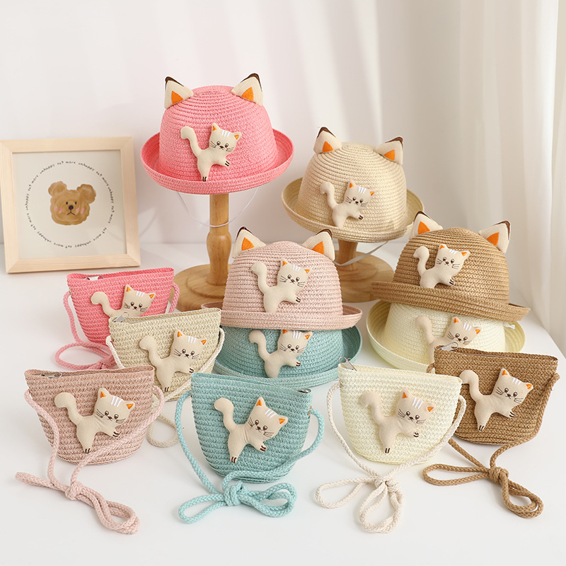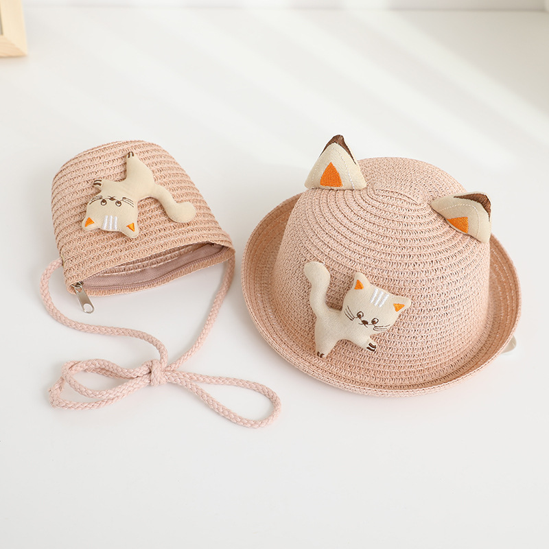 儿童遮阳帽男女童夏新款草帽包包套装防晒太阳帽夏天卡通宝宝凉帽