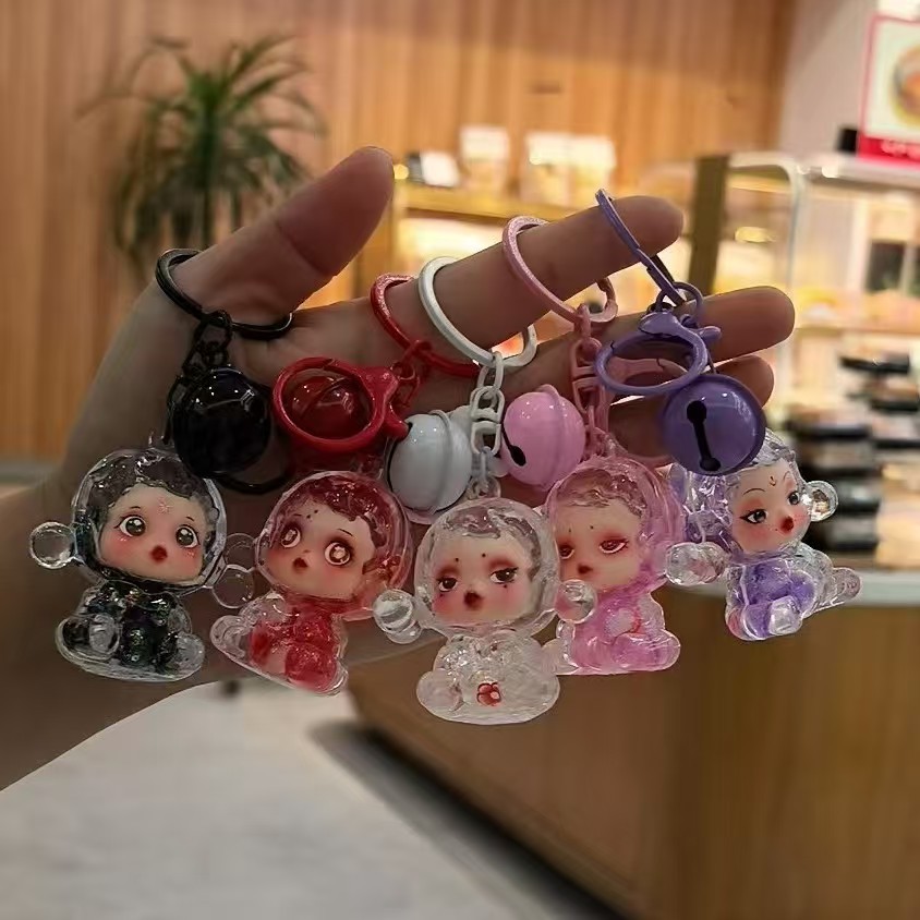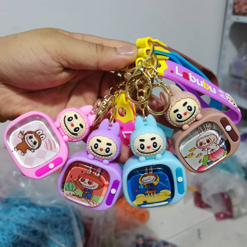 跨境热卖爆款布布流沙瓶钥匙扣lafufu流沙挂件亚克力入油公仔批发