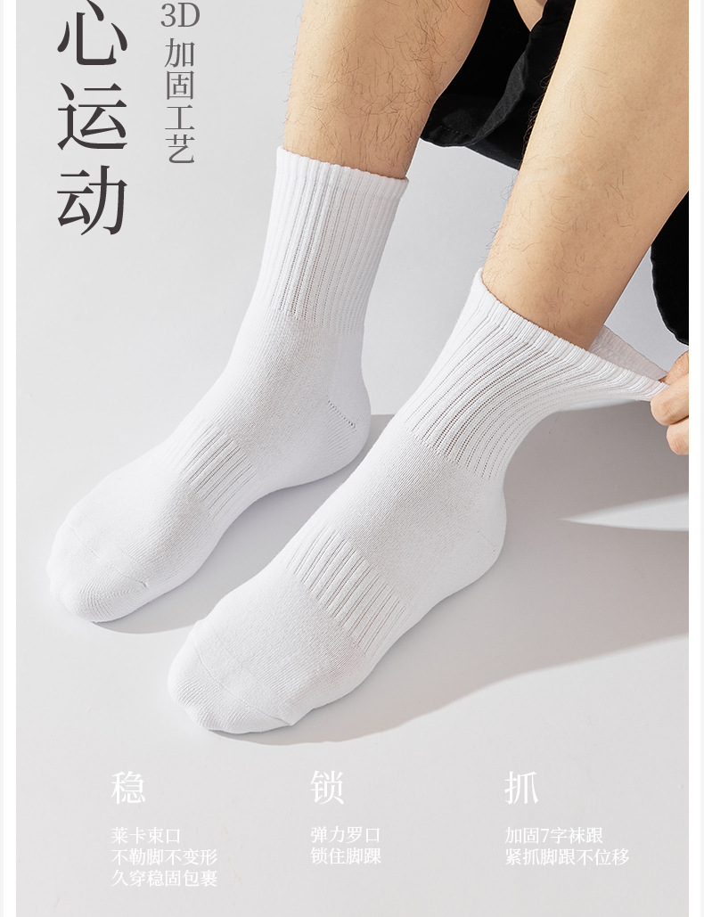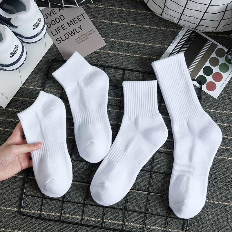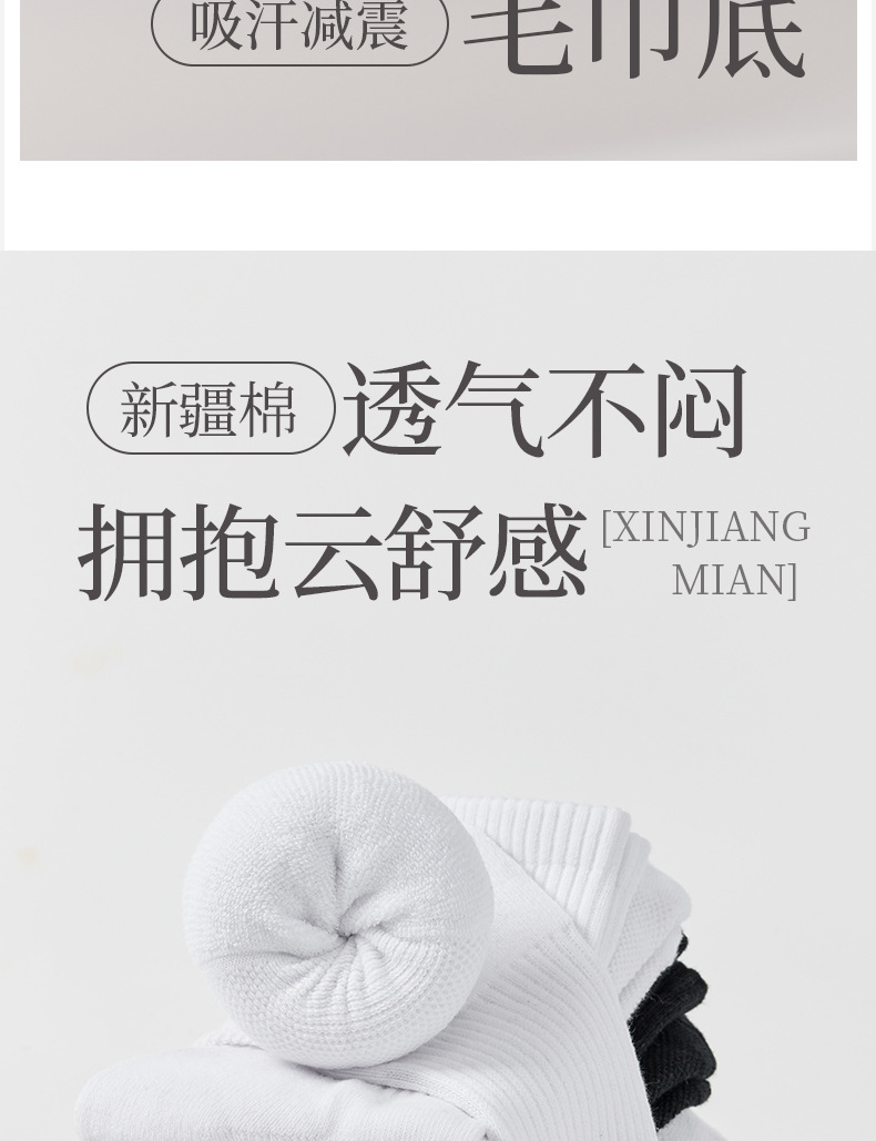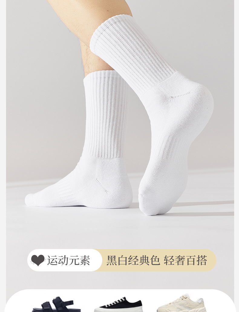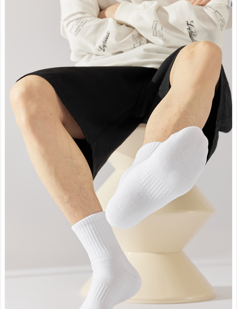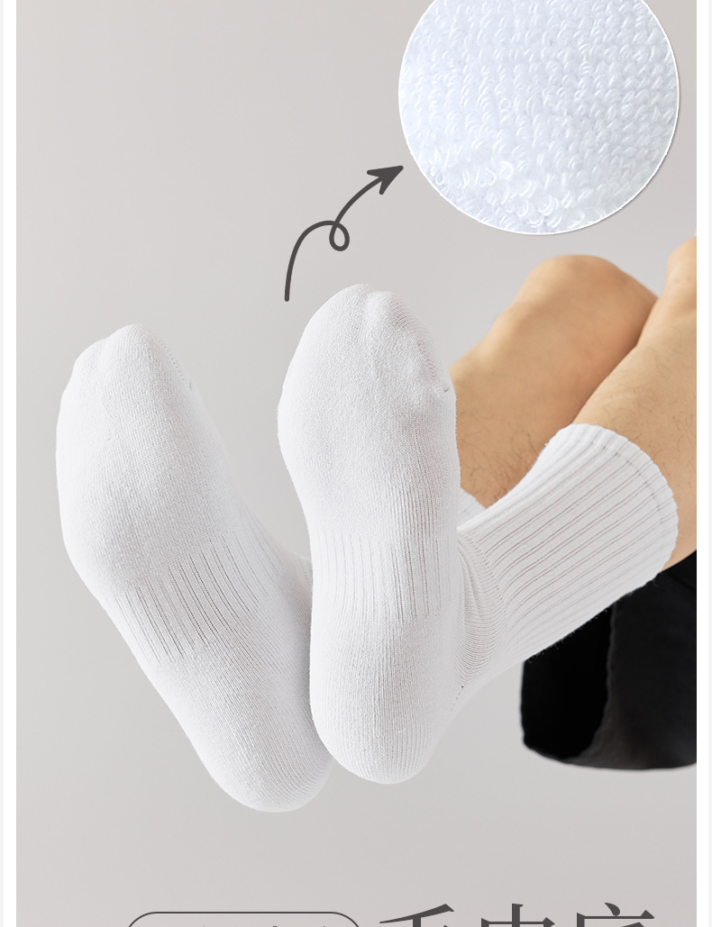 7双袜子男士夏季中筒袜纯棉长袜加厚毛巾底运动袜白色长筒袜短袜