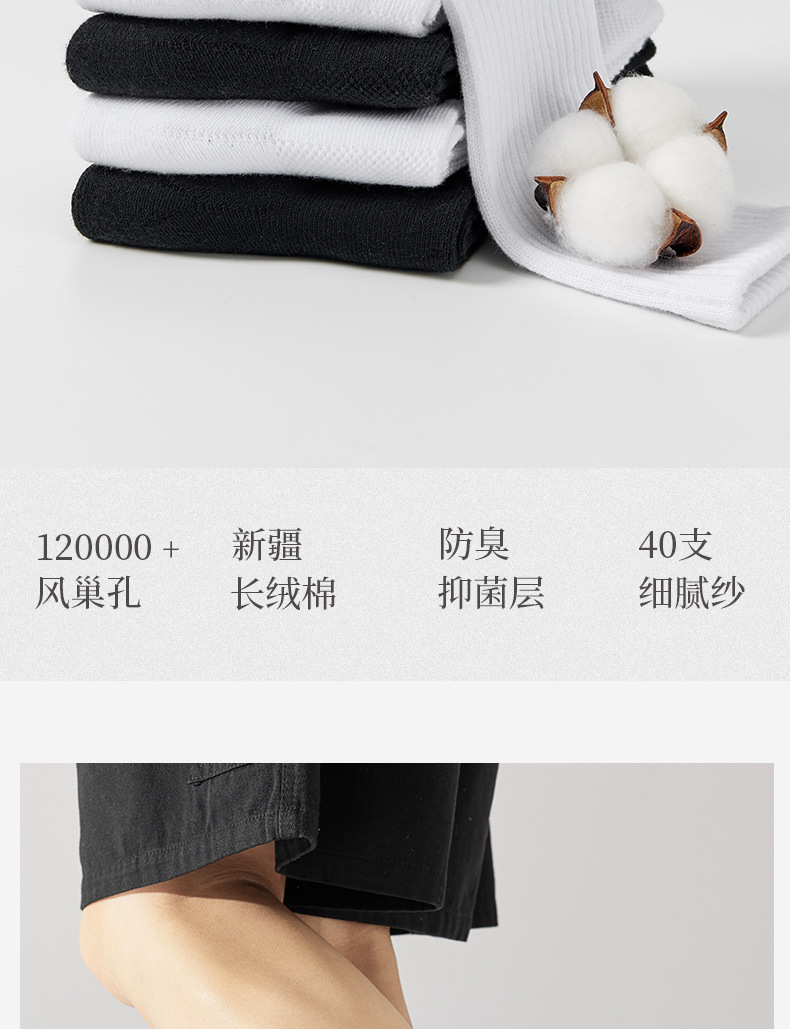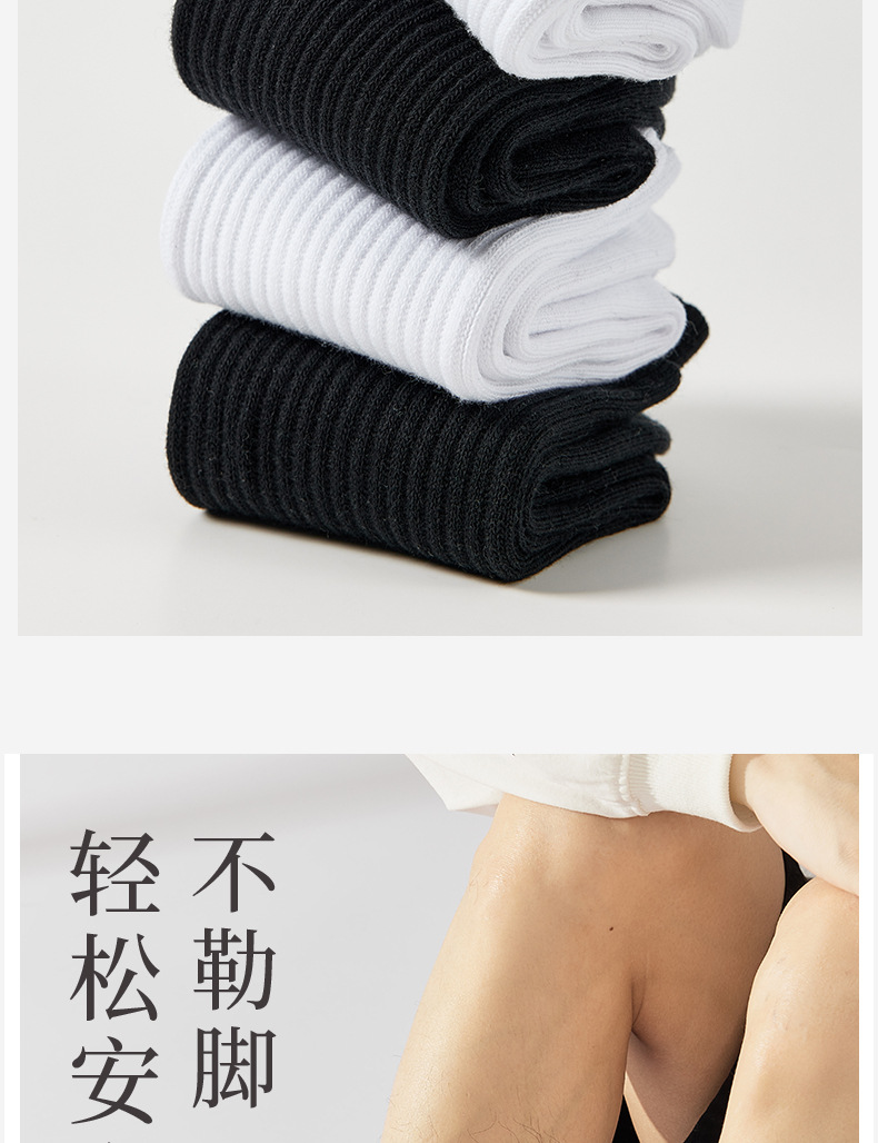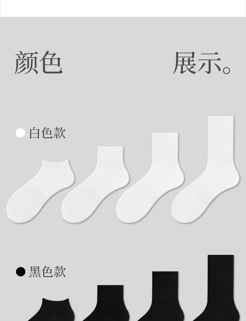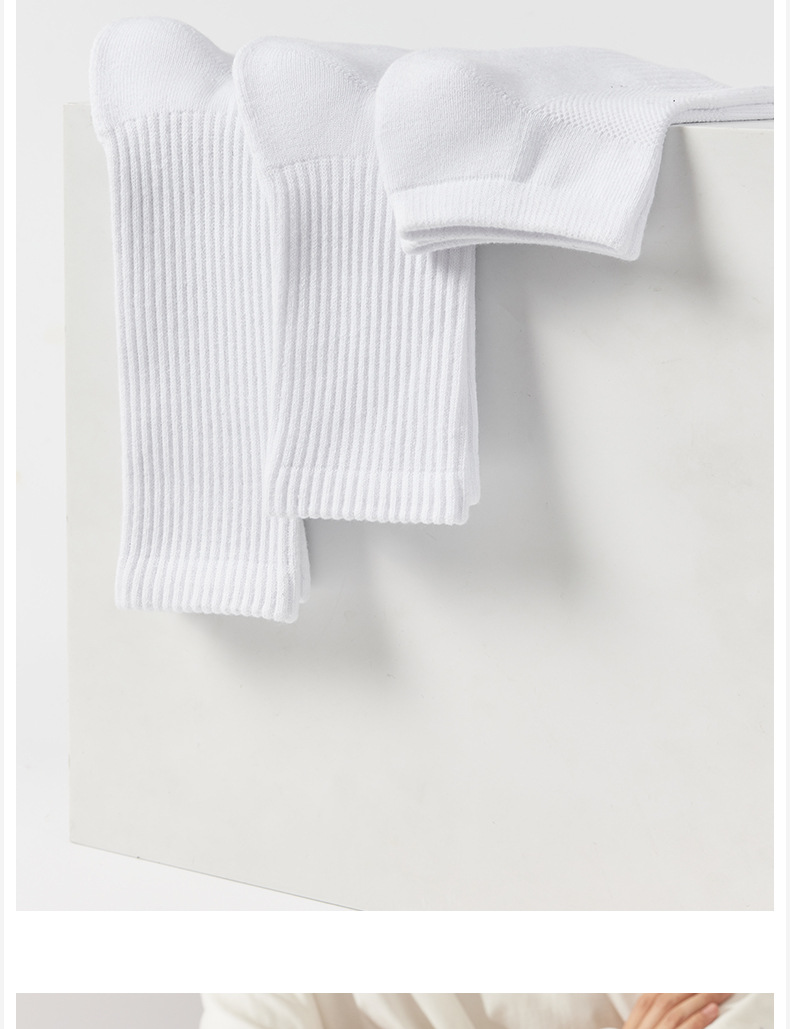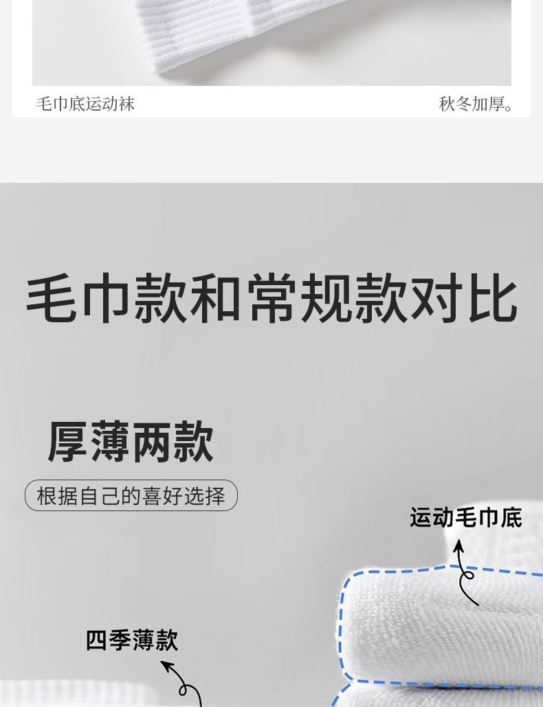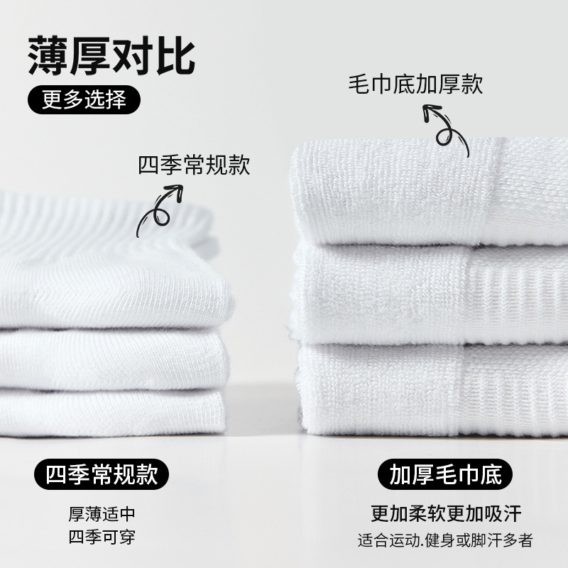 7双袜子男士夏季中筒袜纯棉长袜加厚毛巾底运动袜白色长筒袜短袜