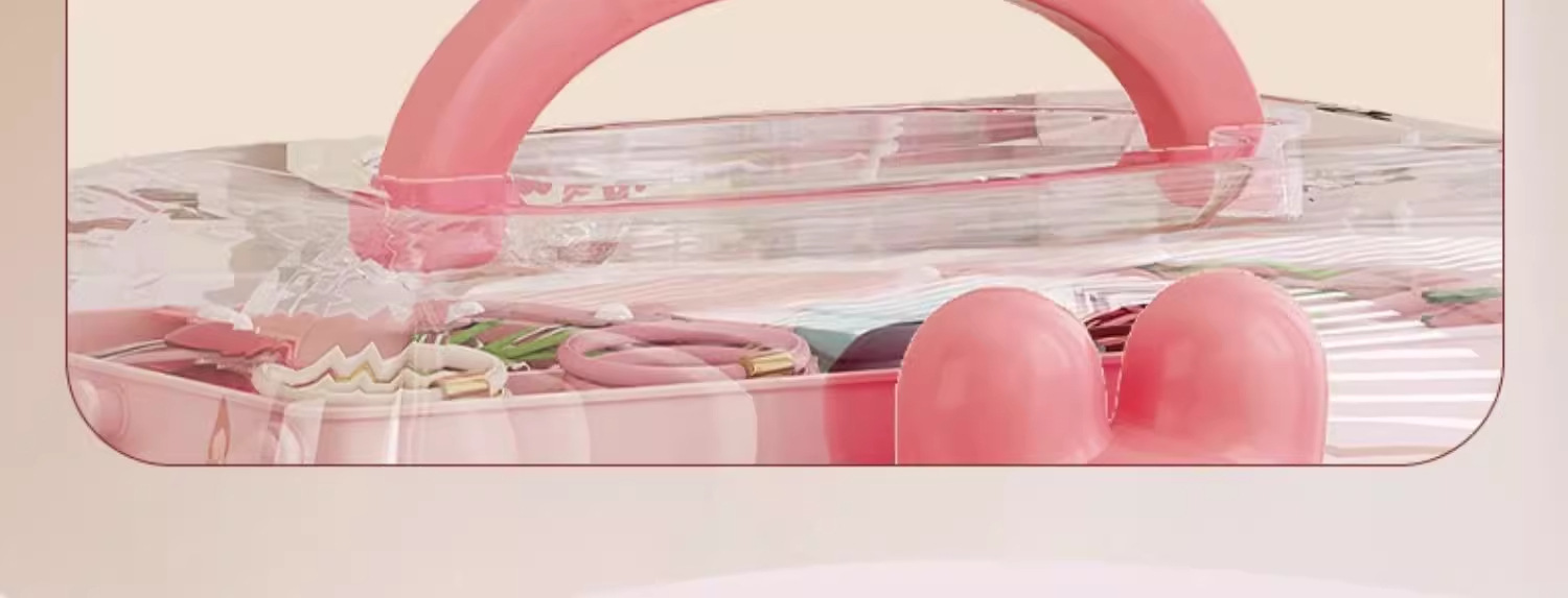 发饰收纳盒头绳项链咕卡大容量家用透明盖分层桌面儿童发 饰收纳