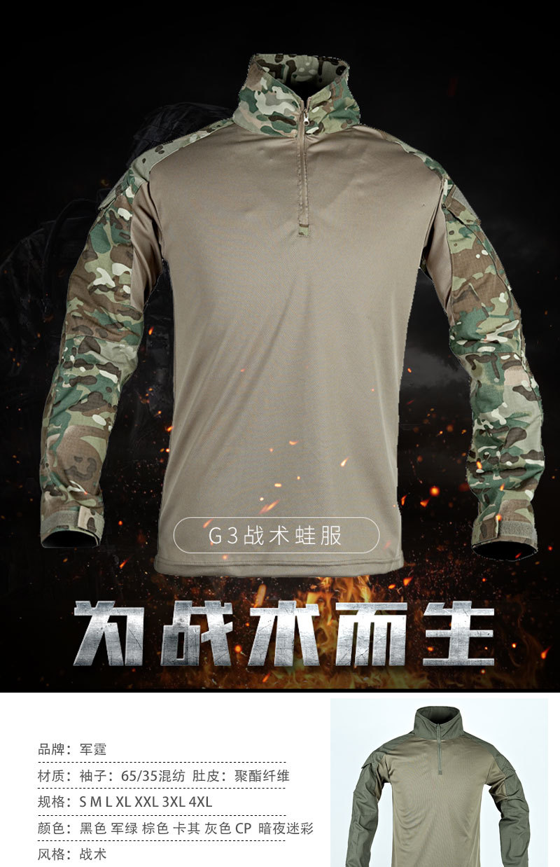 跨境跑量G3蛙服战术长袖男款迷彩户外上衣春秋透气蛙服长袖上衣
