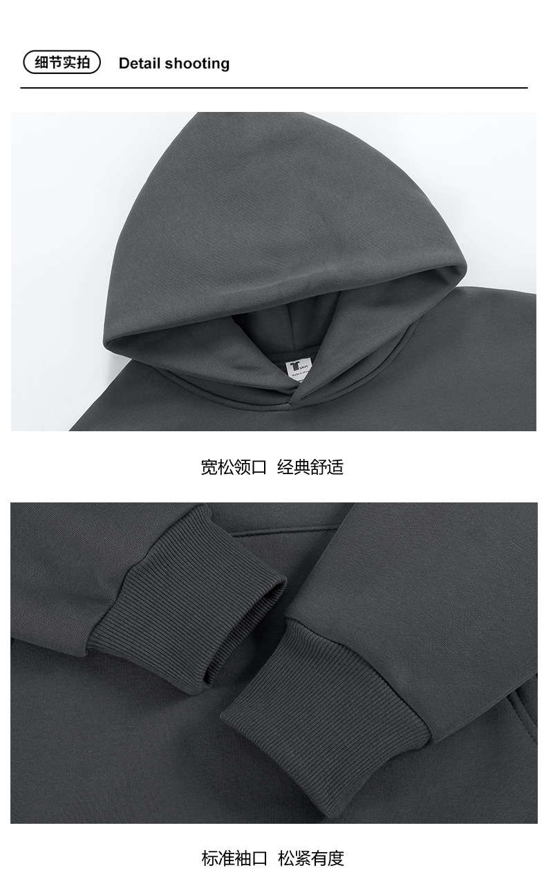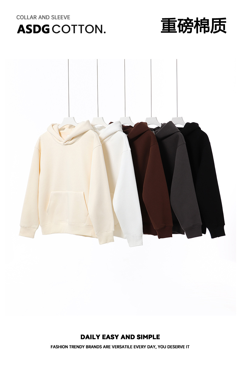 复古重磅480克阿美咔叽连帽卫衣男加厚紧密摇粒绒落肩套头帽衫女