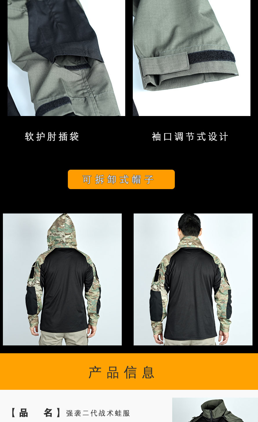 新款强袭二代蛙服长袖户外迷彩透气军迷服大码多功能口袋长袖