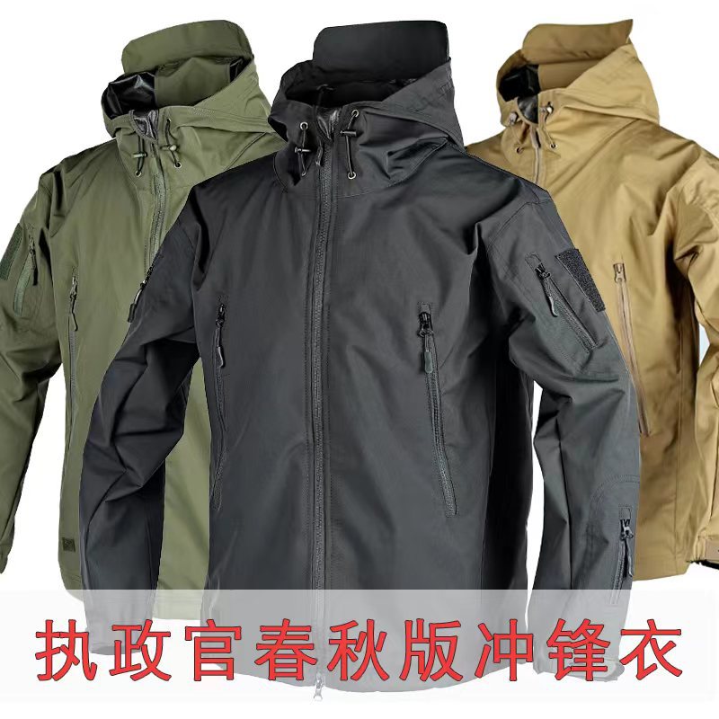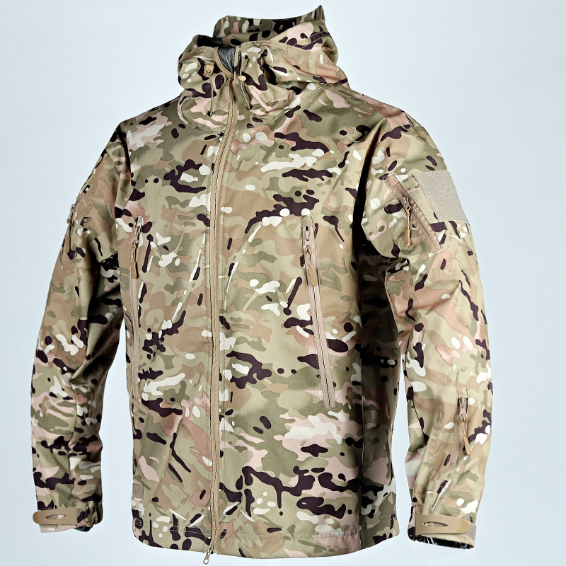 新款现货春秋战术夹克鲨鱼皮薄款风衣迷彩军迷连帽多口袋外套