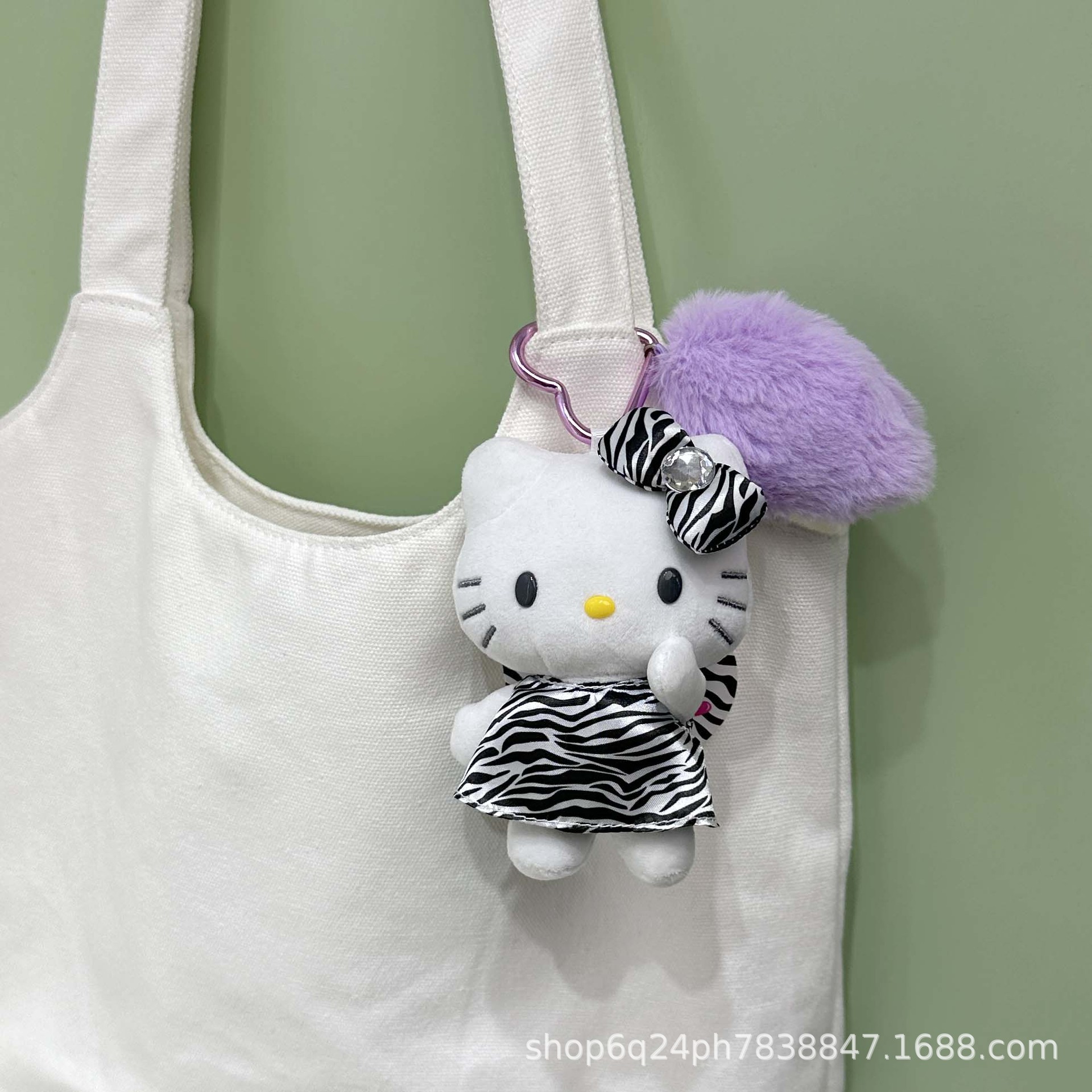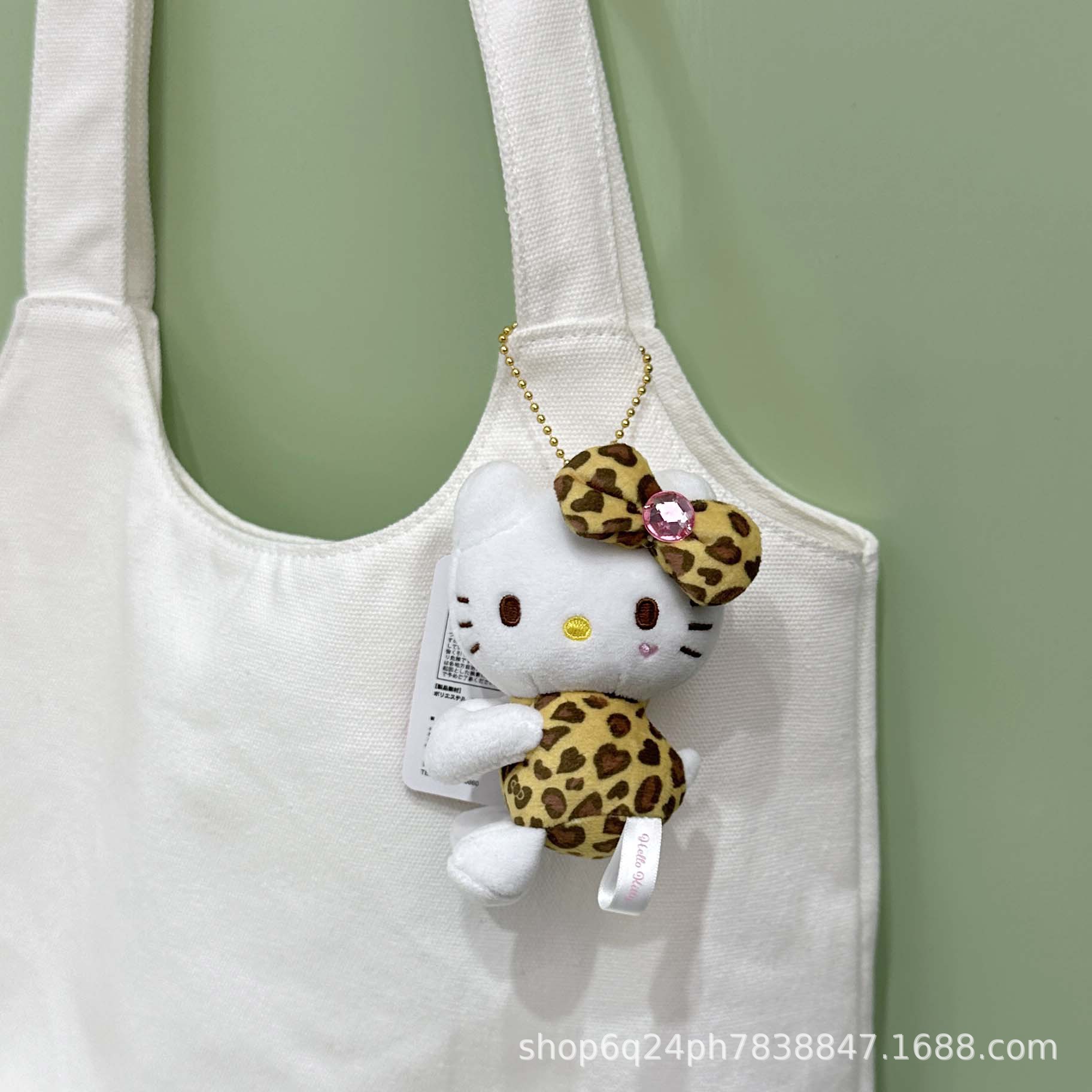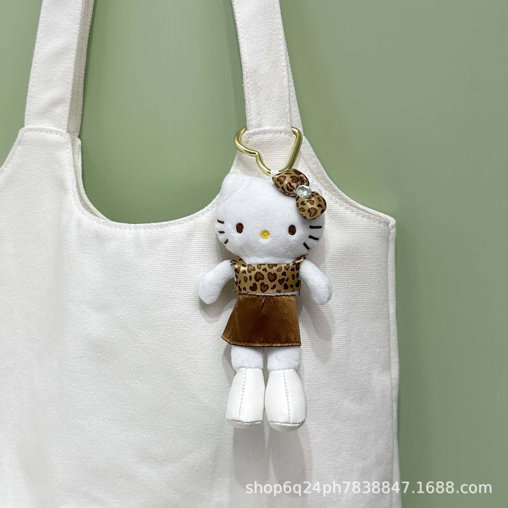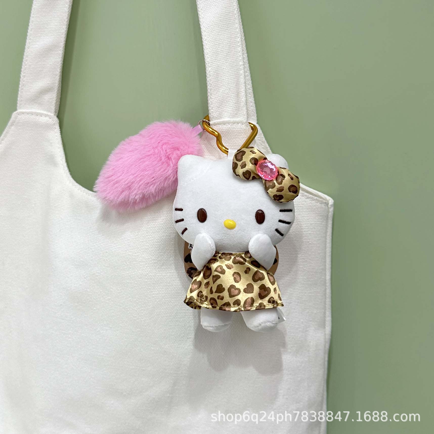 可爱三丽鸥长脚豹纹 黑皮爱心扣长腿KT 毛绒挂件钥匙扣少女心礼物