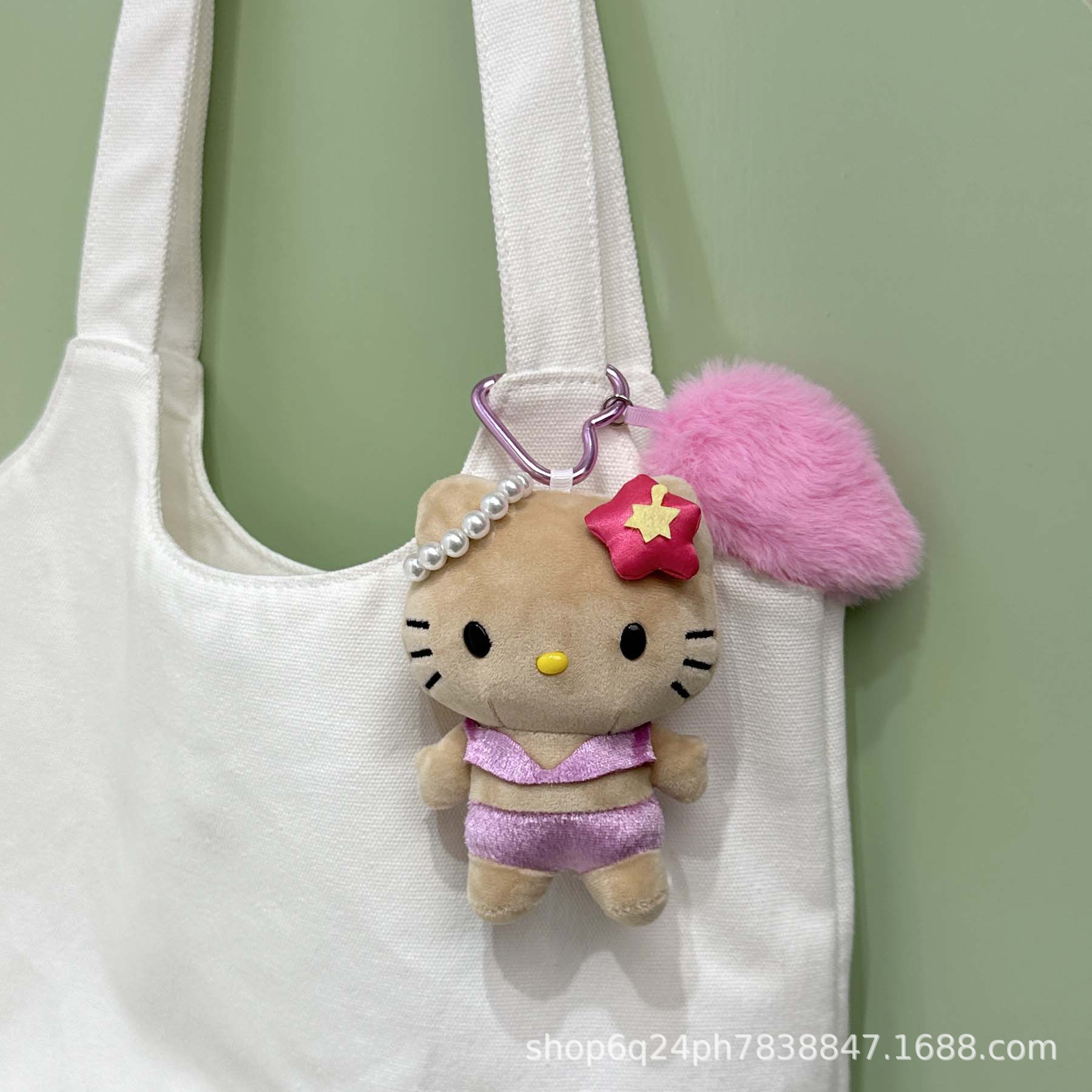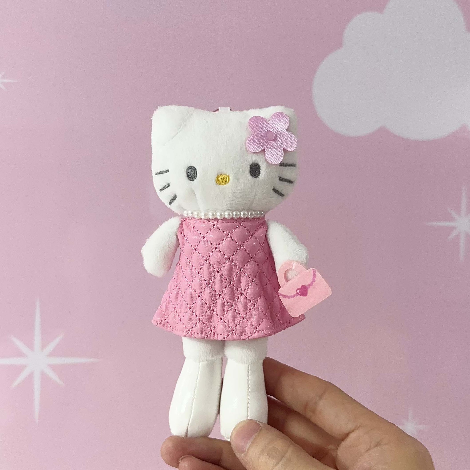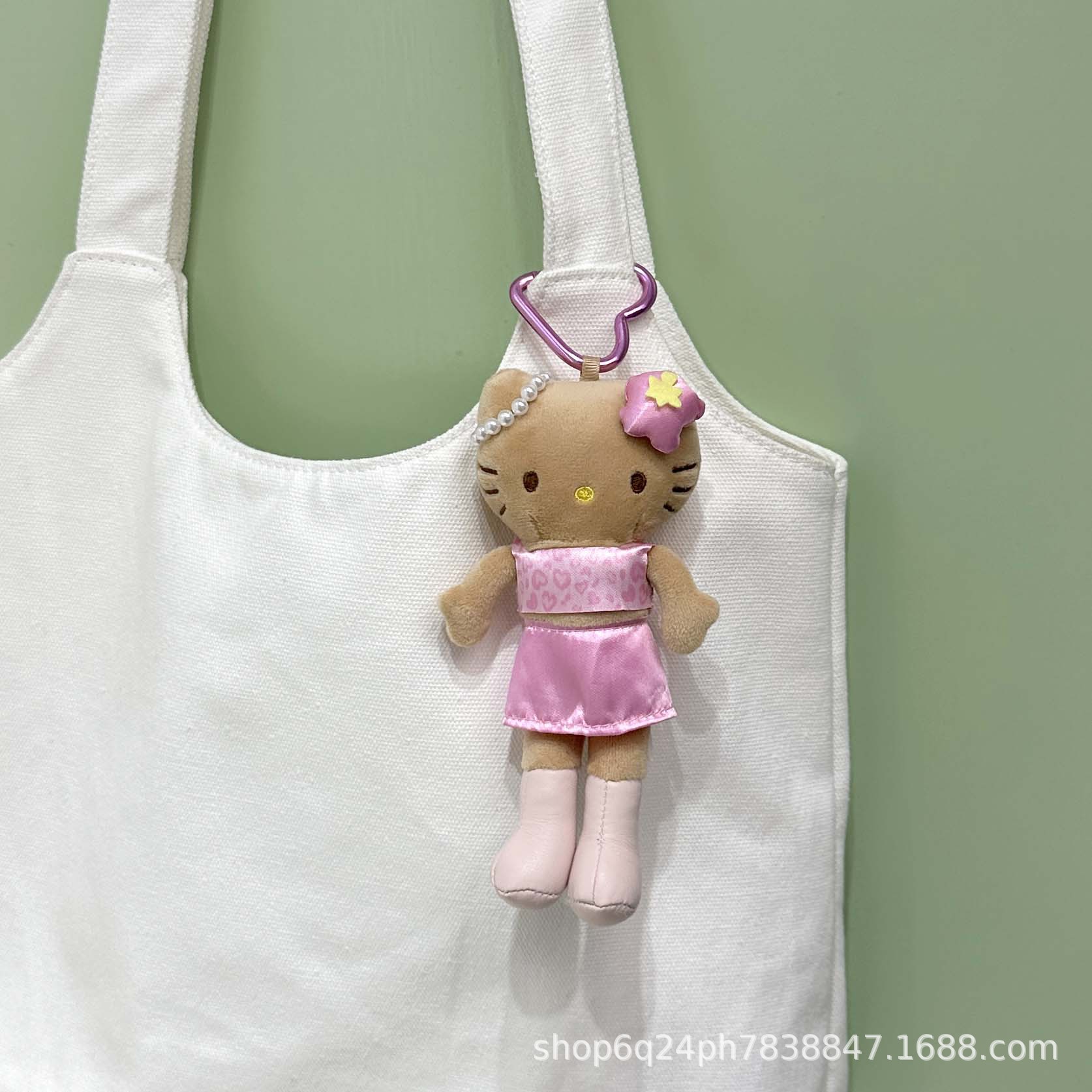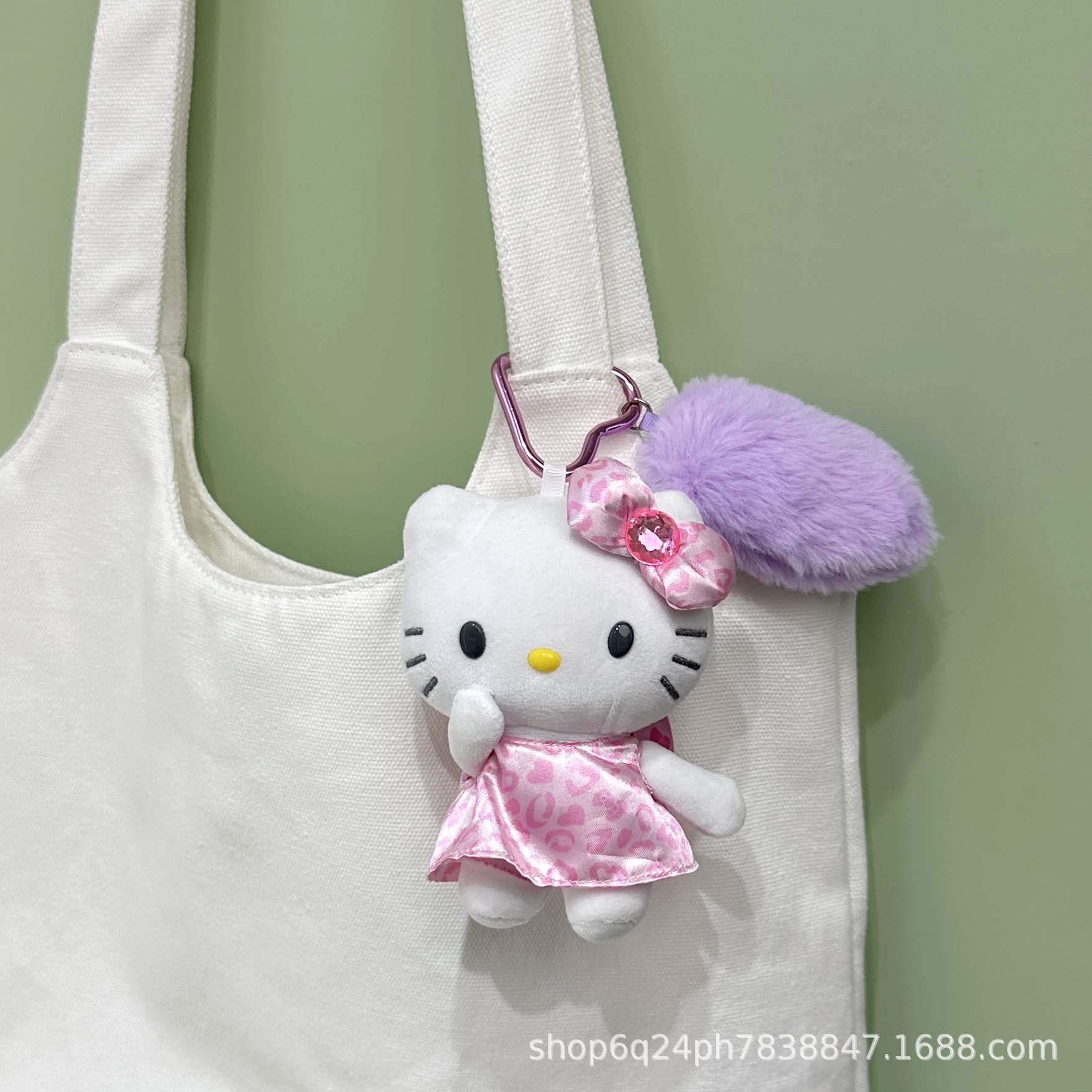 可爱三丽鸥长脚豹纹 黑皮爱心扣长腿KT 毛绒挂件钥匙扣少女心礼物