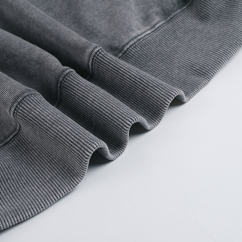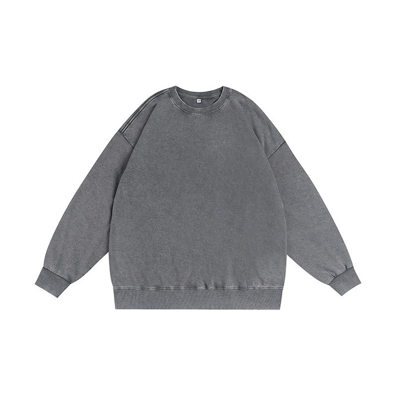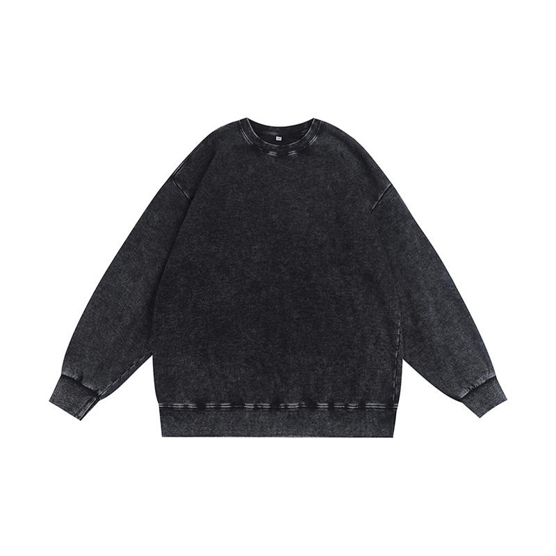 350g美式洗水复古圆领卫衣跨境大码毛圈落肩做旧套头水洗卫衣男