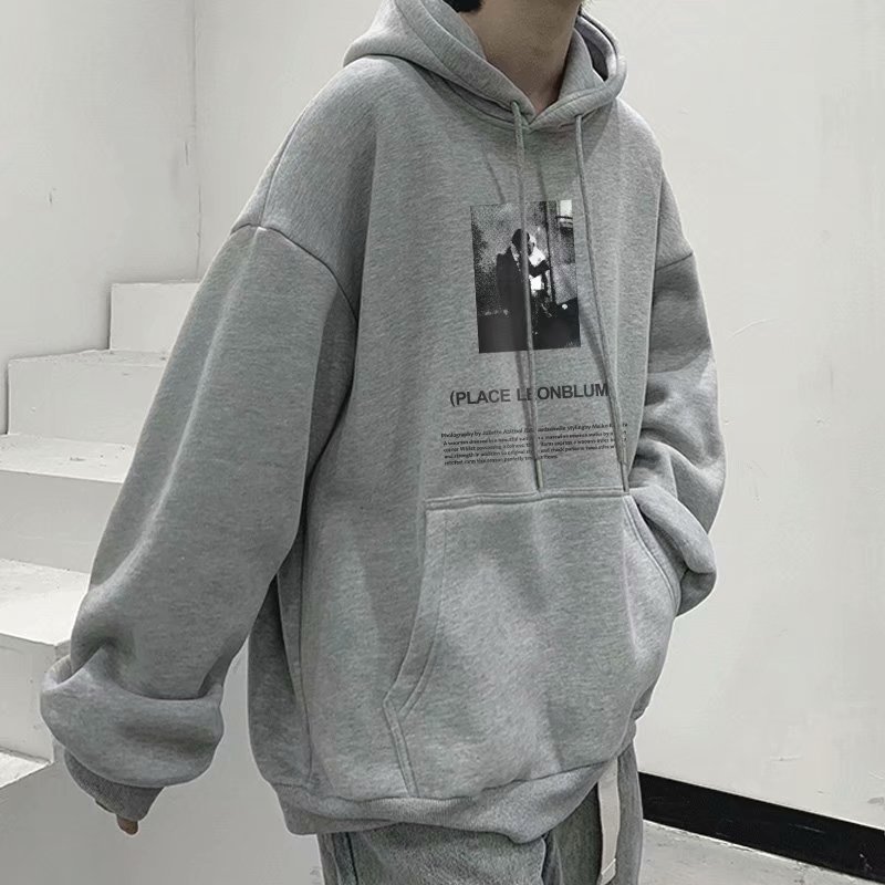 oversize重磅卫衣男生秋冬款大码2022美式连帽加绒加厚外套国潮牌