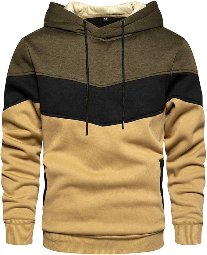跨境亚马逊春秋款欧美男士印花撞色时尚连帽卫衣男款休闲运动上衣