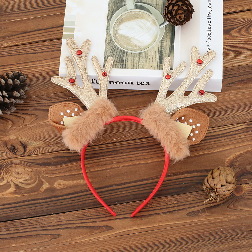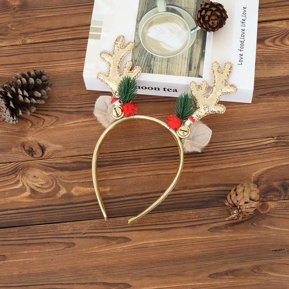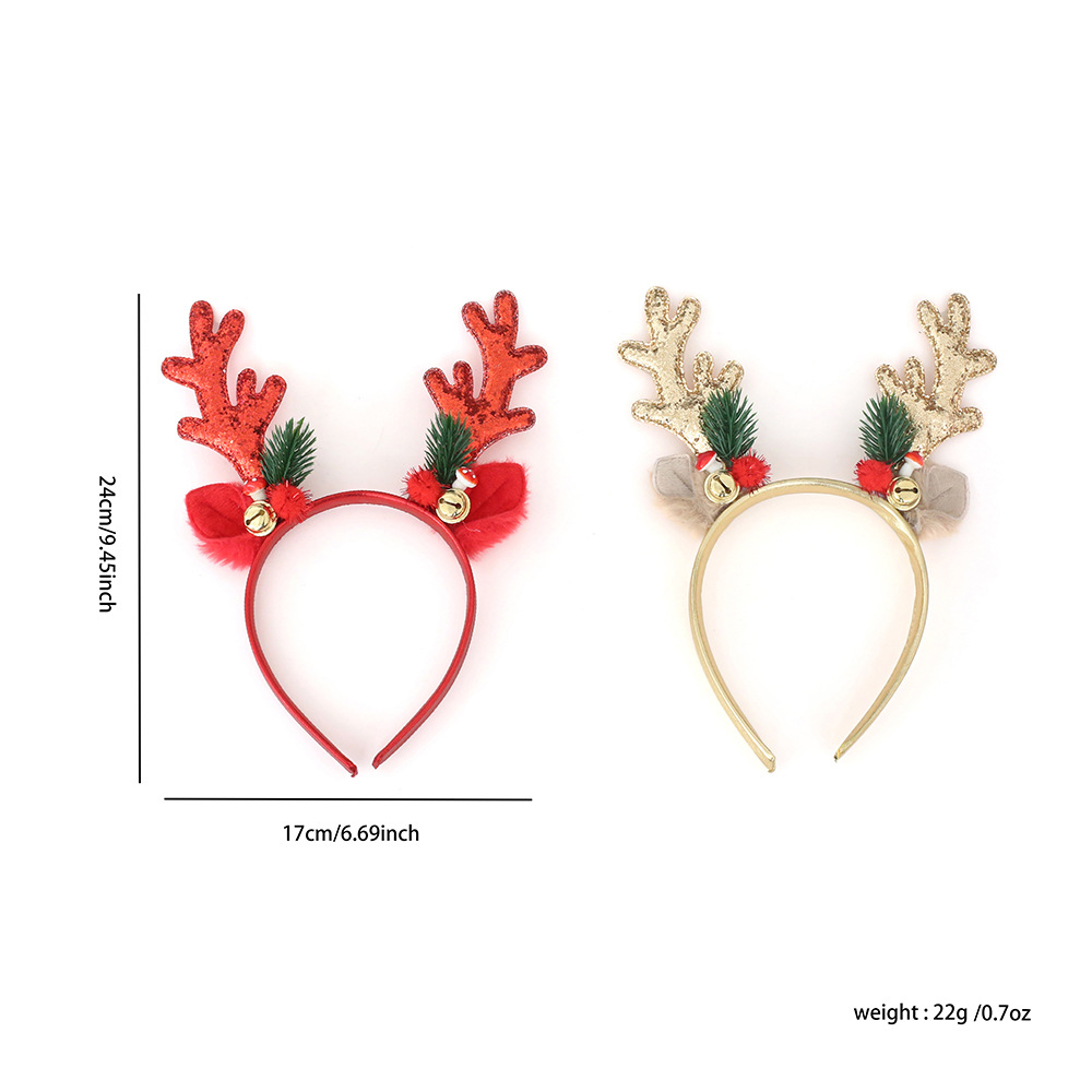 跨境新款圣诞节可爱鹿角铃铛发箍韩版清新头扣节日礼物发卡装饰品
